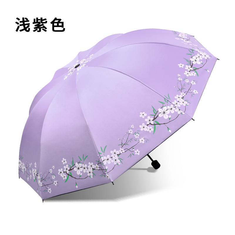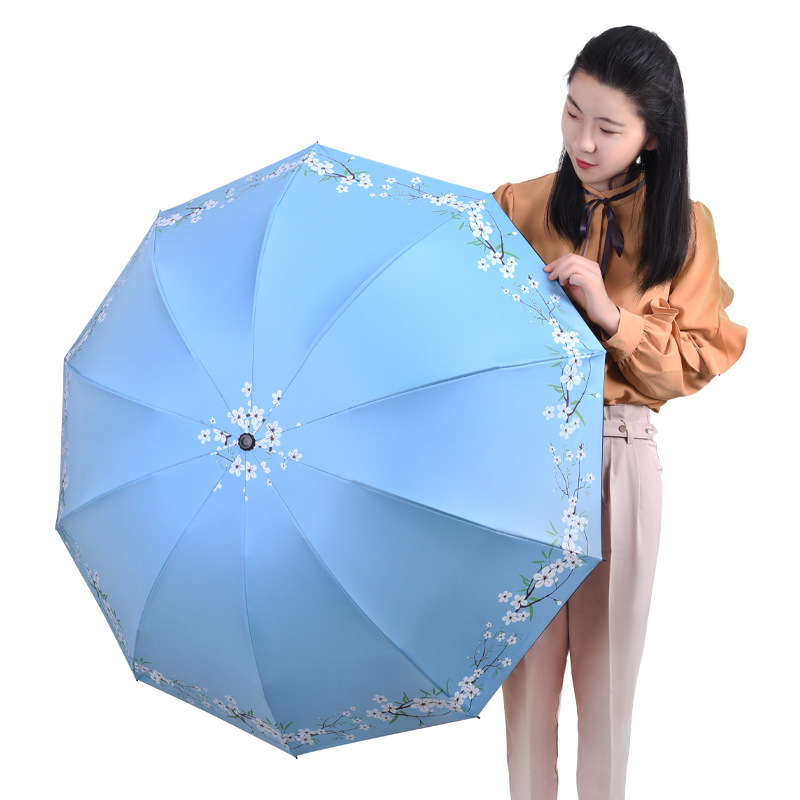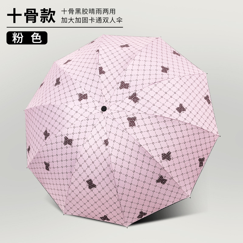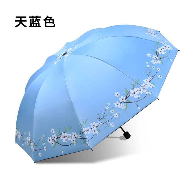 十骨三折大雨伞折叠防晒黑胶太阳伞 防紫外线女士晴雨两用伞批发