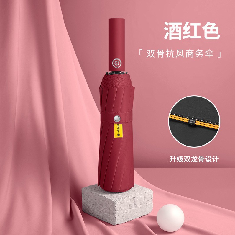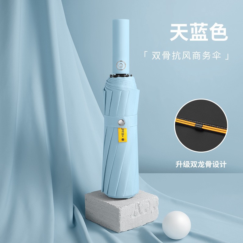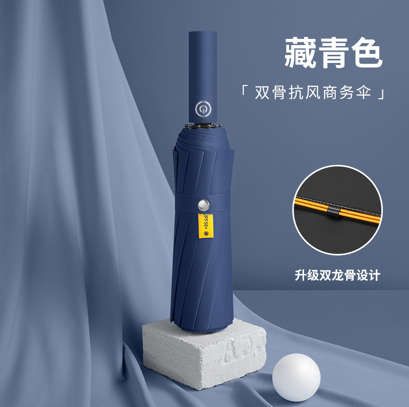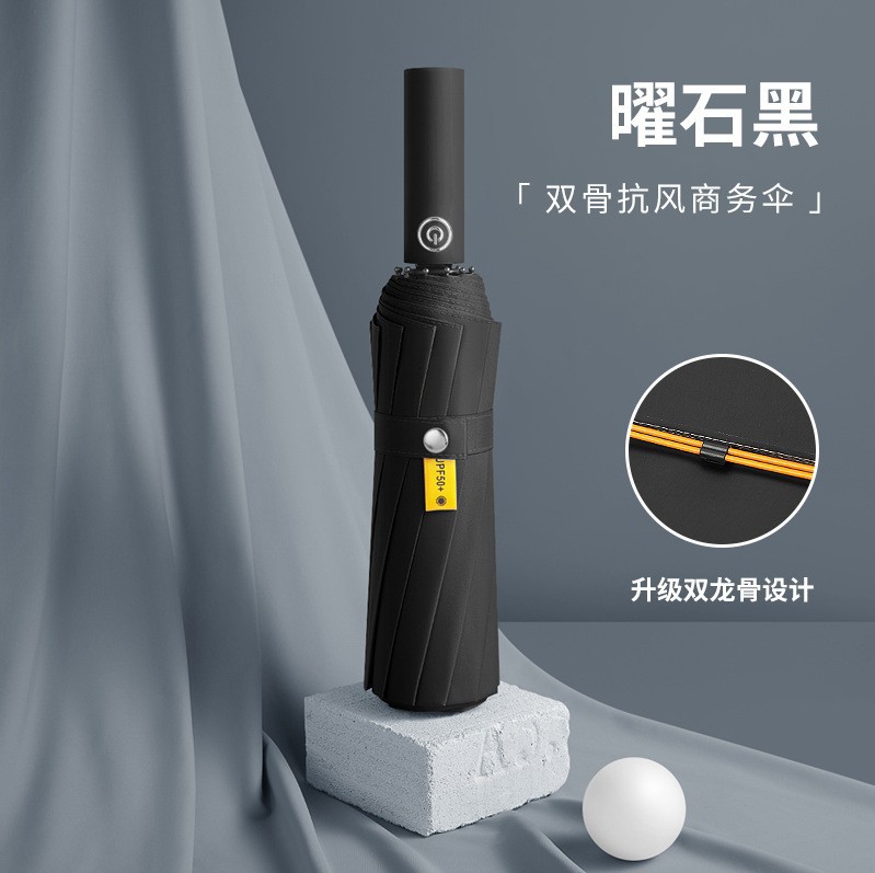 24骨三折自动雨伞黑胶折叠遮阳伞防晒批发太阳伞晴雨伞定制广告伞