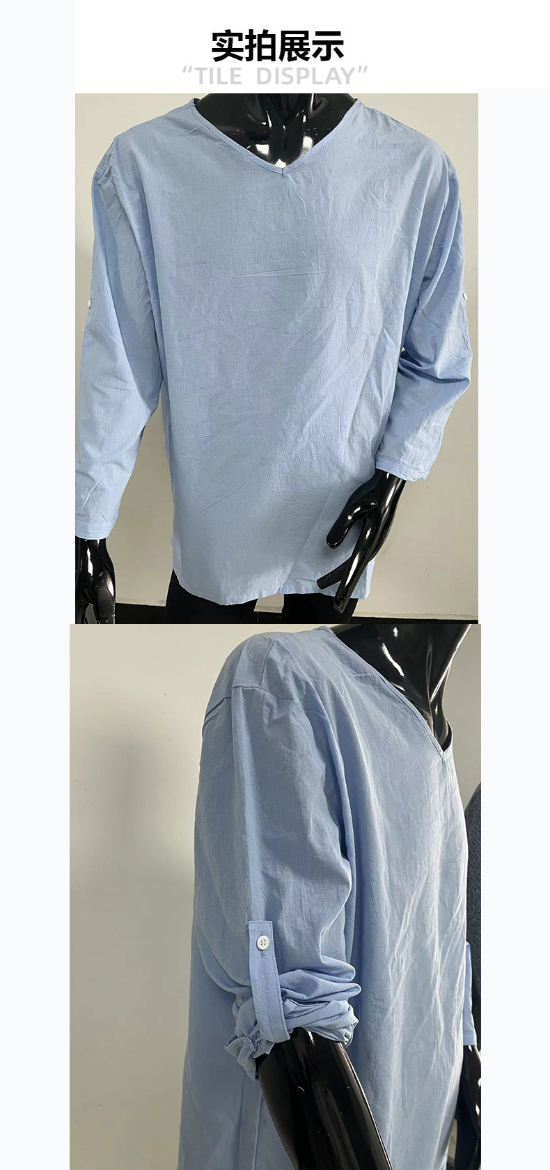 欧美外贸秋新款男士套头纯色休闲宽松套头T恤跨境衬衫男装