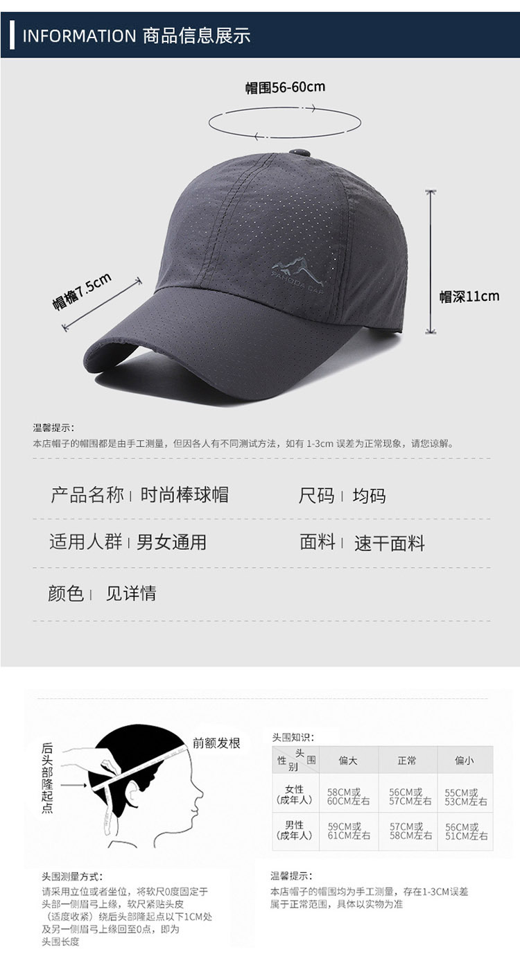 帽子男夏季运动速干跑步帽子网眼透气速干薄款防晒户外爬山鸭舌帽