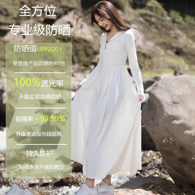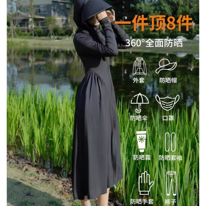 防晒衣女轻薄透气户外防晒服外套夏季超长款全身收腰显瘦防晒裙
