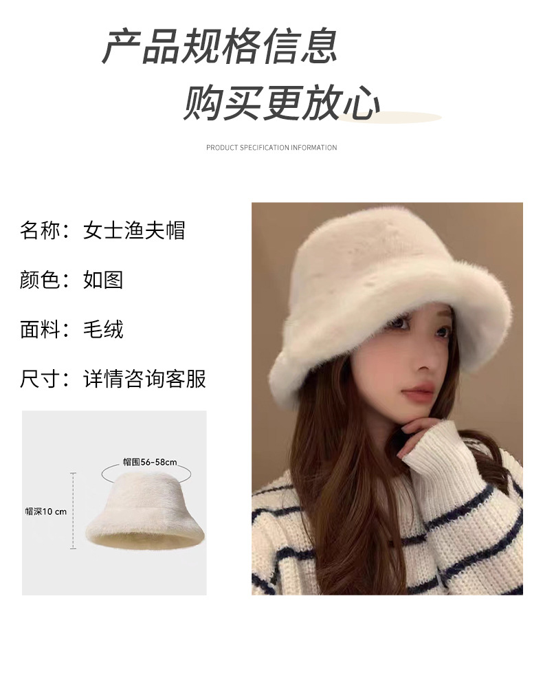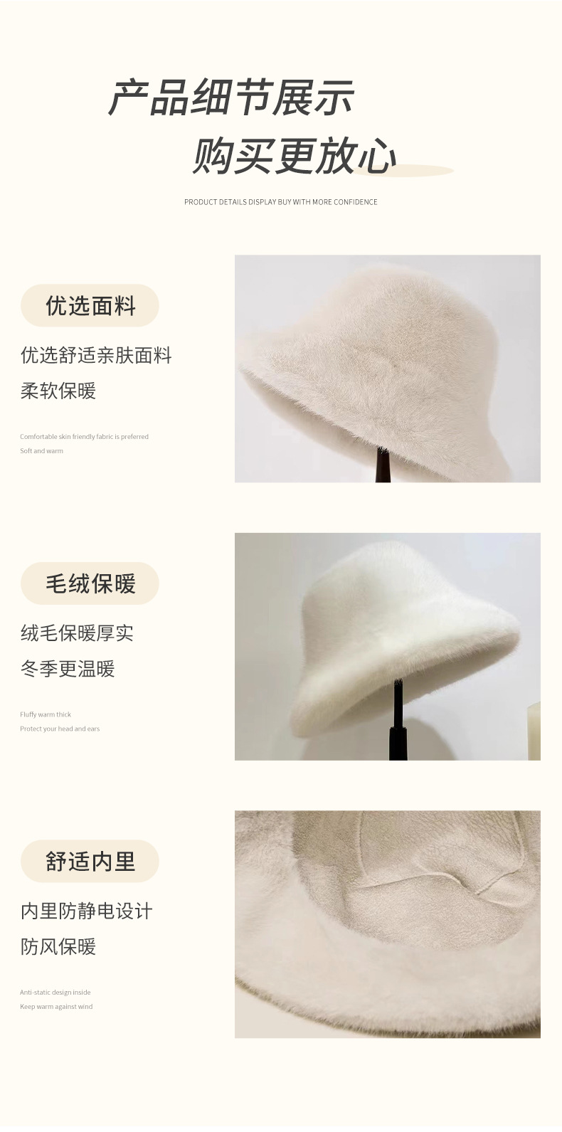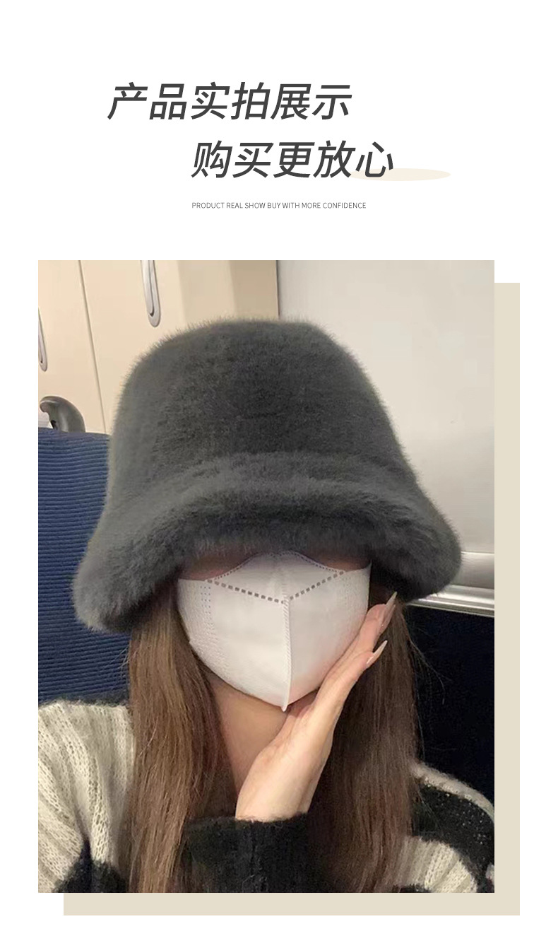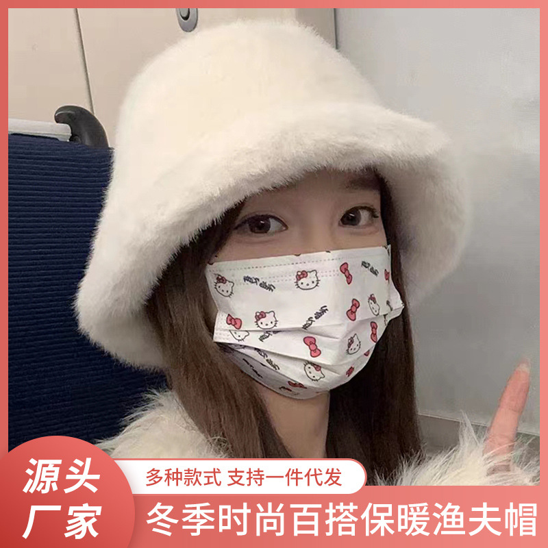冬季可毛绒帽子女网红保暖加绒显脸渔夫帽大头围显脸小毛茸茸软糯