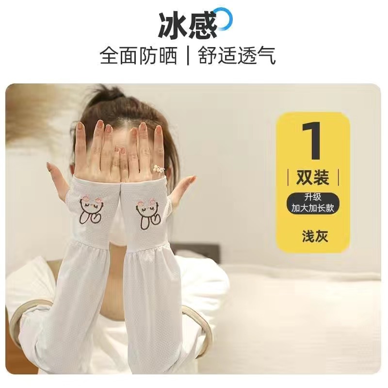 防晒冰袖手套女士薄款冰丝夏季冰袖宽松加肥加大袖套骑行护臂手套