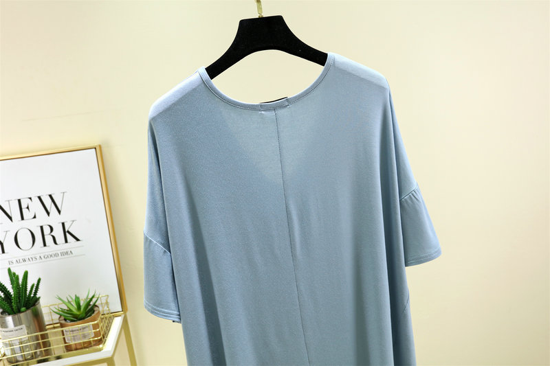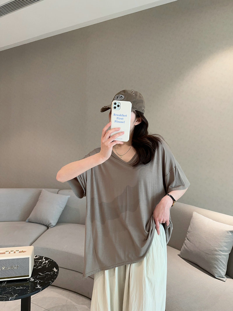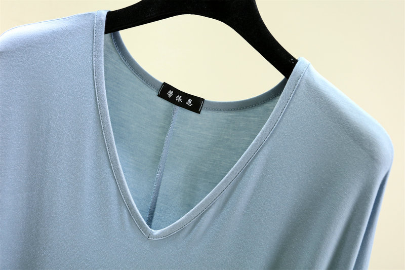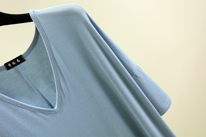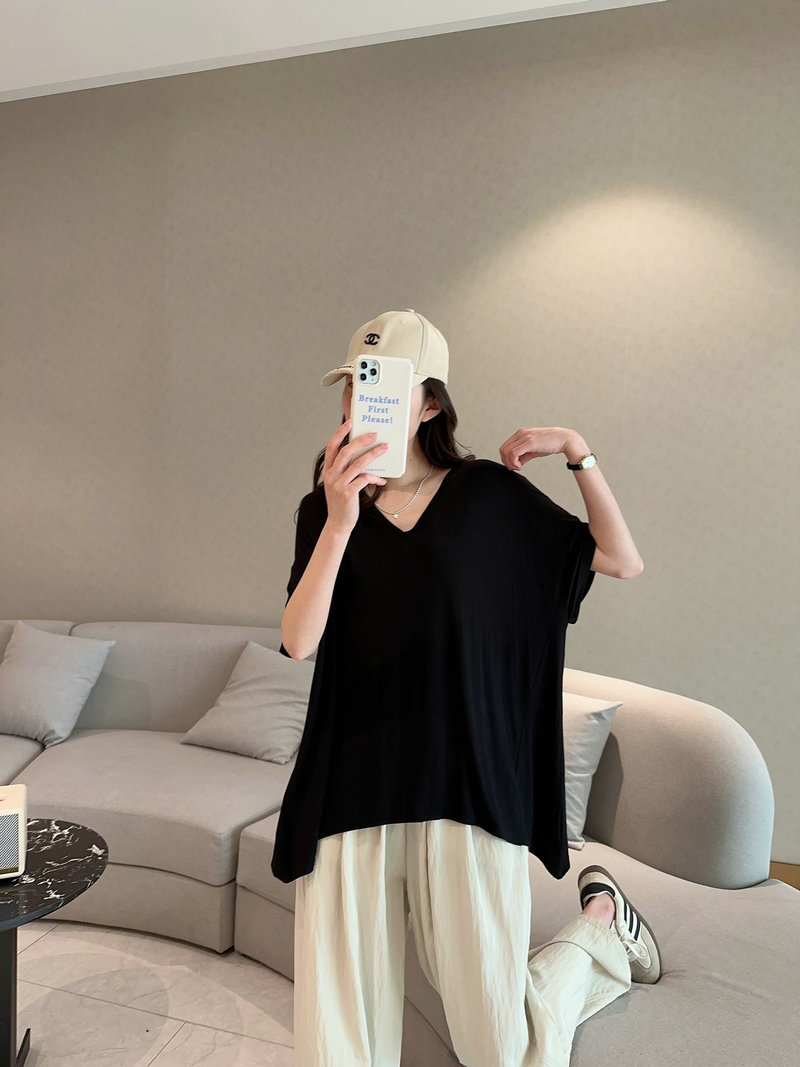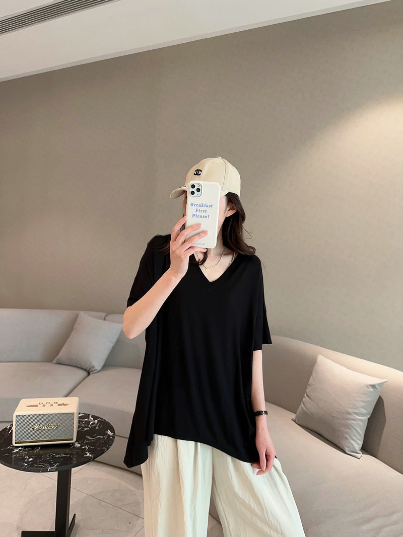 宽松v领不规则五分袖T恤衫夏季薄款莫代尔大码半袖上衣纯色打底衫