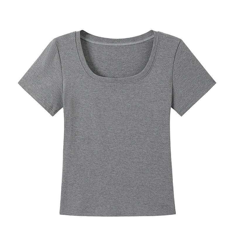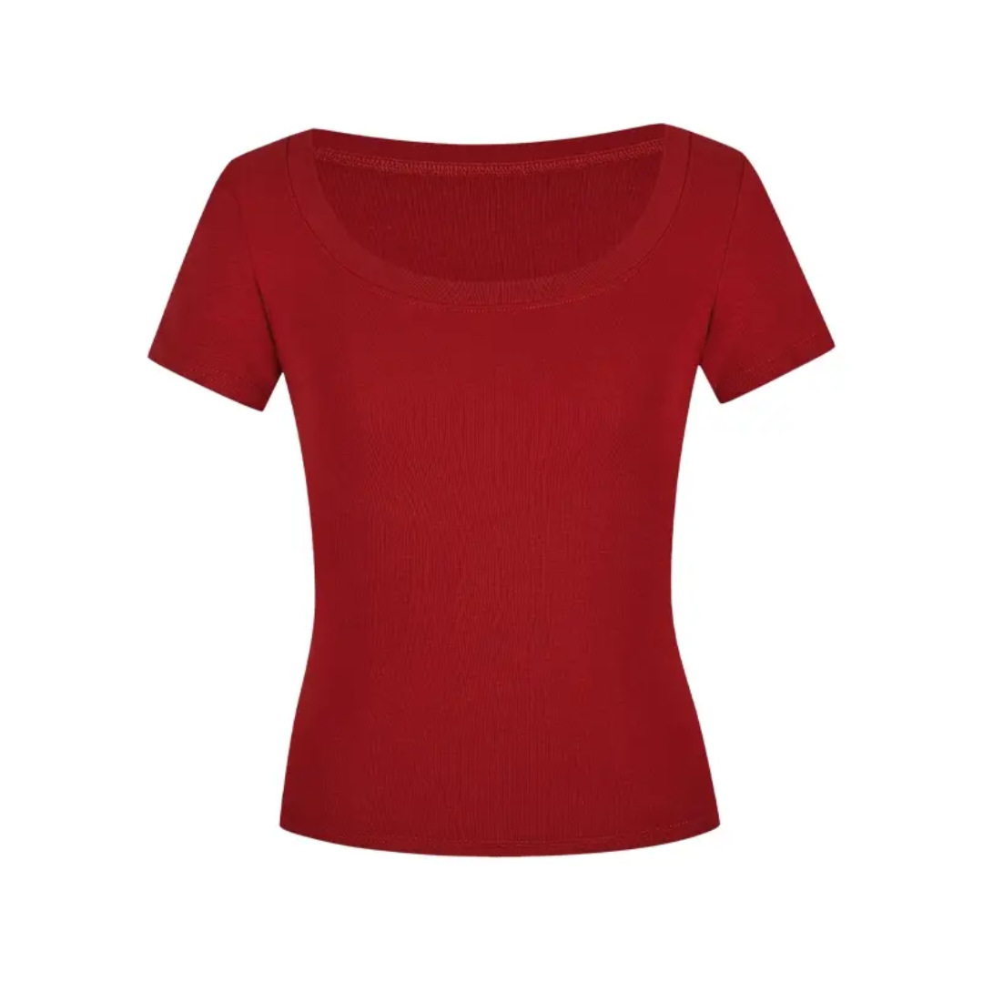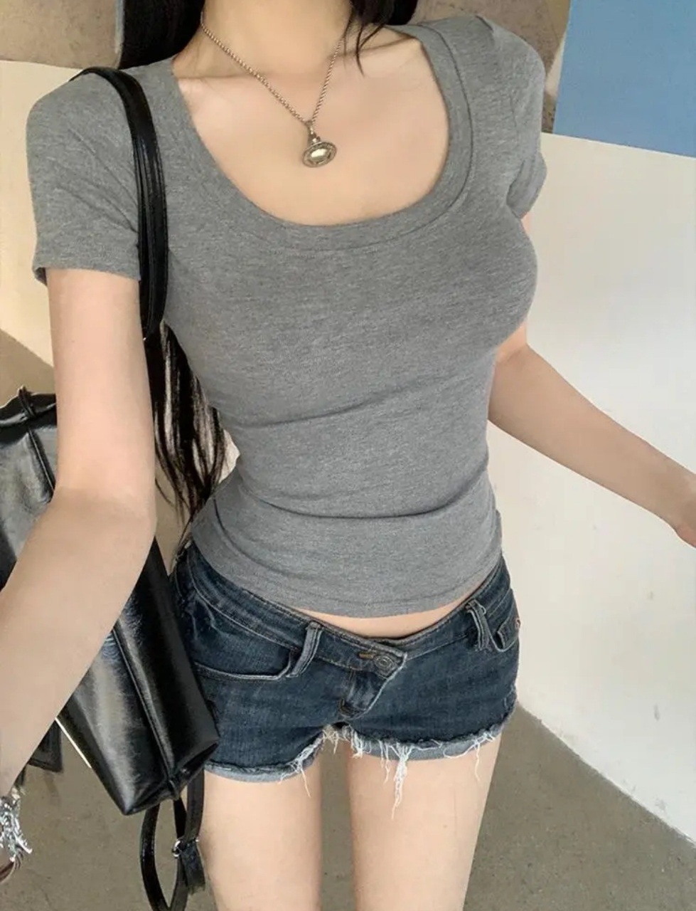 紧身短袖T恤女正肩大U领露锁骨休闲百搭显瘦短款上衣辣妹性感T恤
