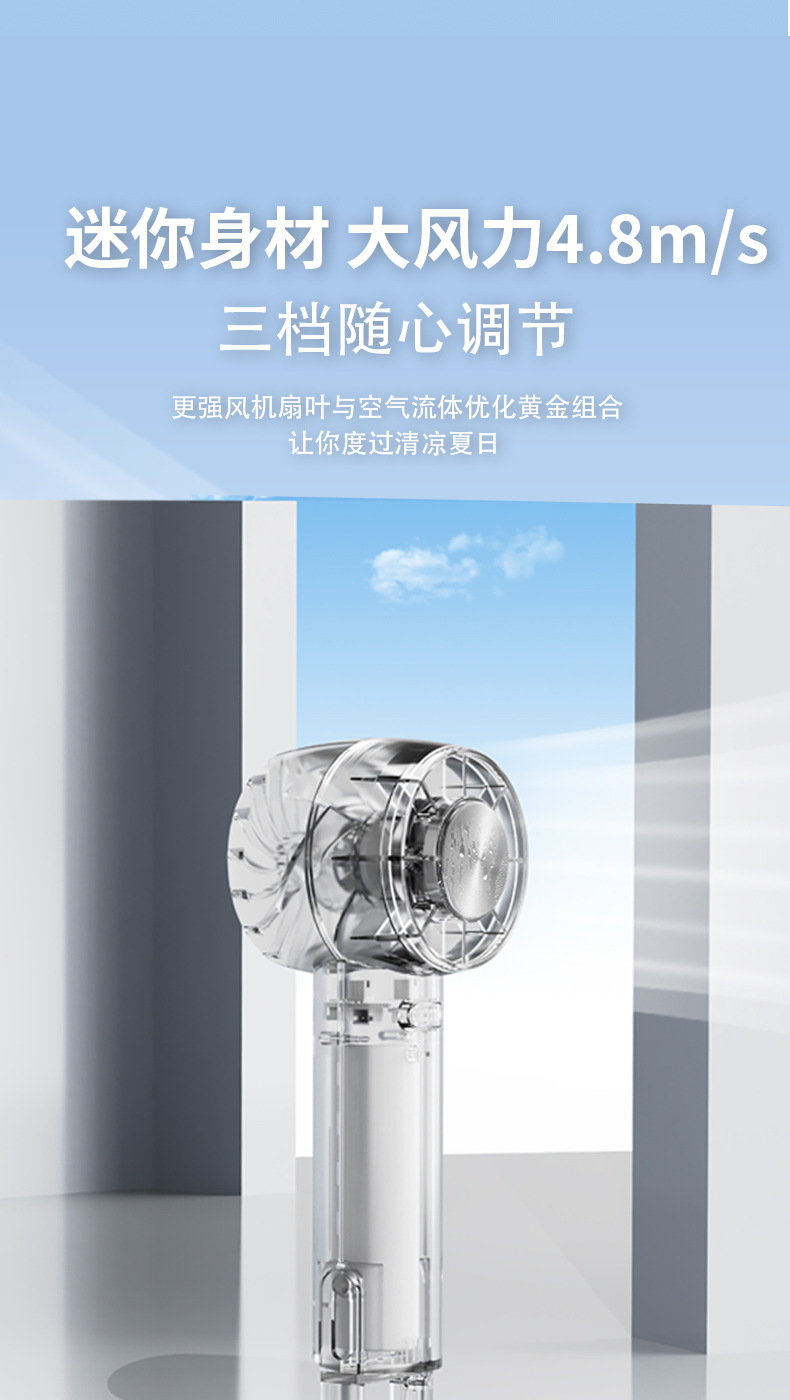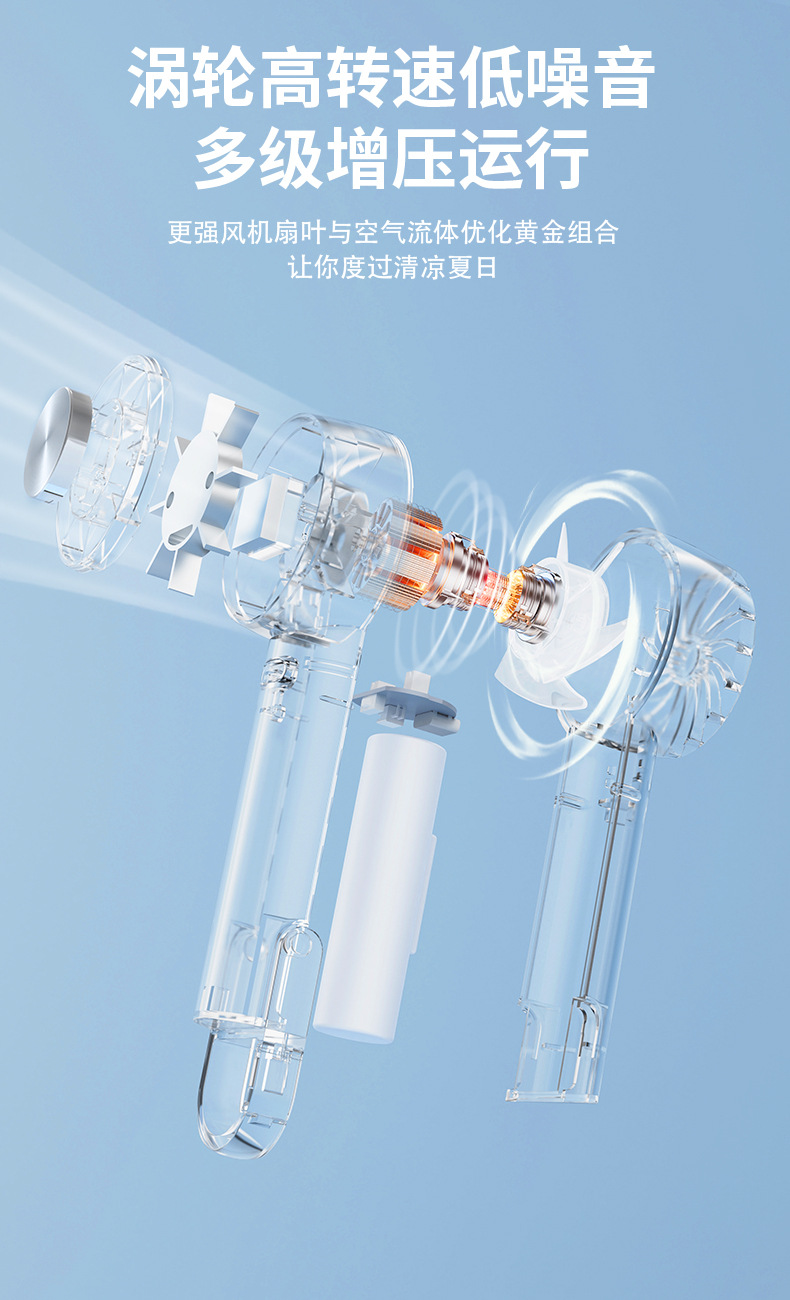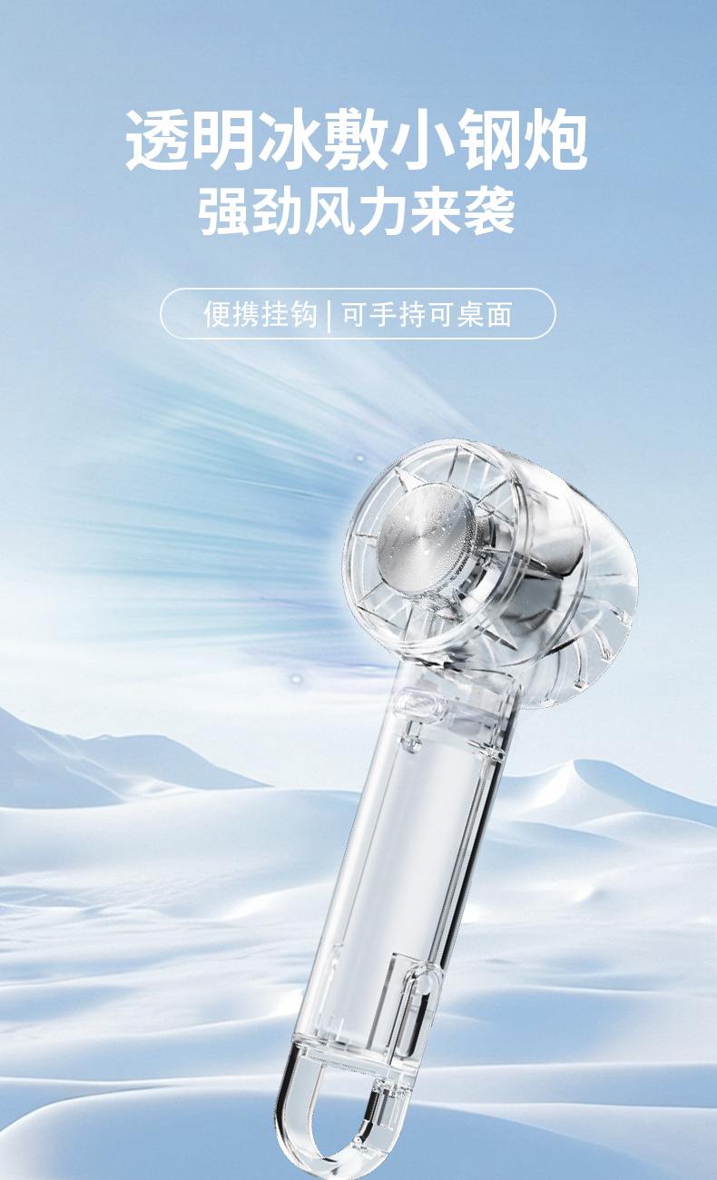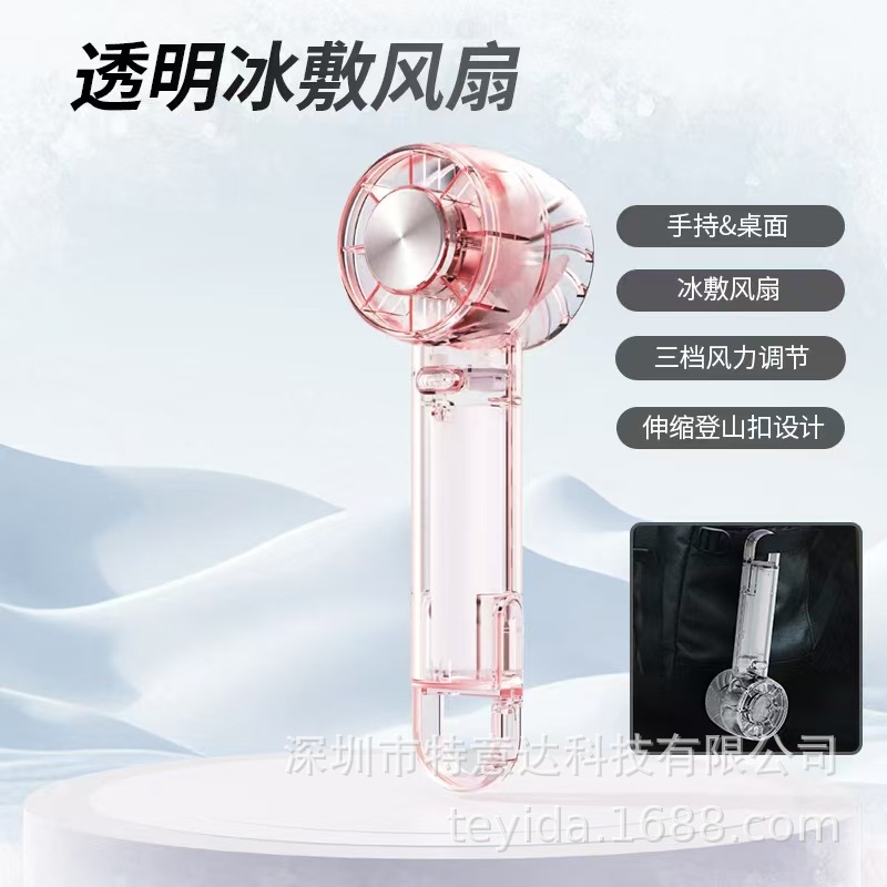 2026跨境新款W21冰敷透明风扇 USB迷你户外便携无叶涡轮手持风扇