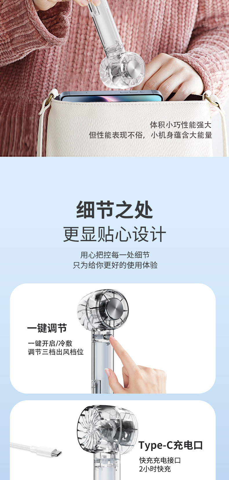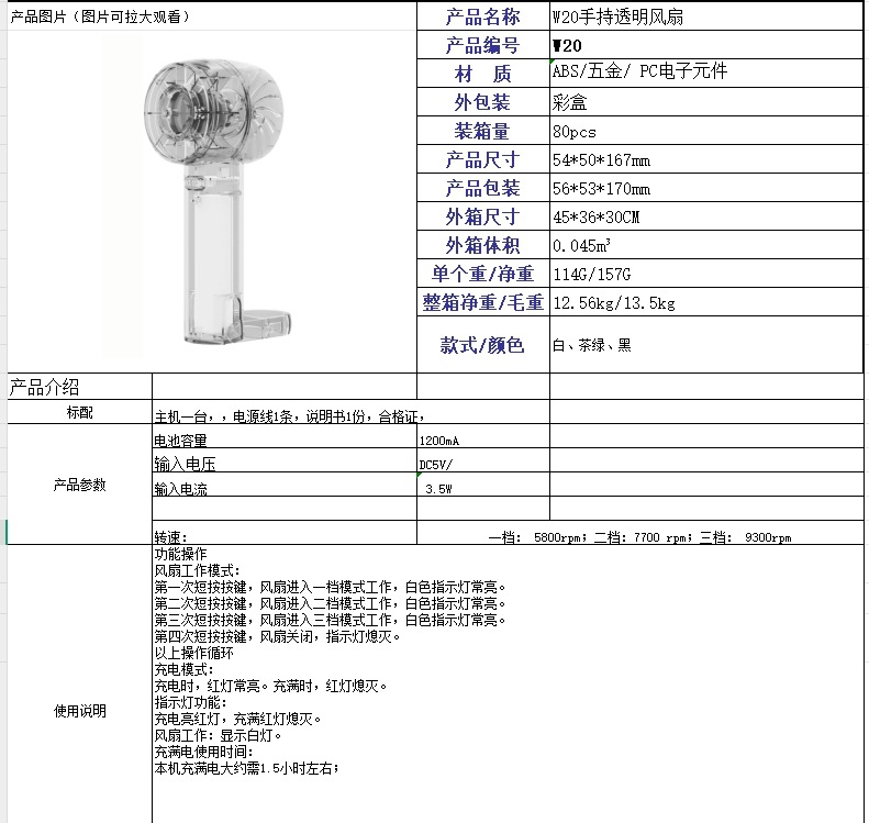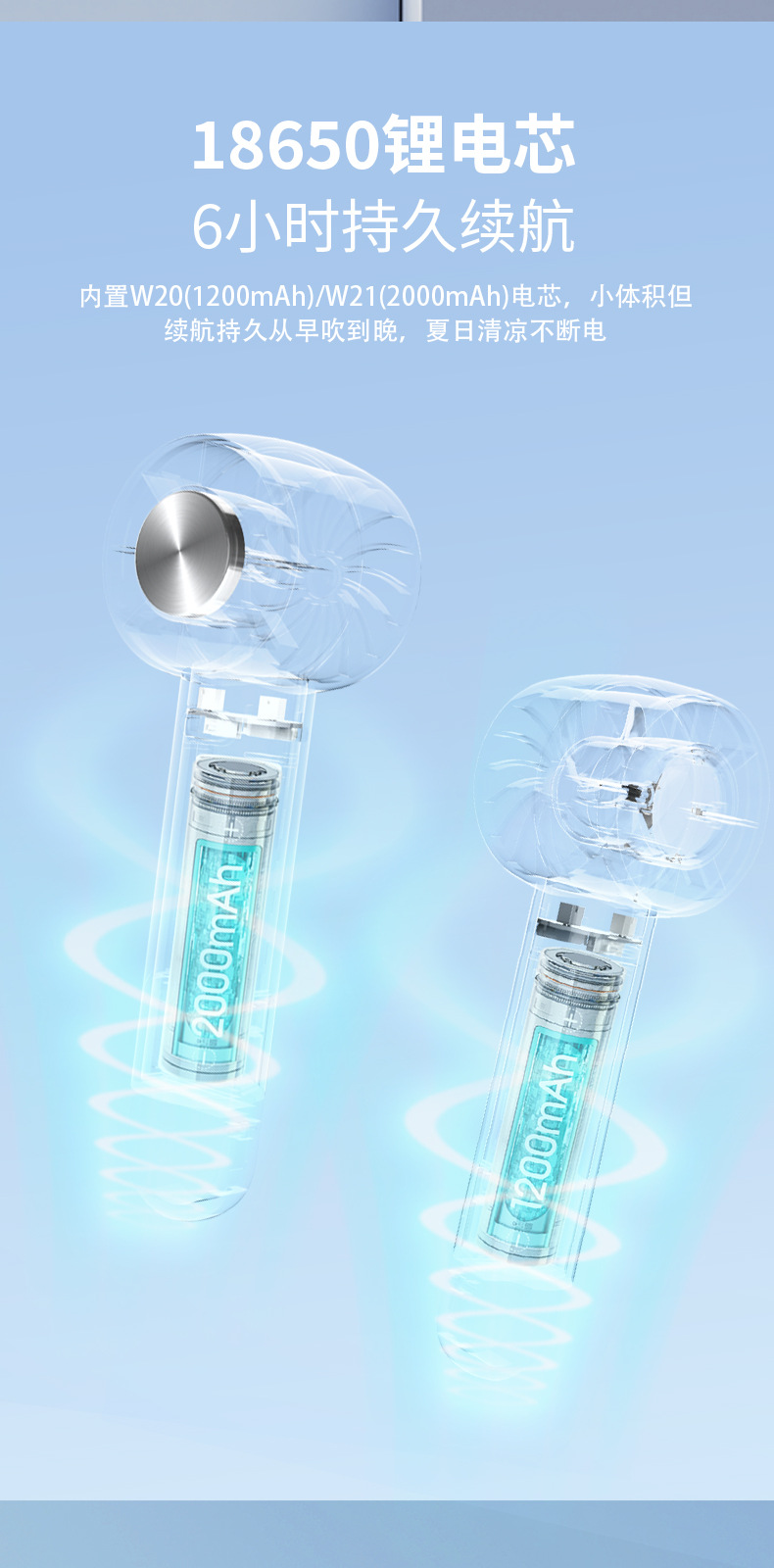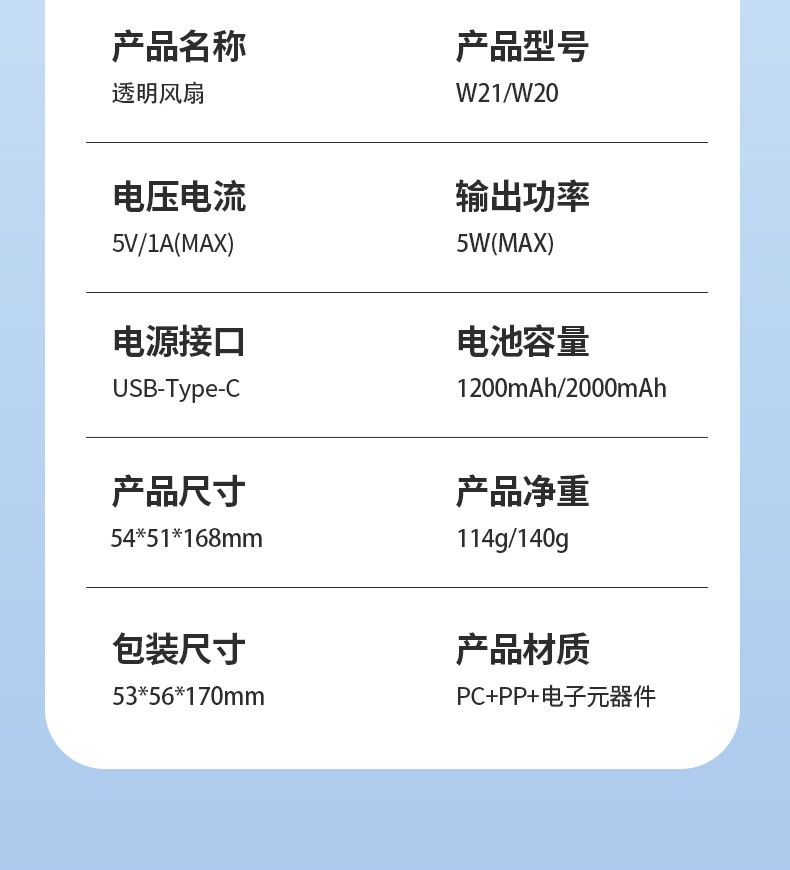 2026跨境新款W21冰敷透明风扇 USB迷你户外便携无叶涡轮手持风扇