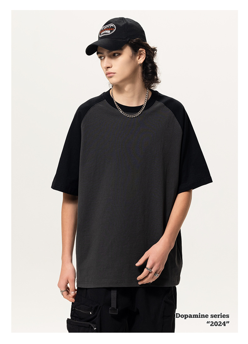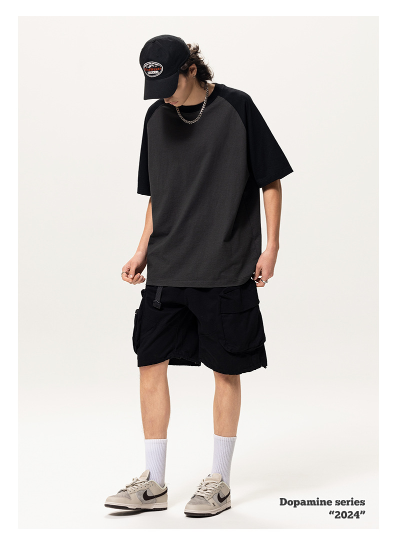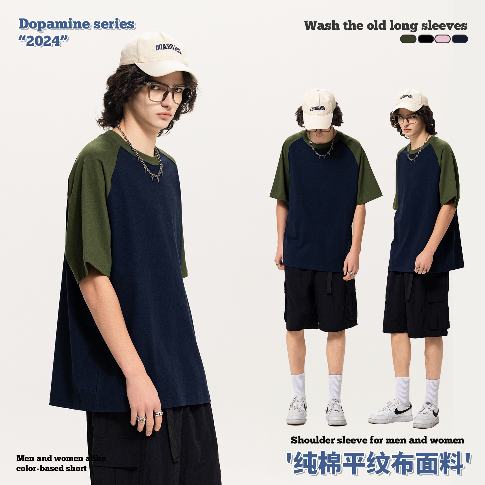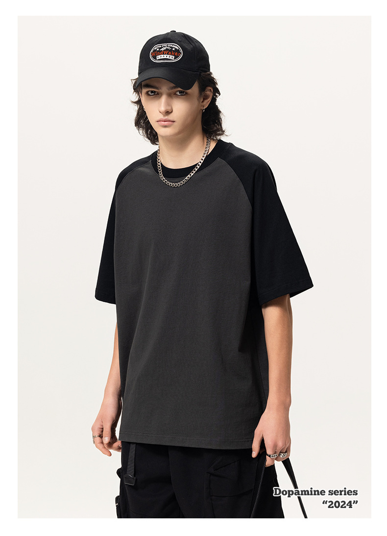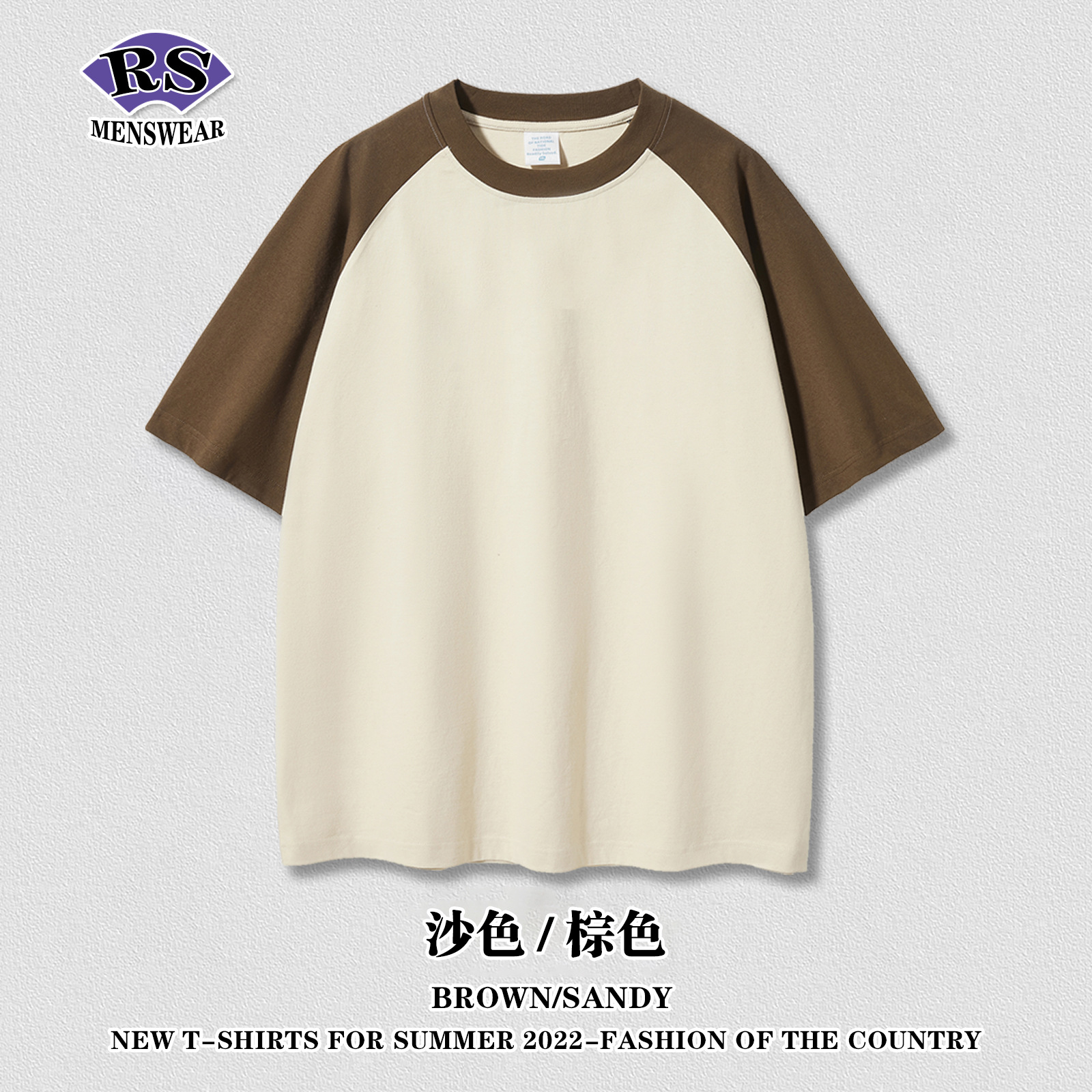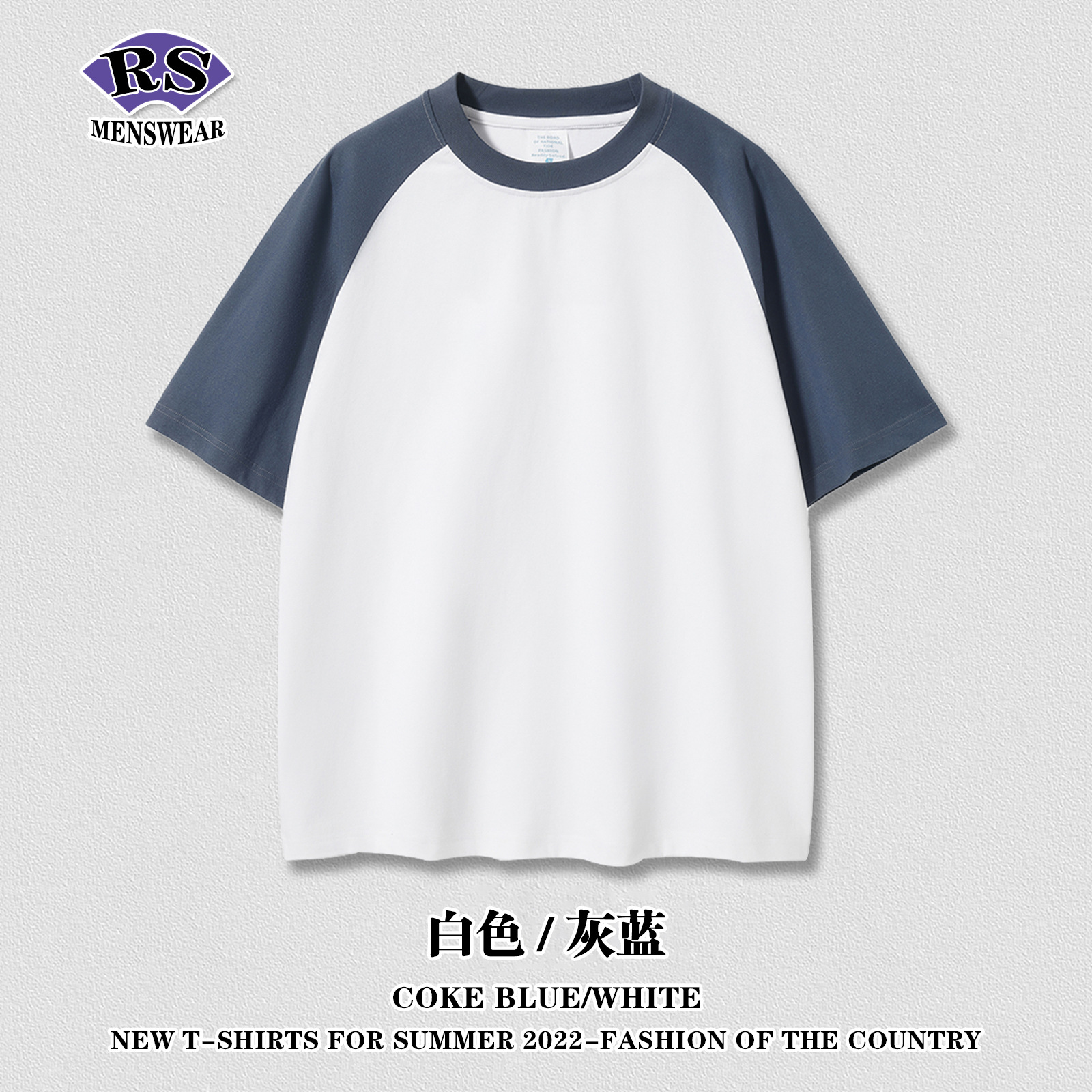 RS男装|270G纯棉短袖t恤撞色ins潮牌插肩袖男女同款t恤男ins风