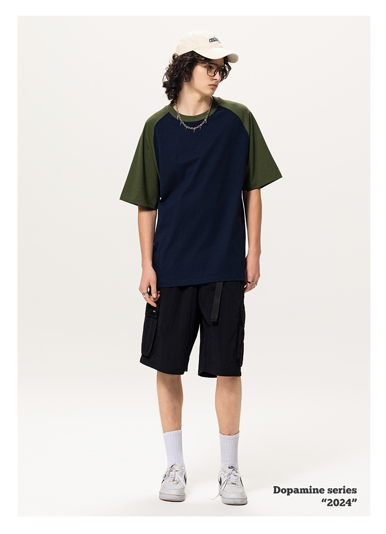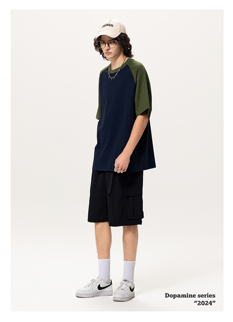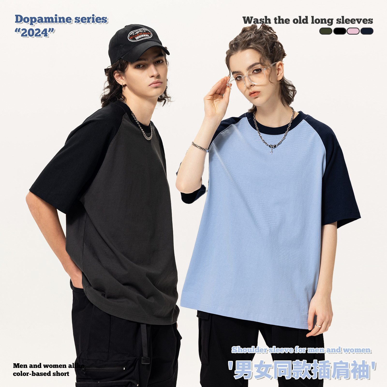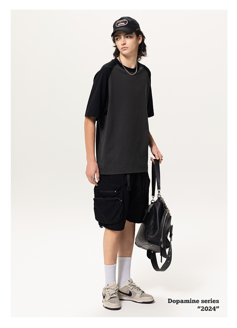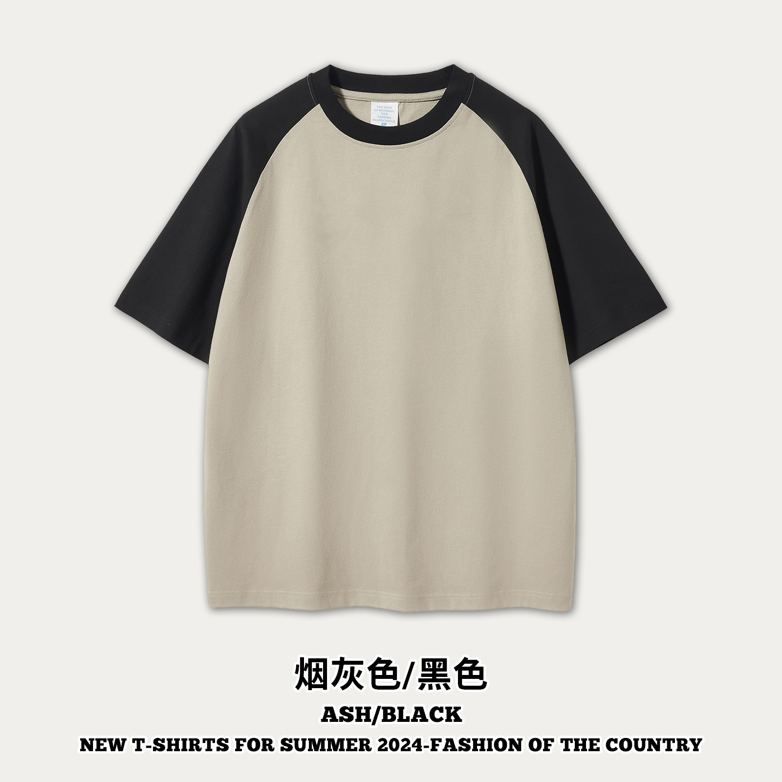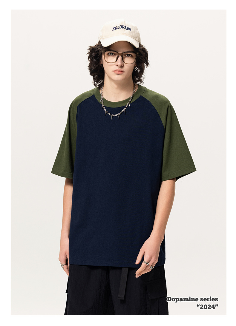 RS男装|270G纯棉短袖t恤撞色ins潮牌插肩袖男女同款t恤男ins风