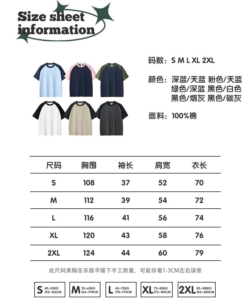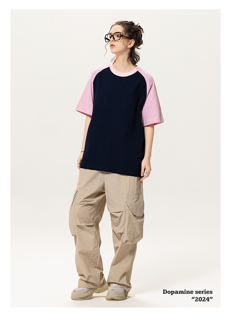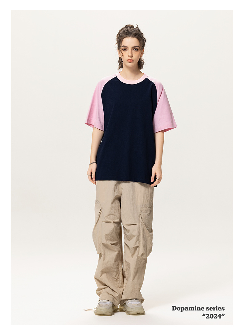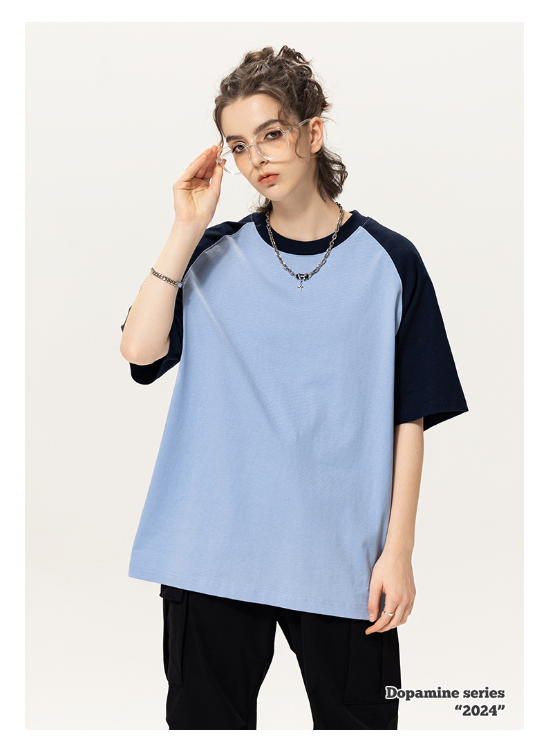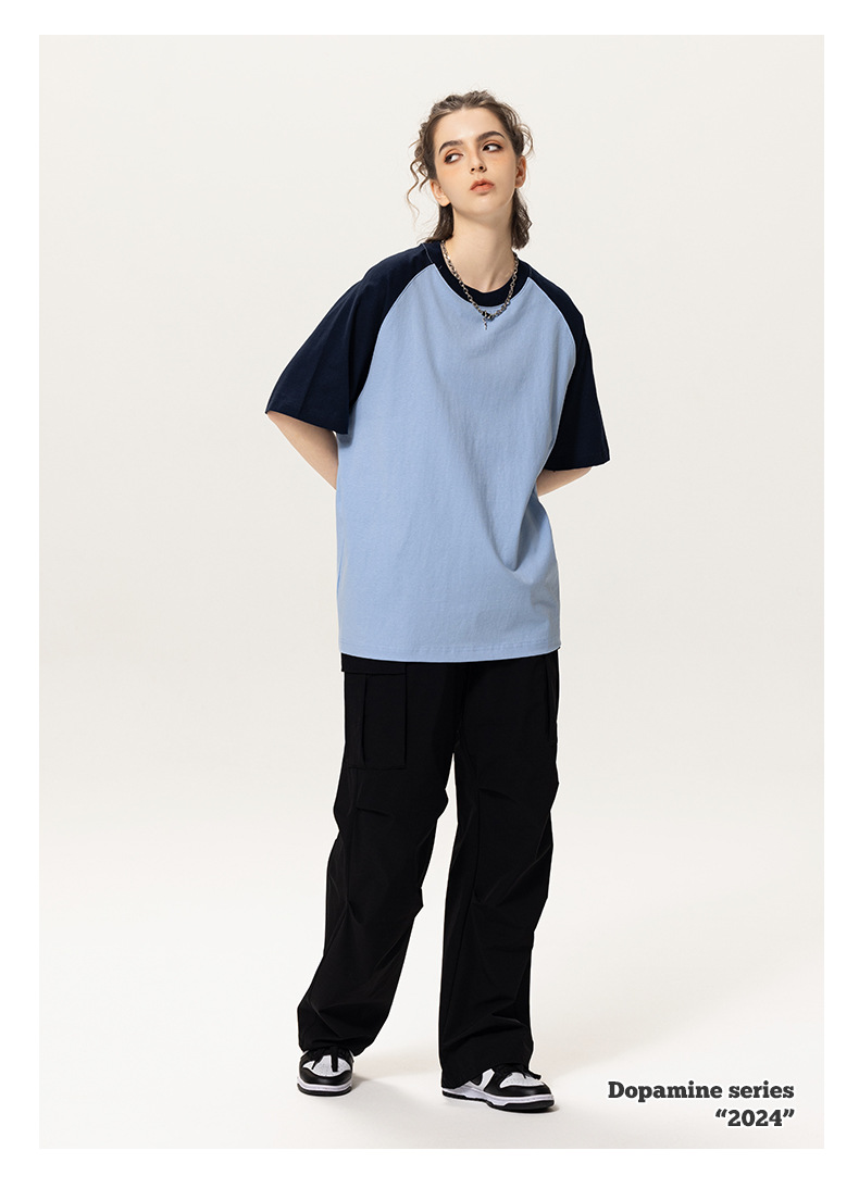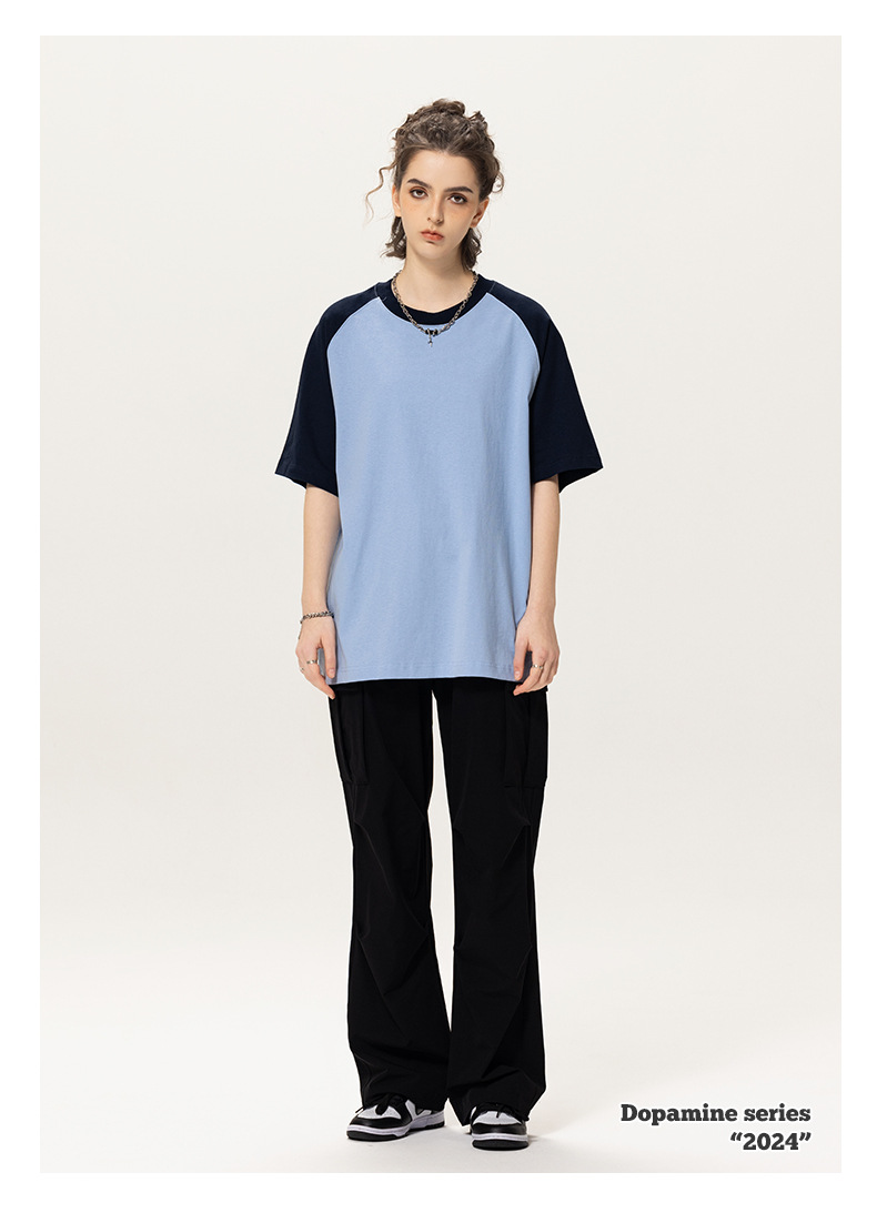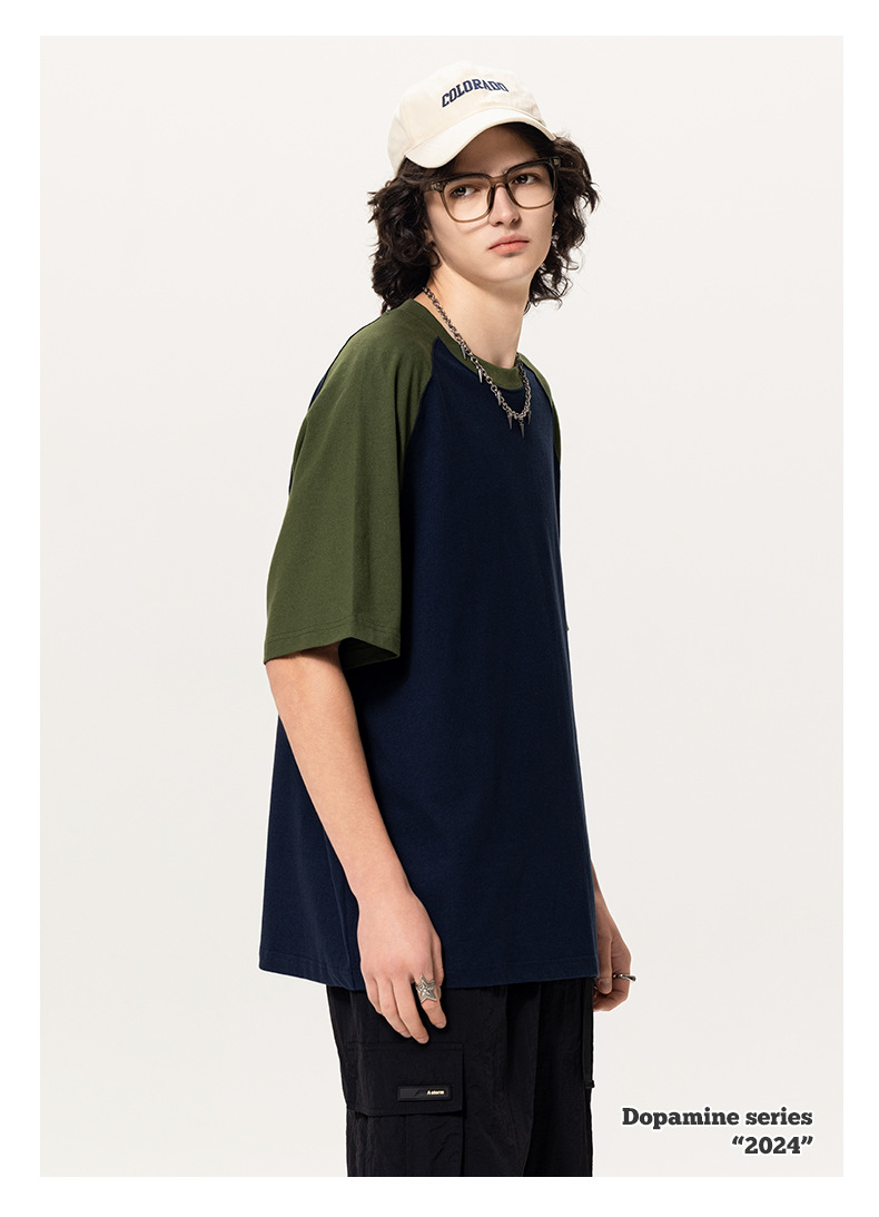 RS男装|270G纯棉短袖t恤撞色ins潮牌插肩袖男女同款t恤男ins风