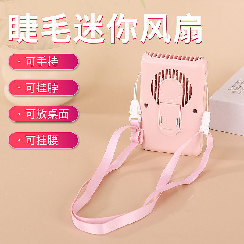 跨境新款睫毛迷你风扇USB充电多功能户外便携大风力桌面挂脖风扇