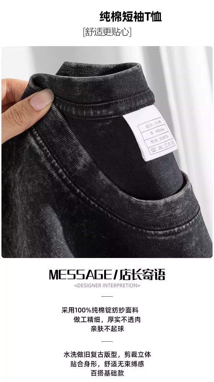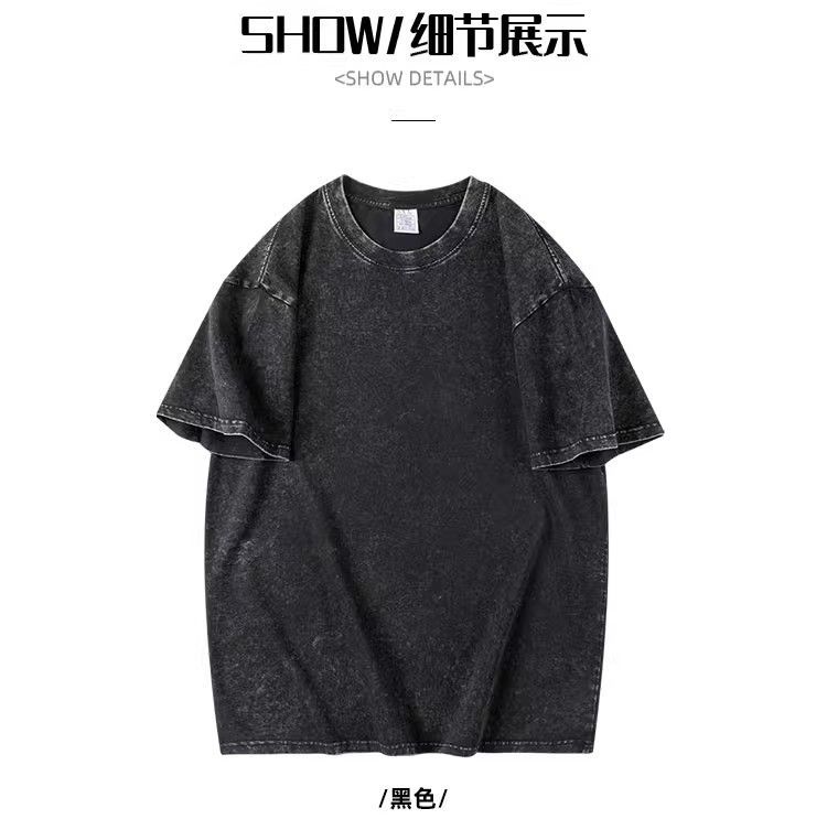 水洗炒雪花蜡染短袖T恤男女团体班服聚会文化衫印logo美式潮牌装