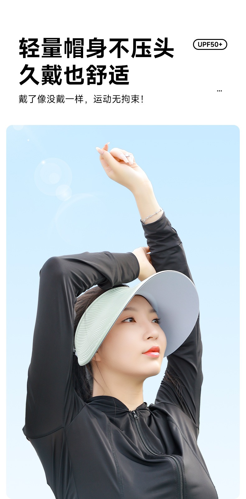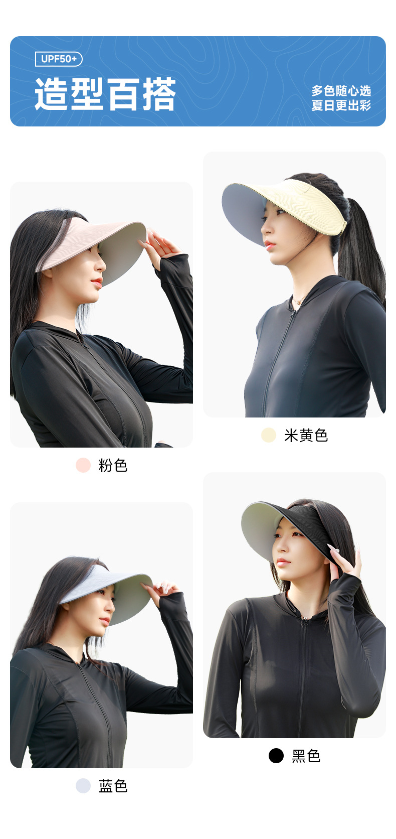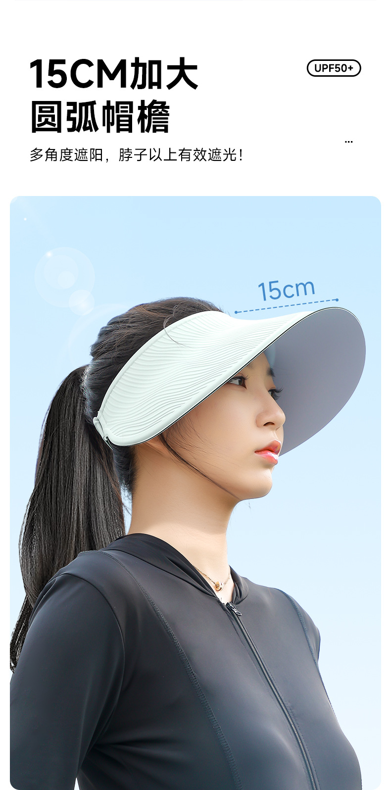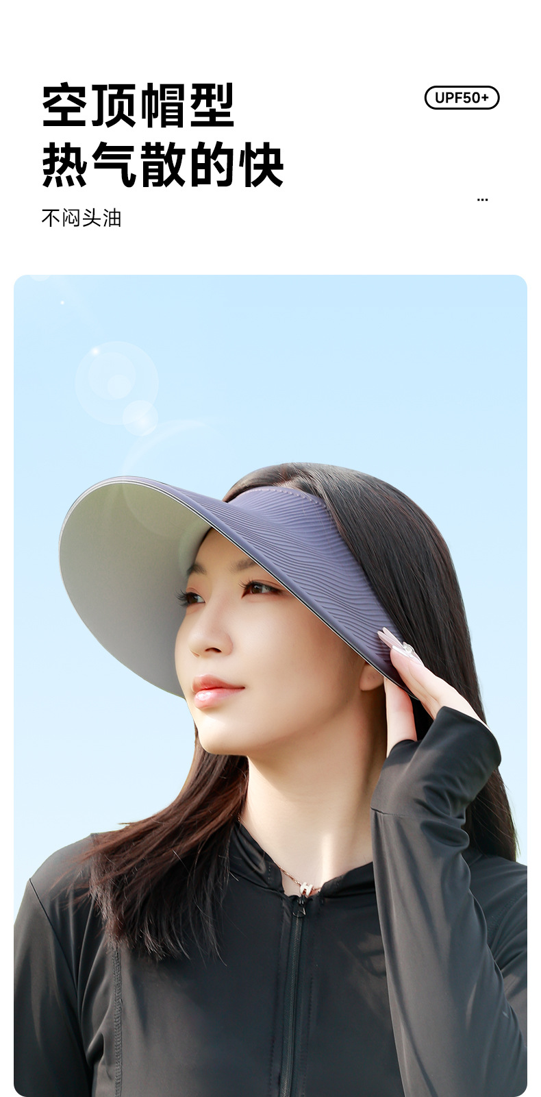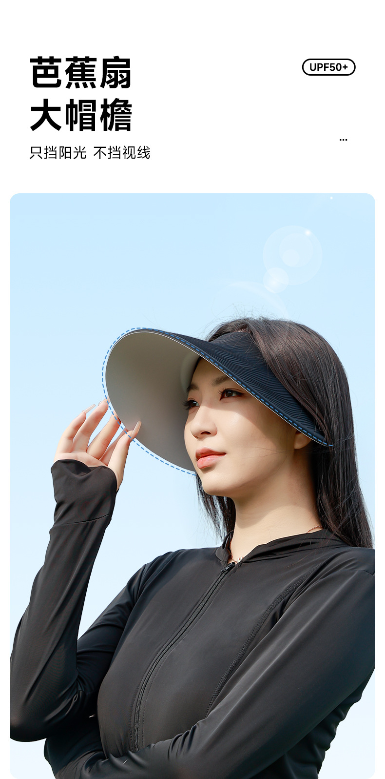 夏季空顶防晒帽纹理太阳帽女防紫外线骑车吹不翻大帽檐遮阳帽