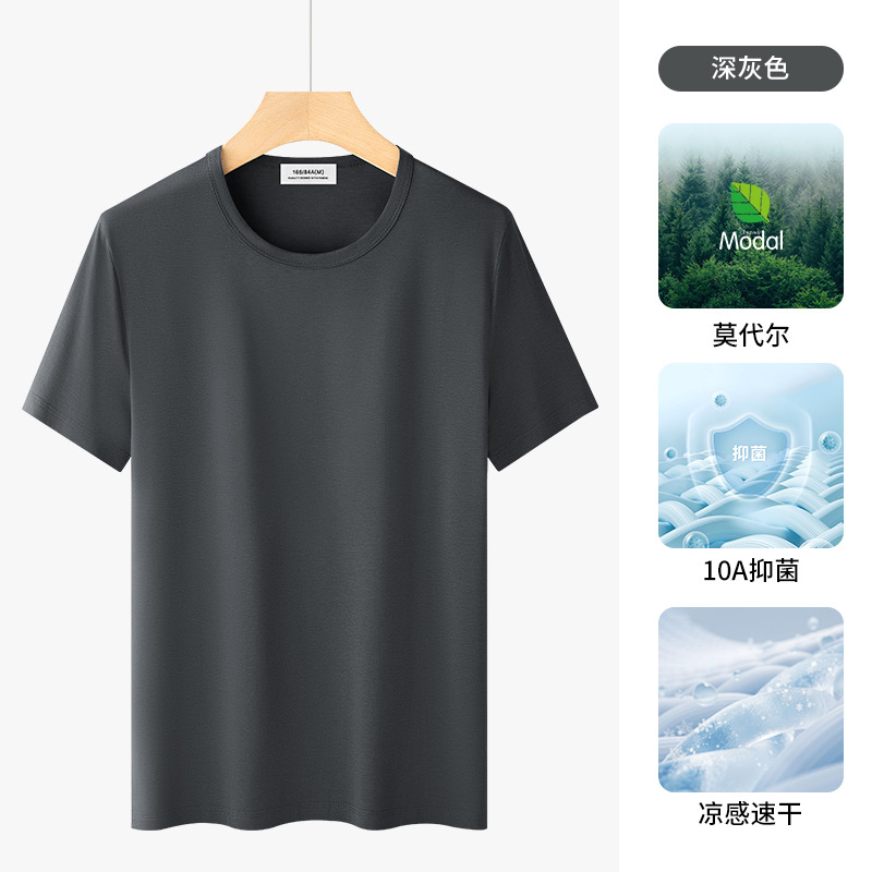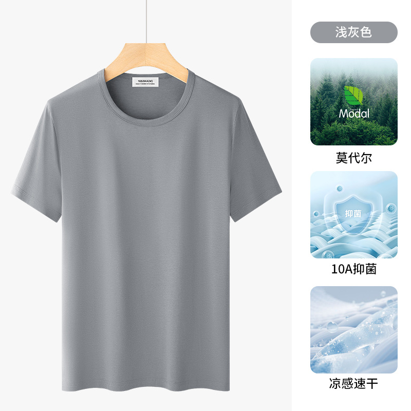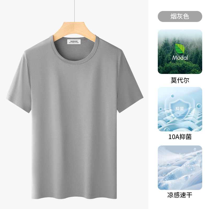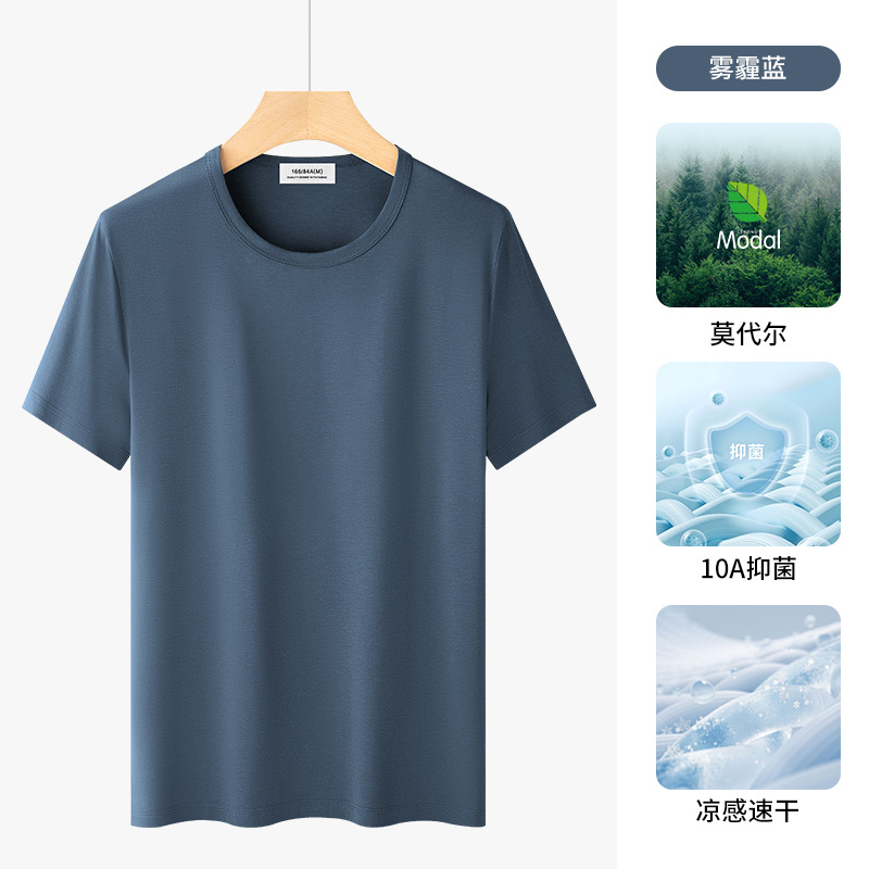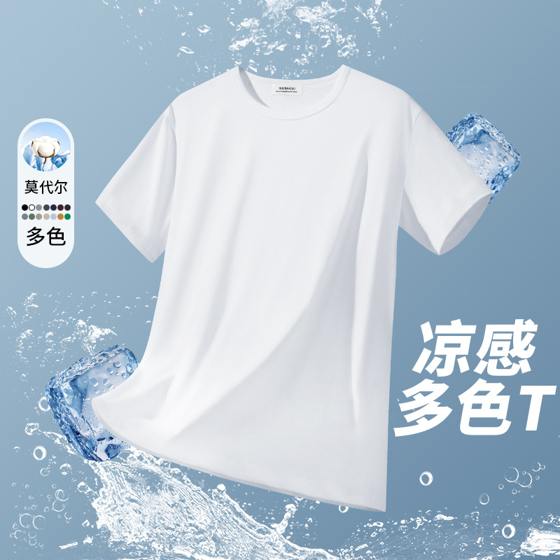高级感莫代尔短袖t恤男2025夏季新款高端男士薄款冰丝上衣潮牌男