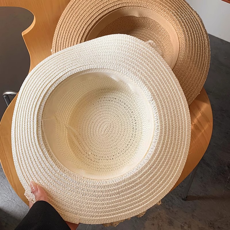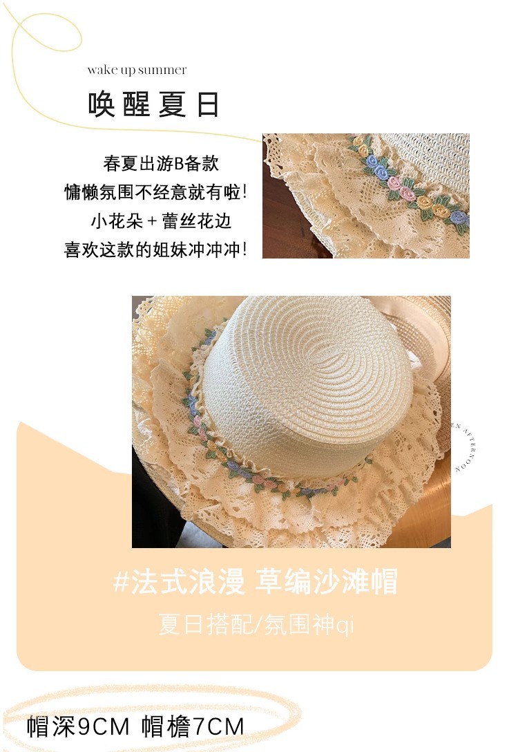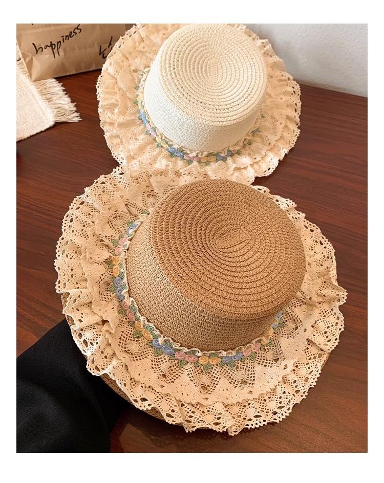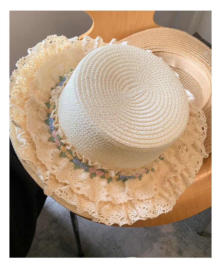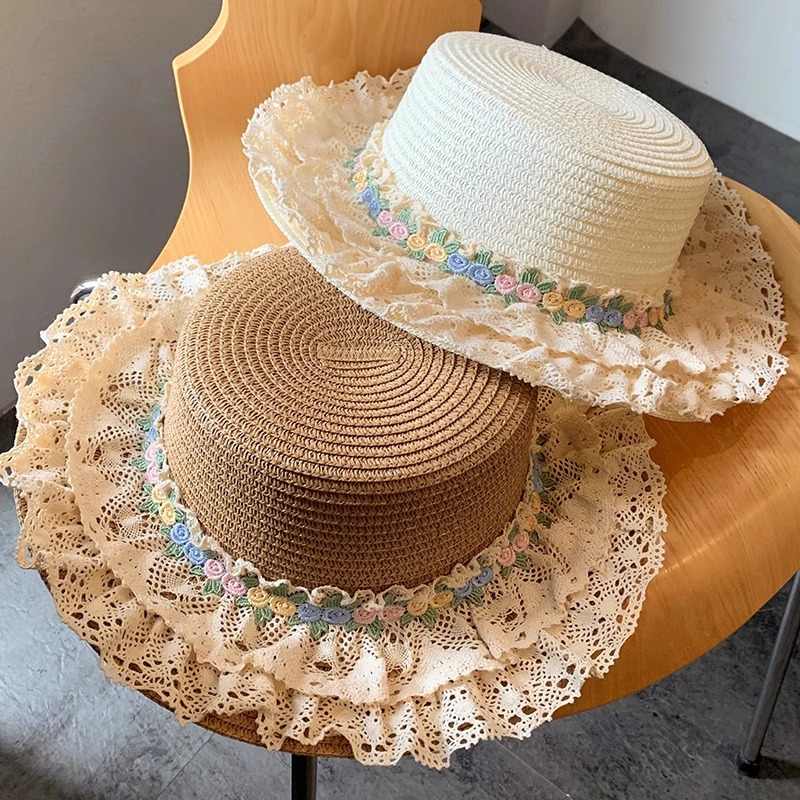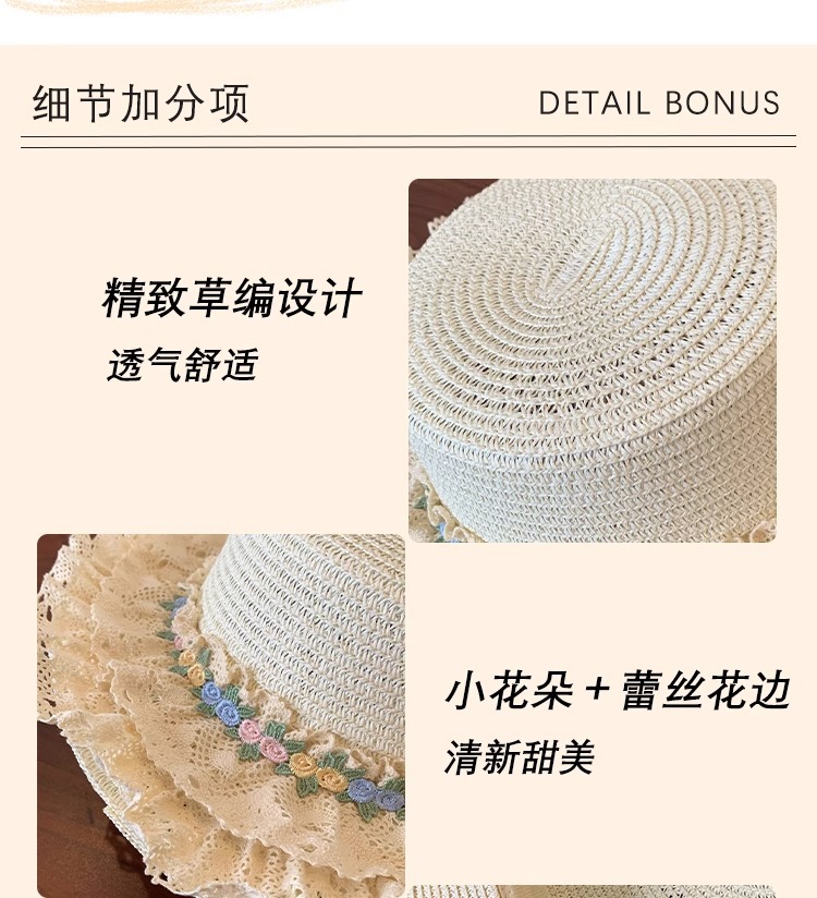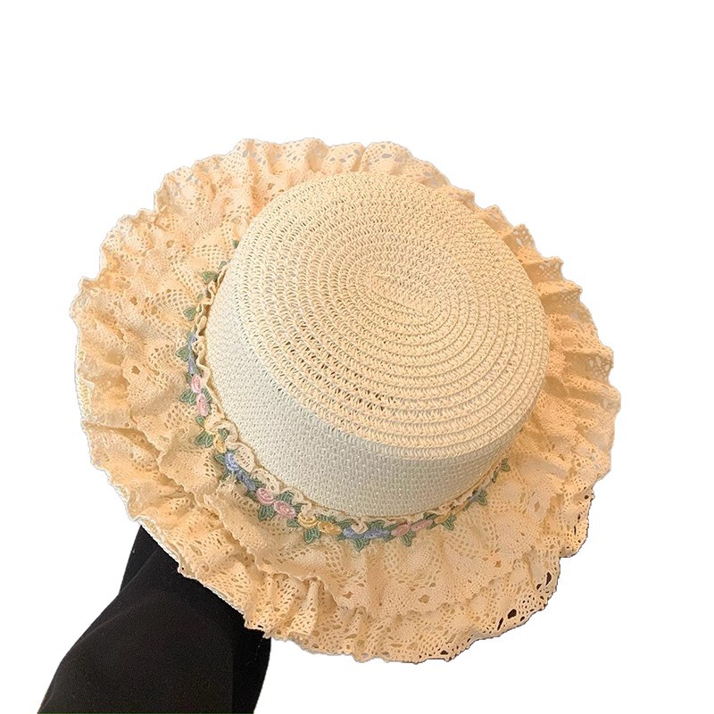 台州温岭帽子洛丽塔草帽女夏季海边遮阳防晒帽蕾丝花边平顶帽礼帽