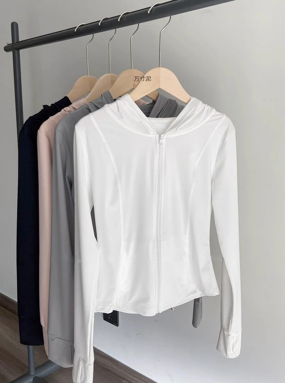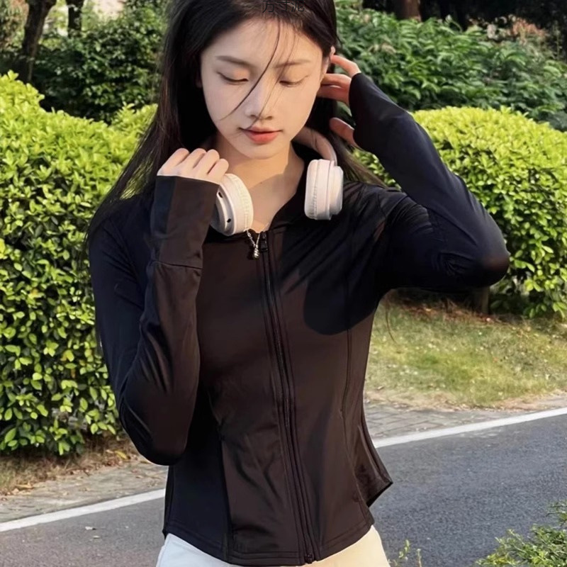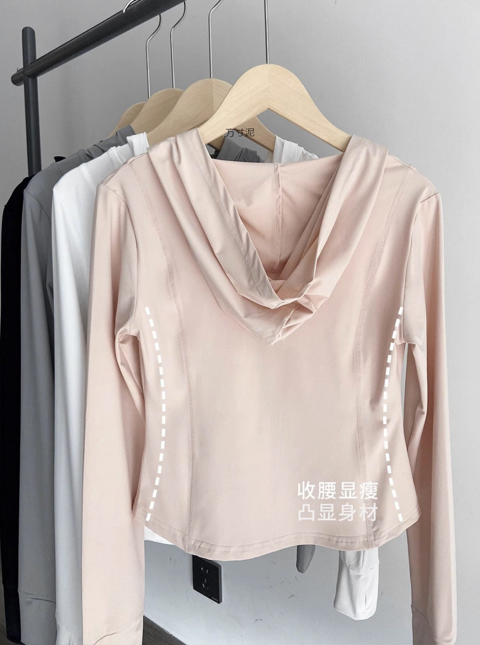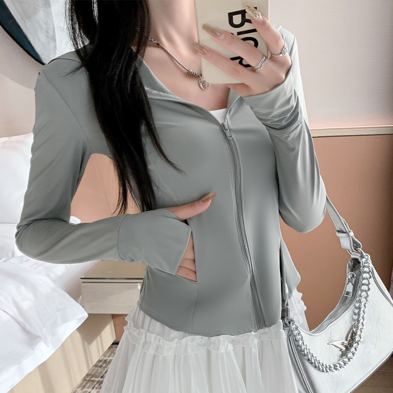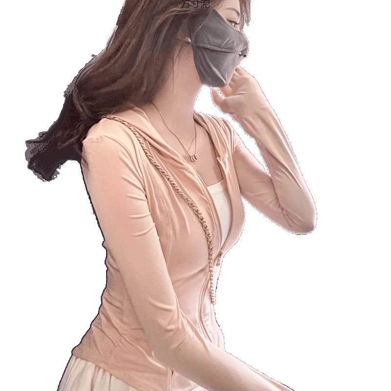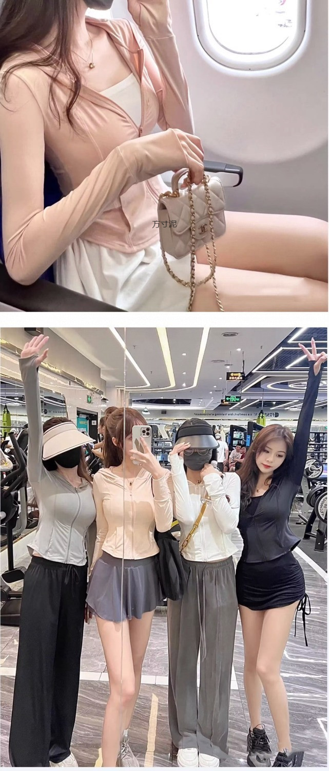 粉色冰丝防晒衣女运动夏季薄款透气防紫外线修身短款连帽上衣批发