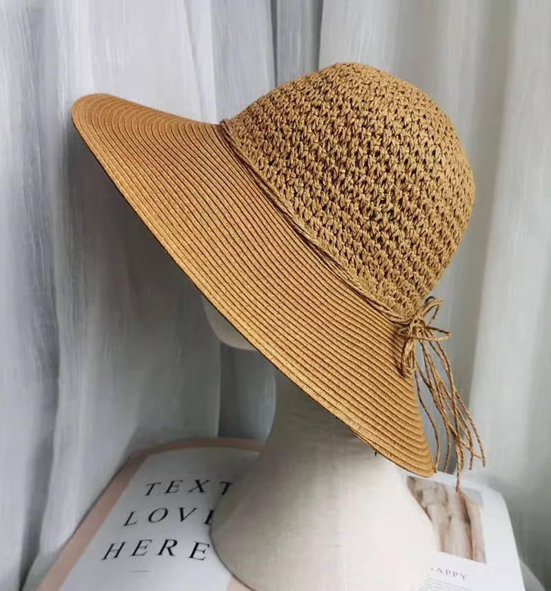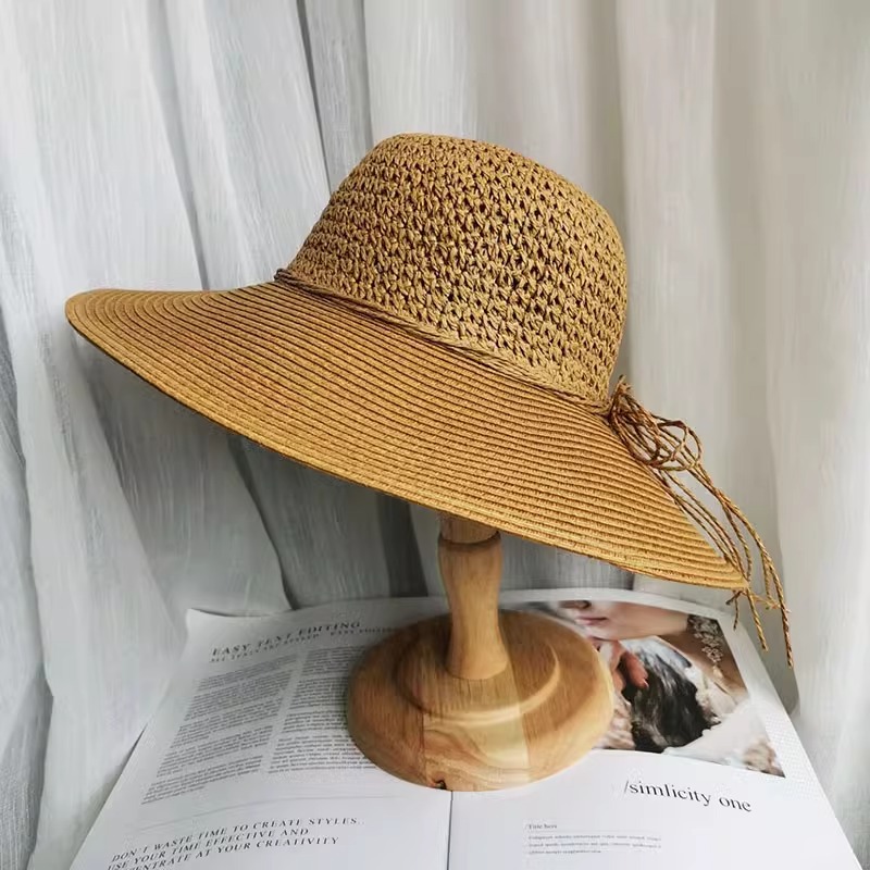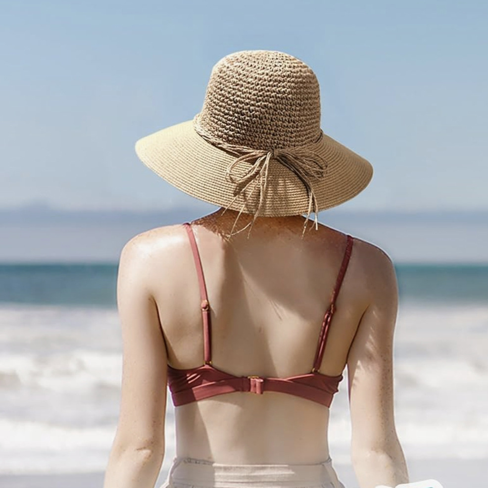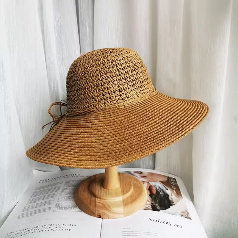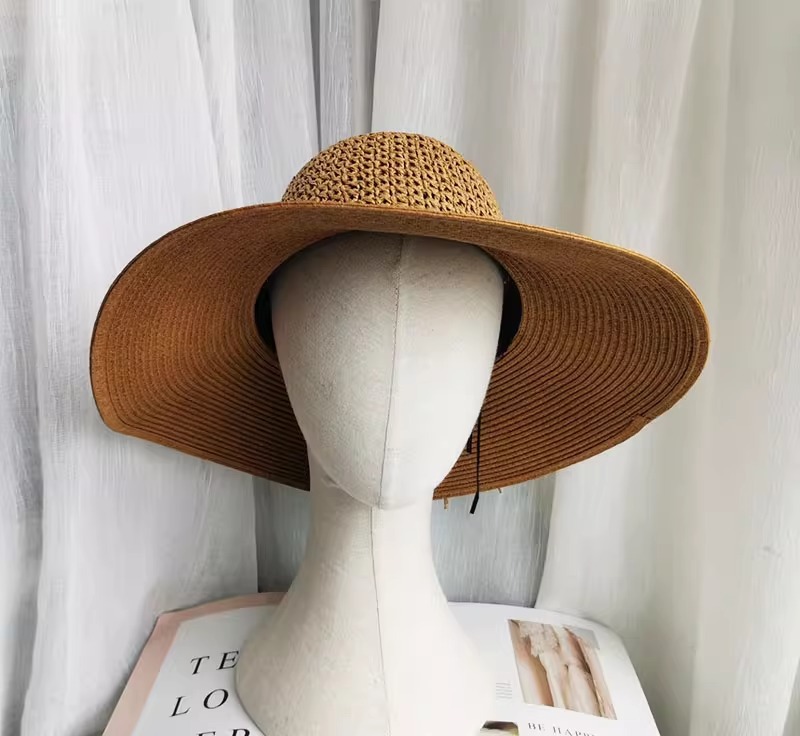 帽子女沙滩度假海边可折叠跨境遮阳防晒帽夏季大沿拼接纸草帽