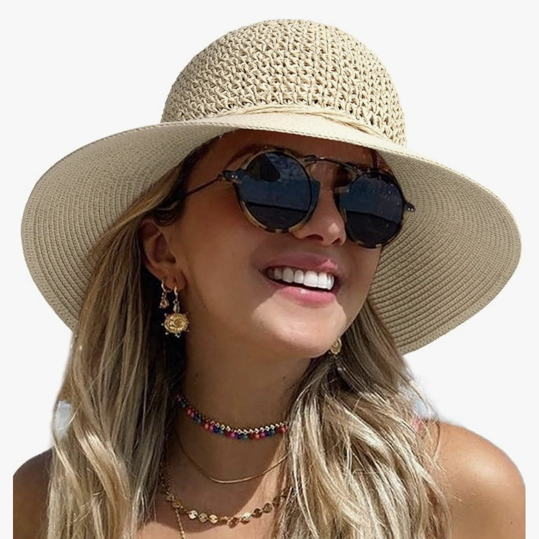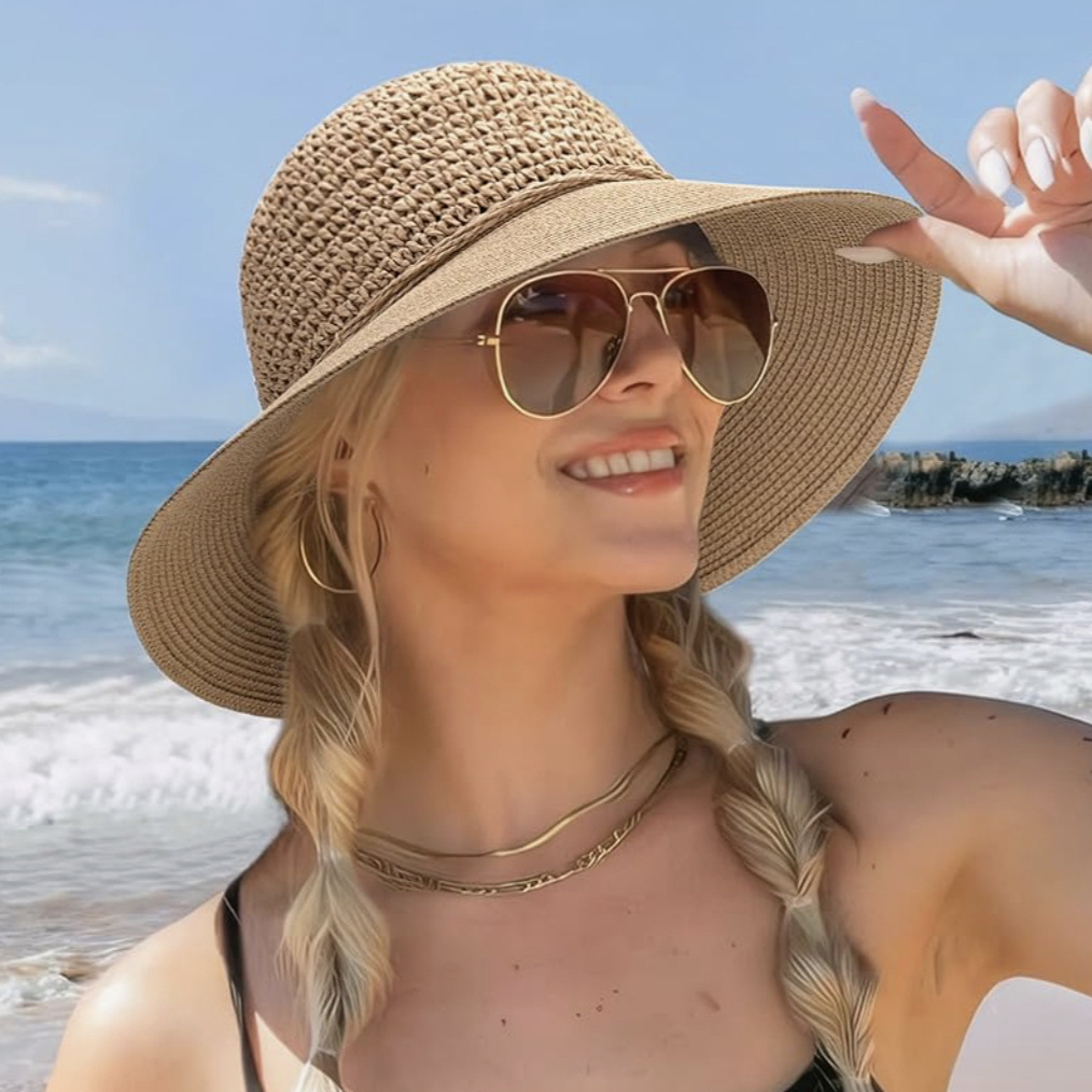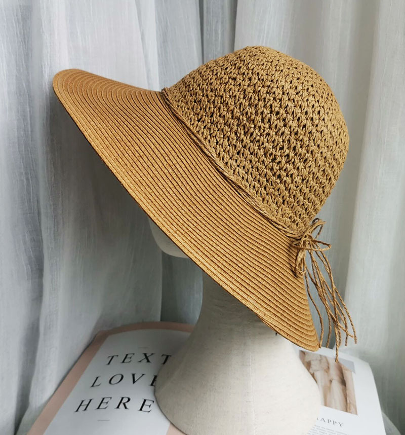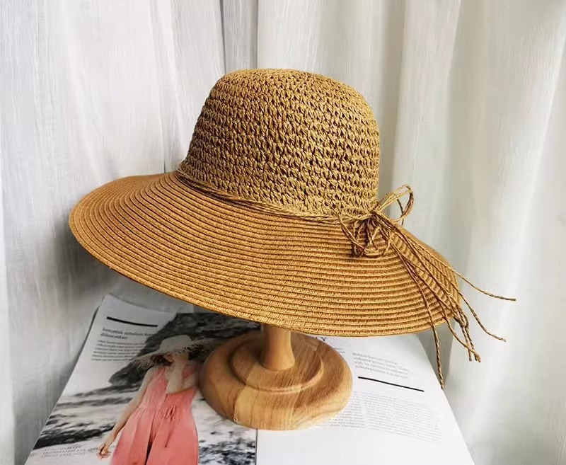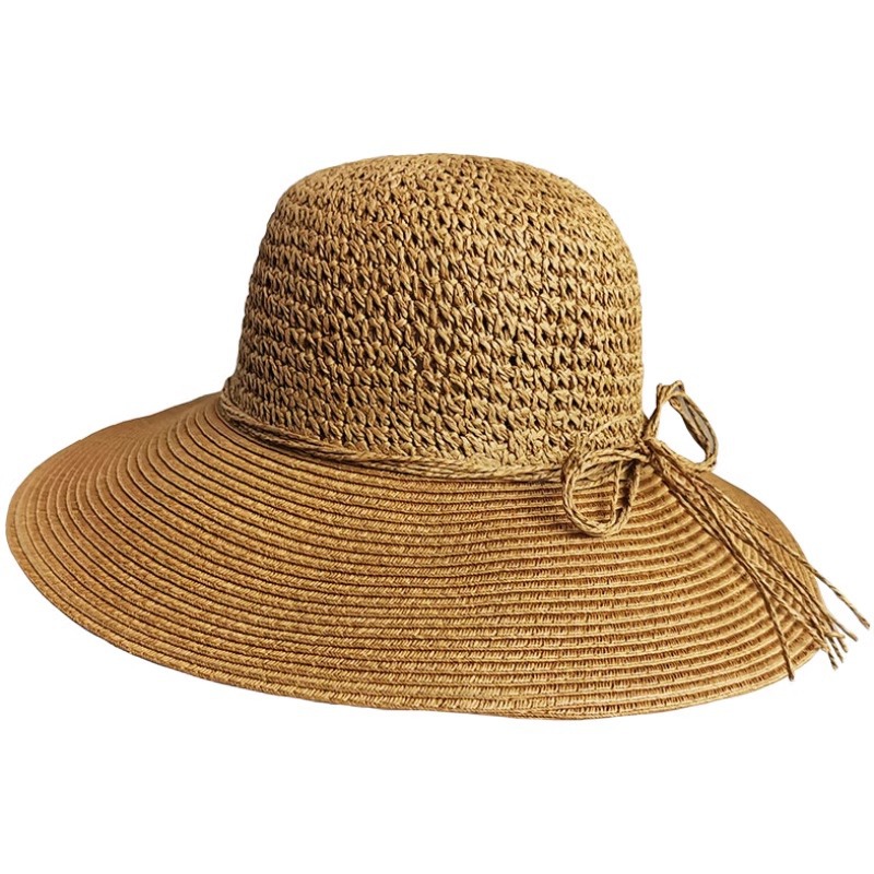 帽子女沙滩度假海边可折叠跨境遮阳防晒帽夏季大沿拼接纸草帽