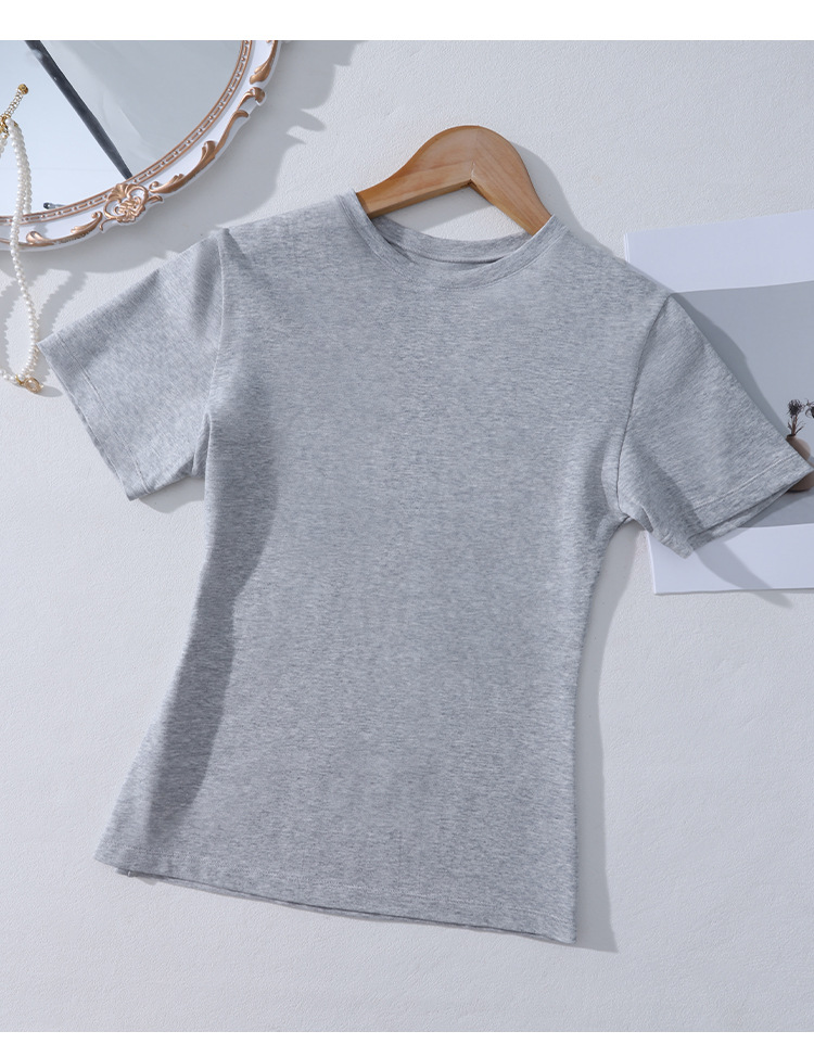 skim*同款面料圆领打底t恤女修身内搭舒适透气短袖上衣打底衫秋季