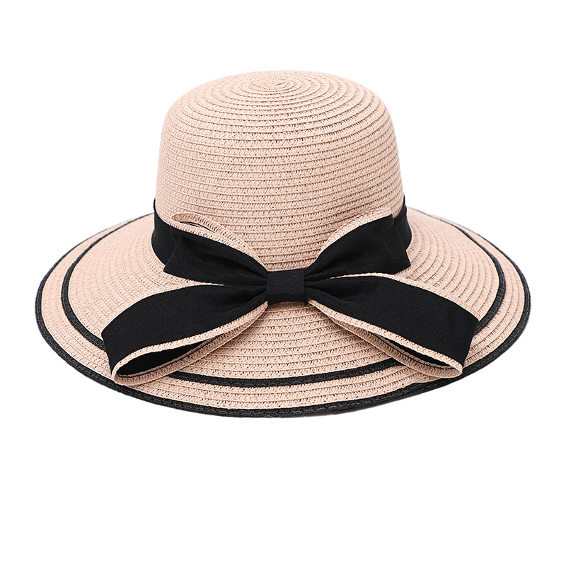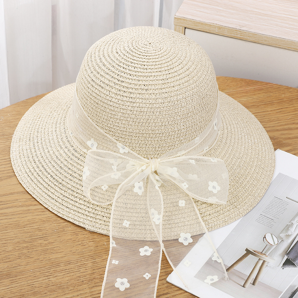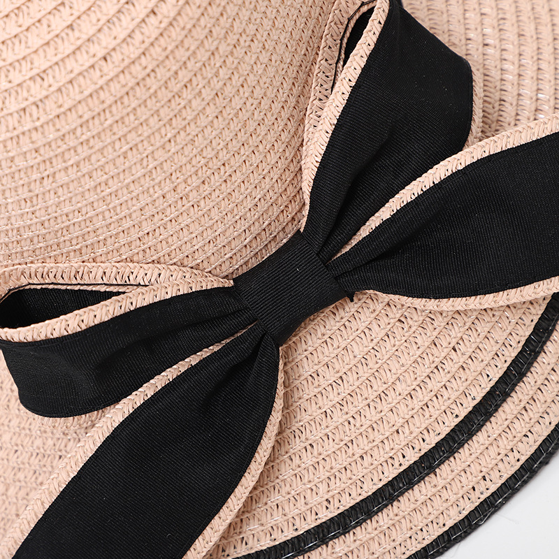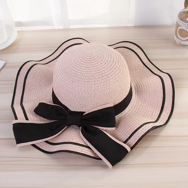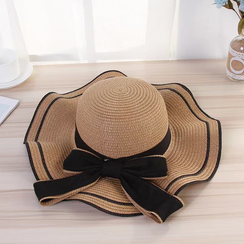 春夏季编织草帽女士百搭海边大沿蝴蝶结防嗮帽贵族气质遮阳帽子