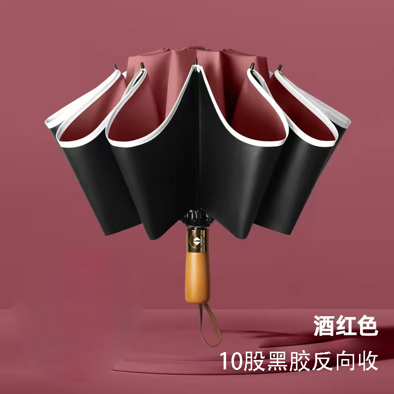12骨木质全自动反向雨伞大号折叠男女晴雨两用防晒太阳伞加印logo