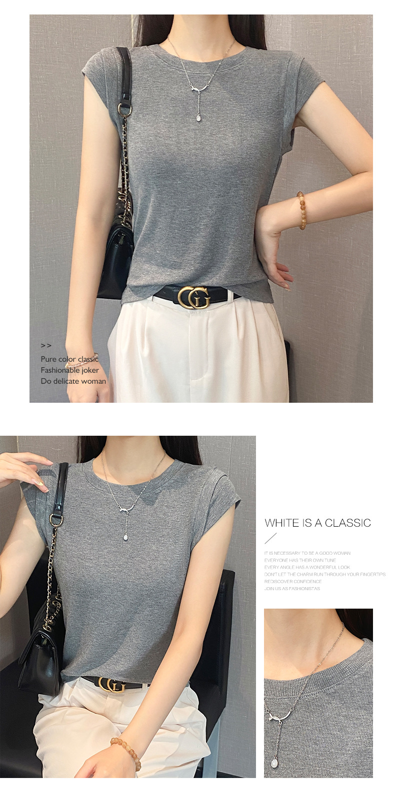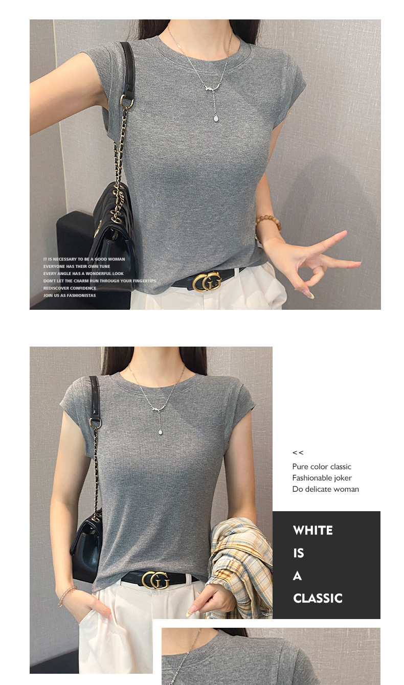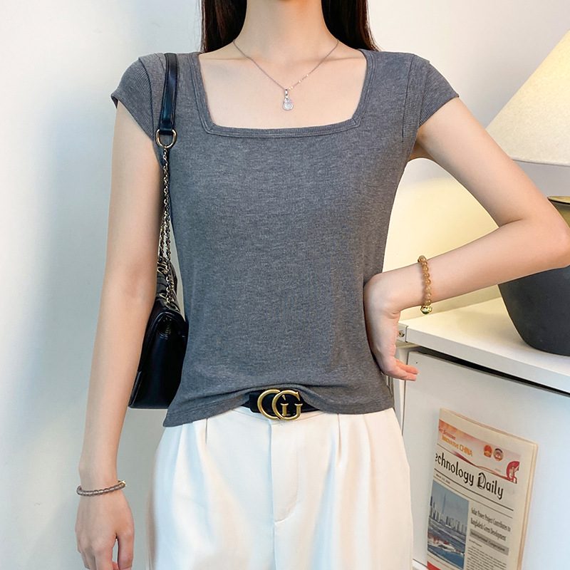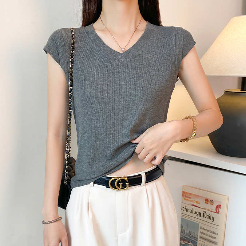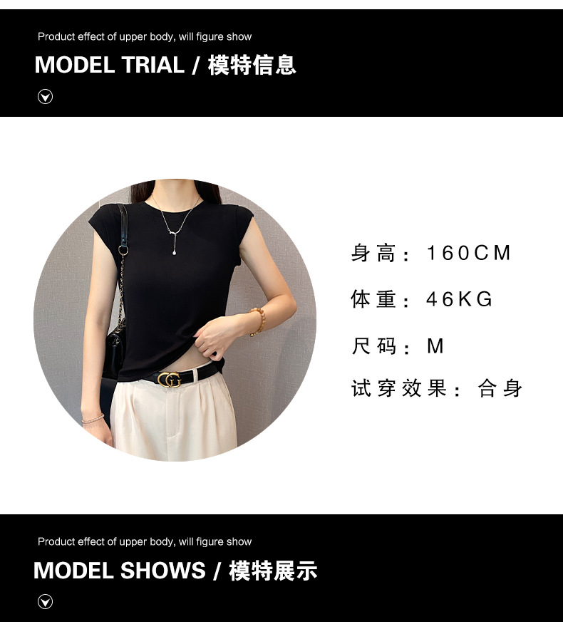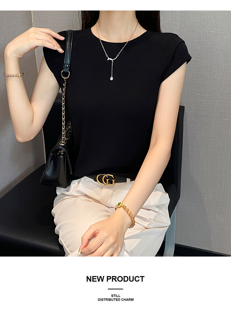 2025新款螺纹圆领短袖t恤女夏季修身打底衫百搭显瘦飞飞袖上衣潮