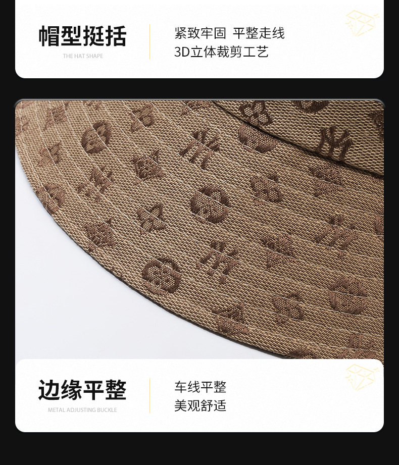 春夏渔夫帽大沿遮阳帽 男女同款刺绣渔夫帽春秋户外休闲运动帽子