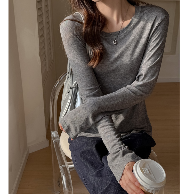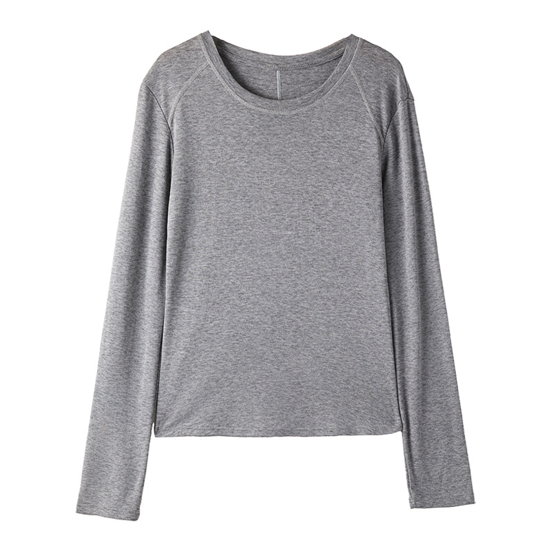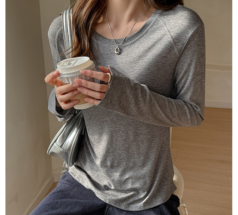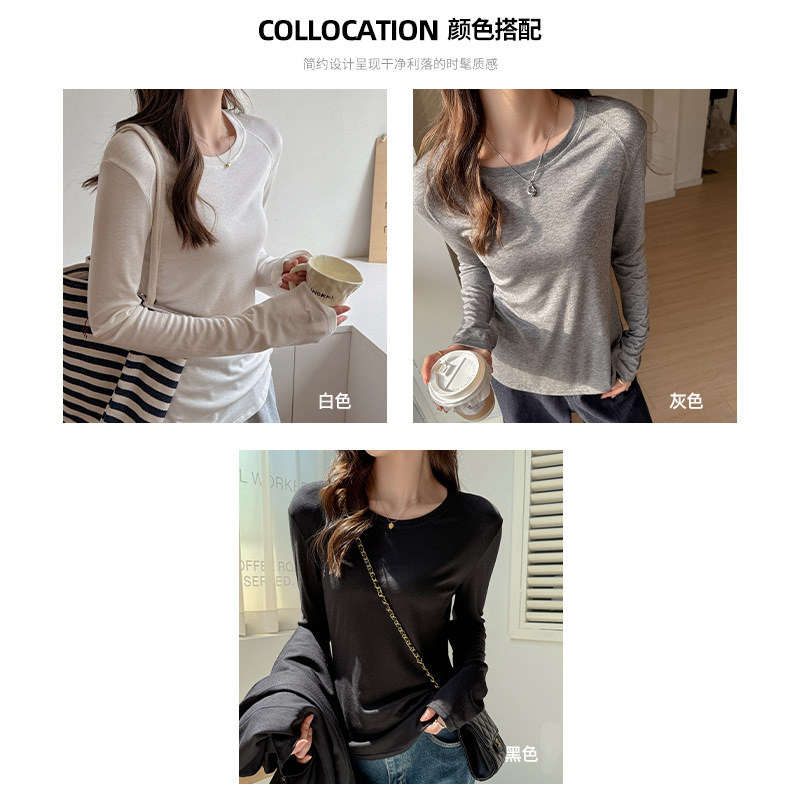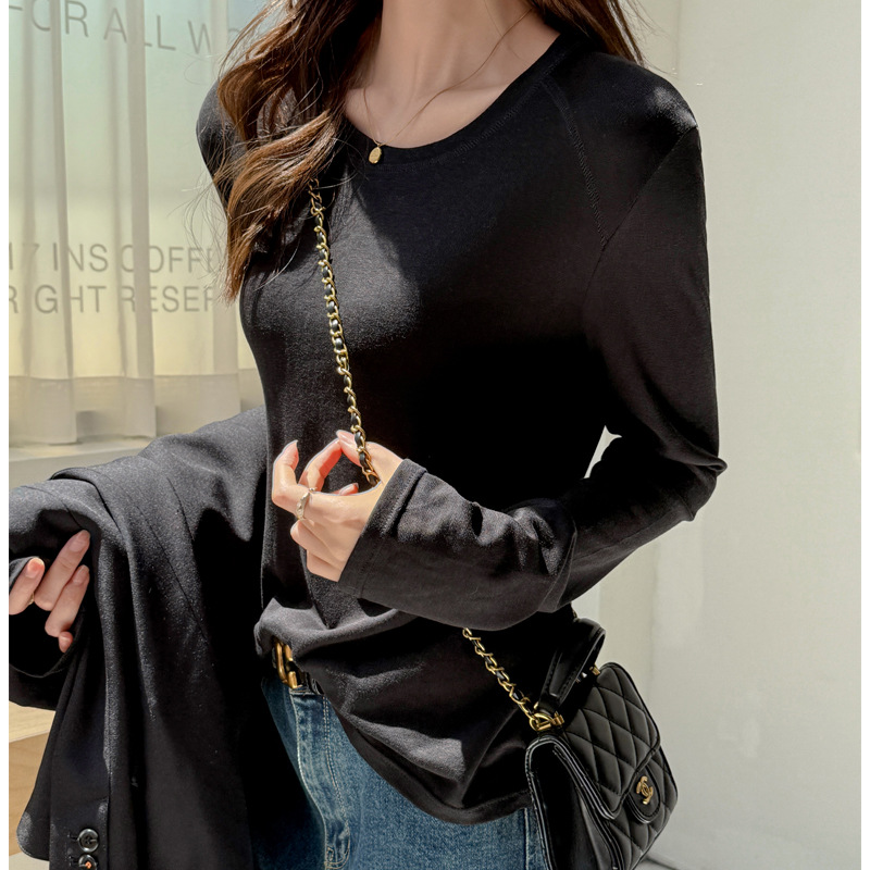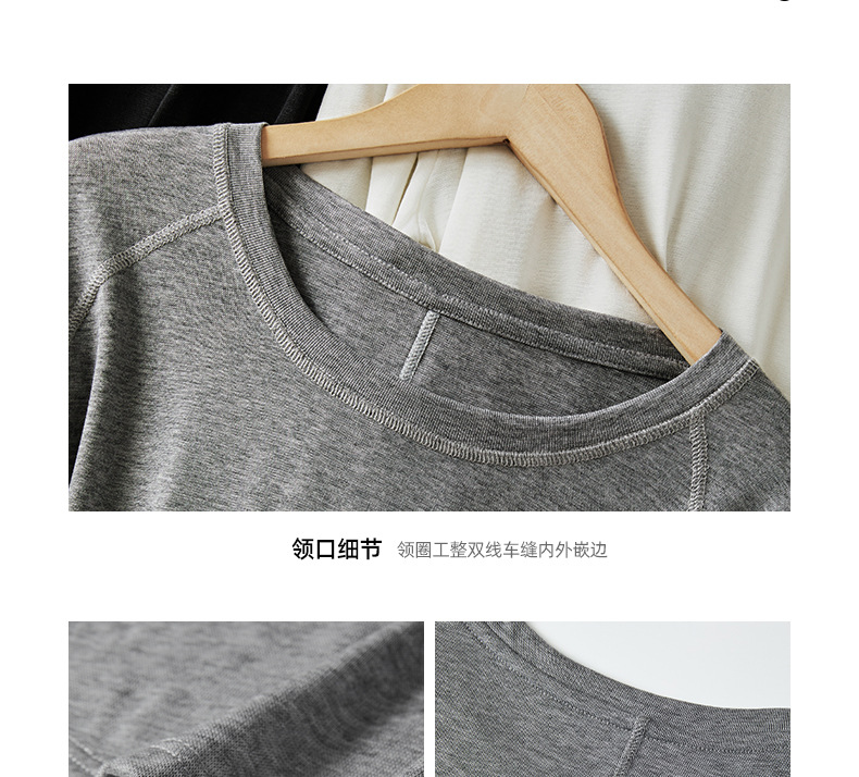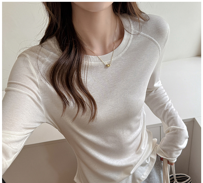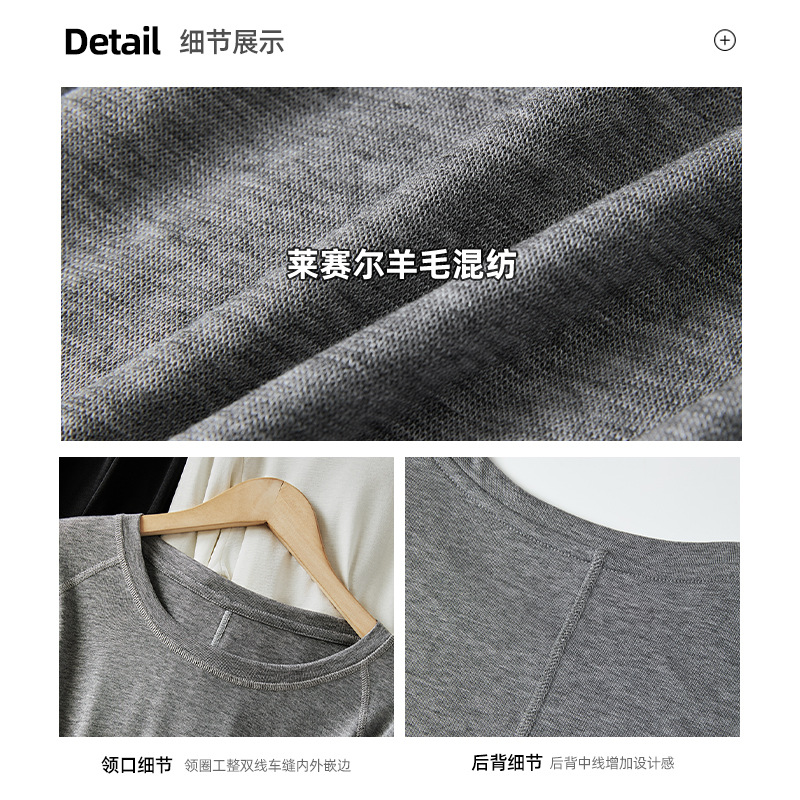 羊毛天丝慵懒风圆领插肩长袖t恤女士内搭秋冬季打底衫可外穿上衣