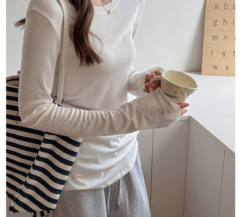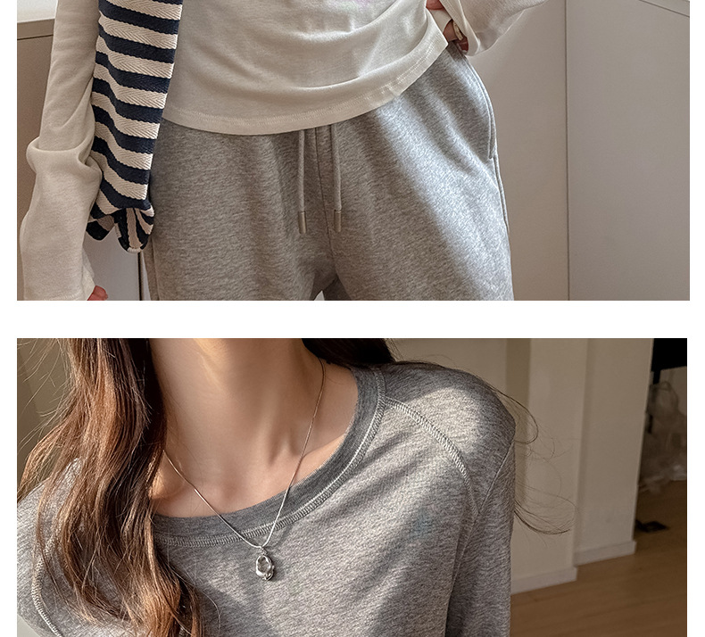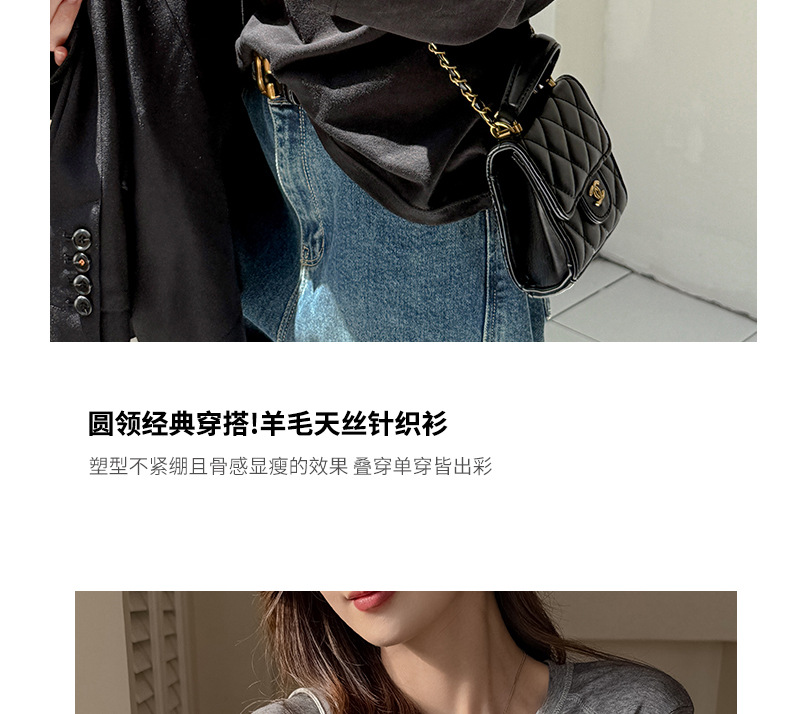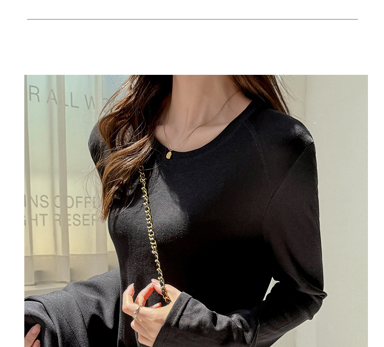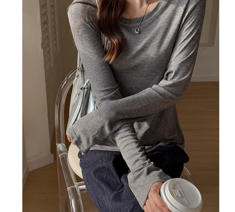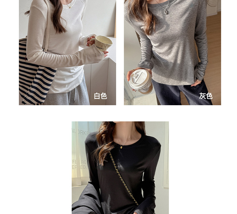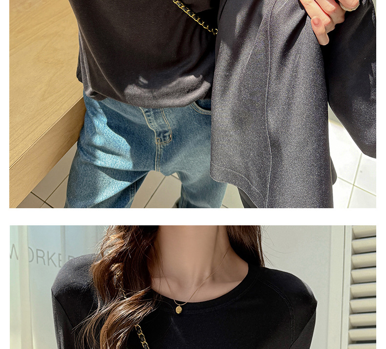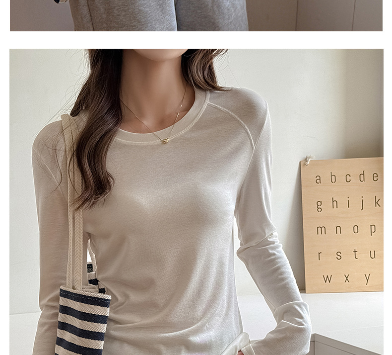 羊毛天丝慵懒风圆领插肩长袖t恤女士内搭秋冬季打底衫可外穿上衣