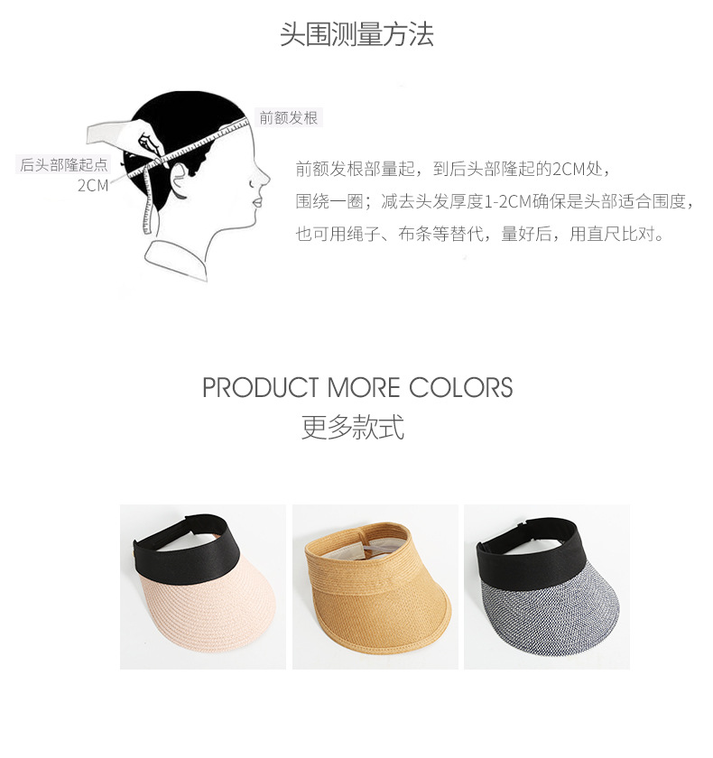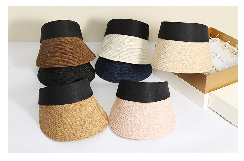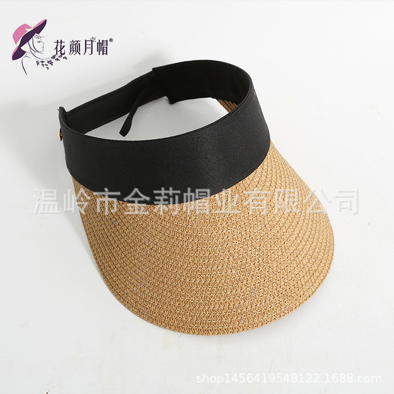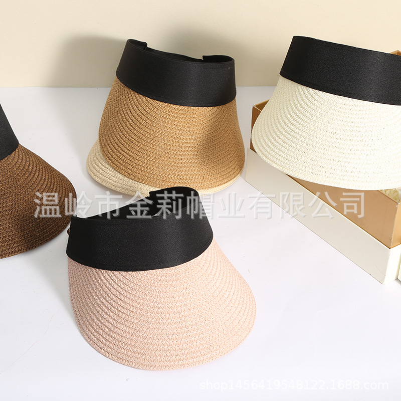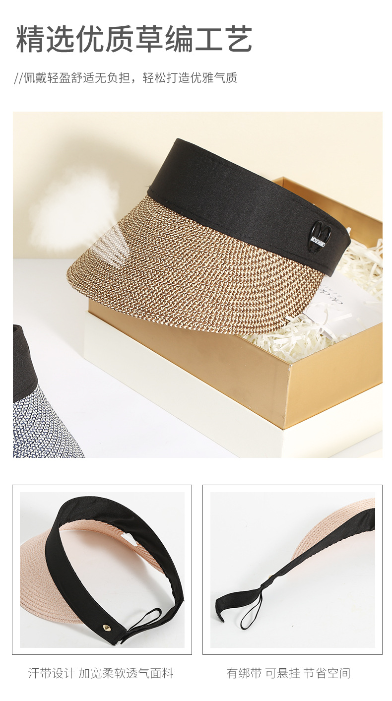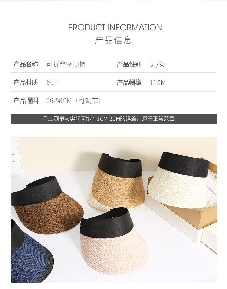 空顶帽防晒帽女夏可折叠草编帽防晒帽子女款户外草帽编织女遮阳帽