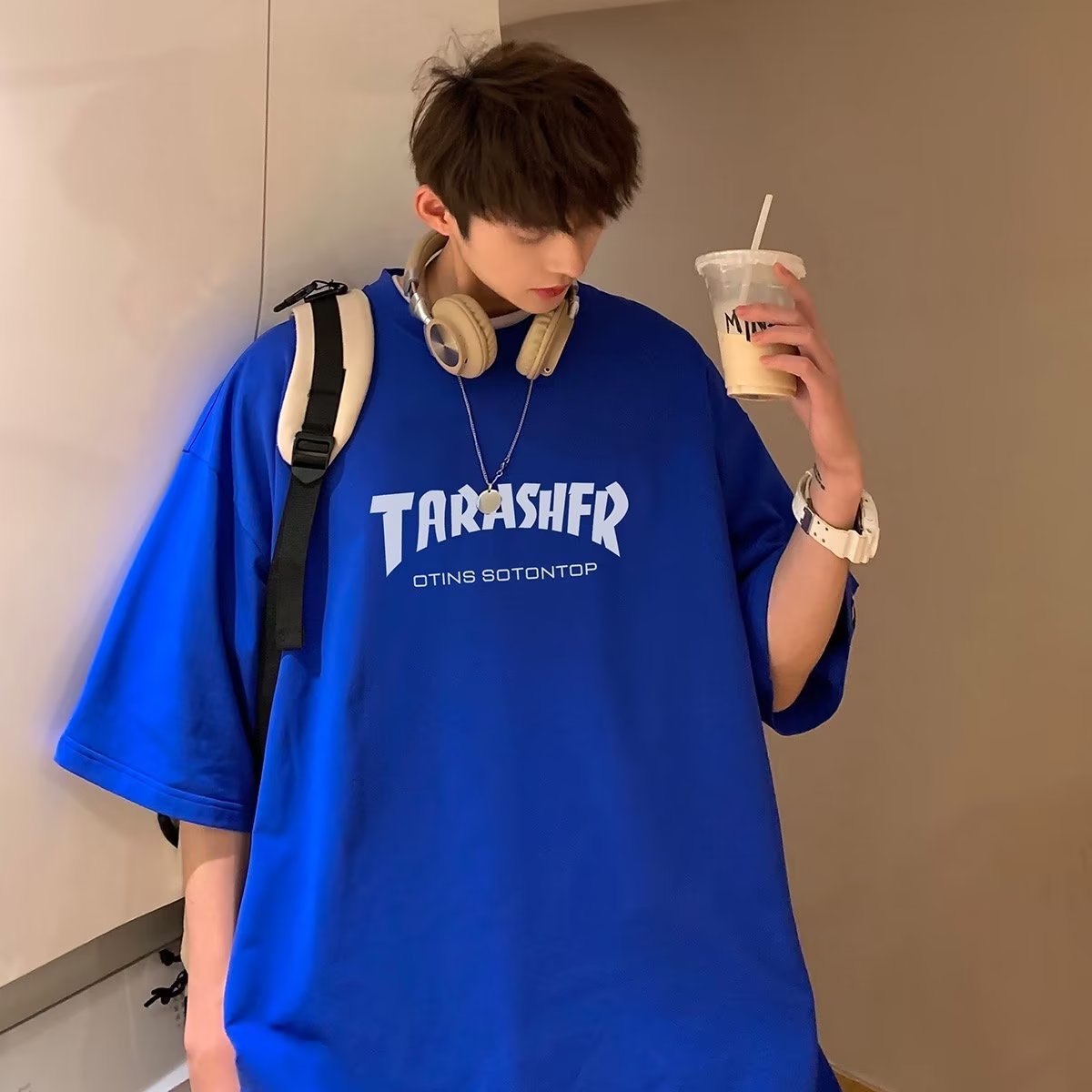 夏季字母t恤男潮牌港风潮流网红衣服男五分半袖ins短袖男宽松衣服