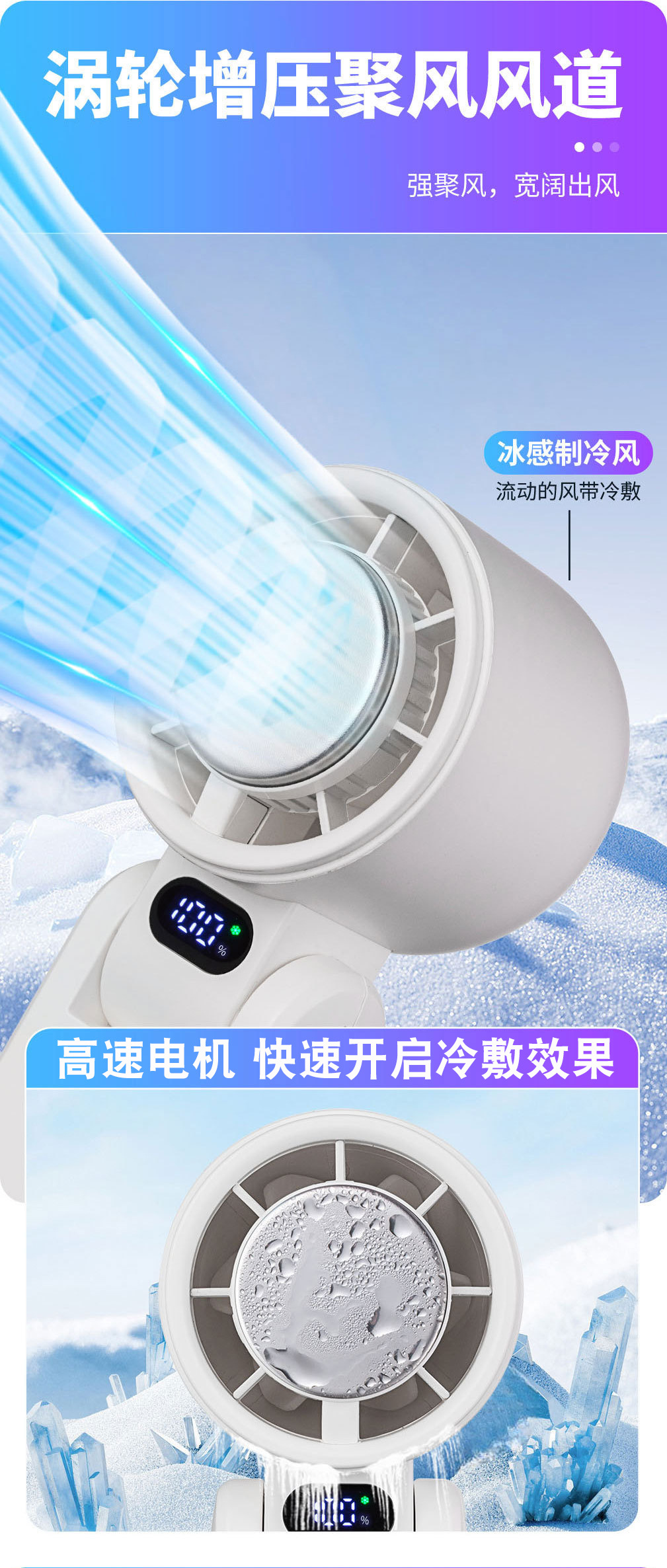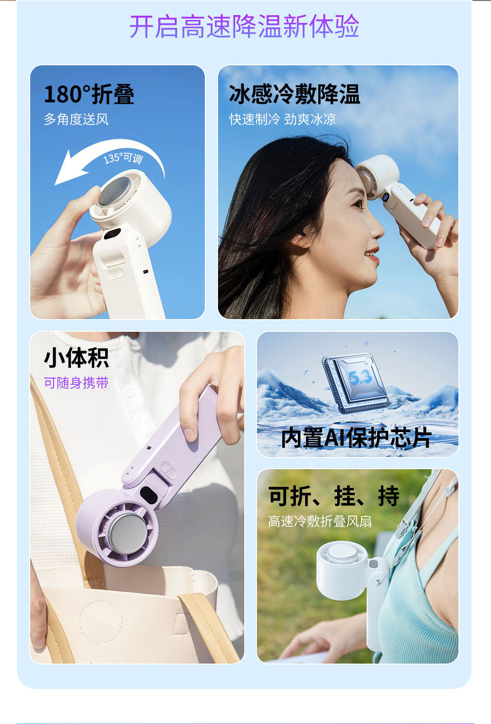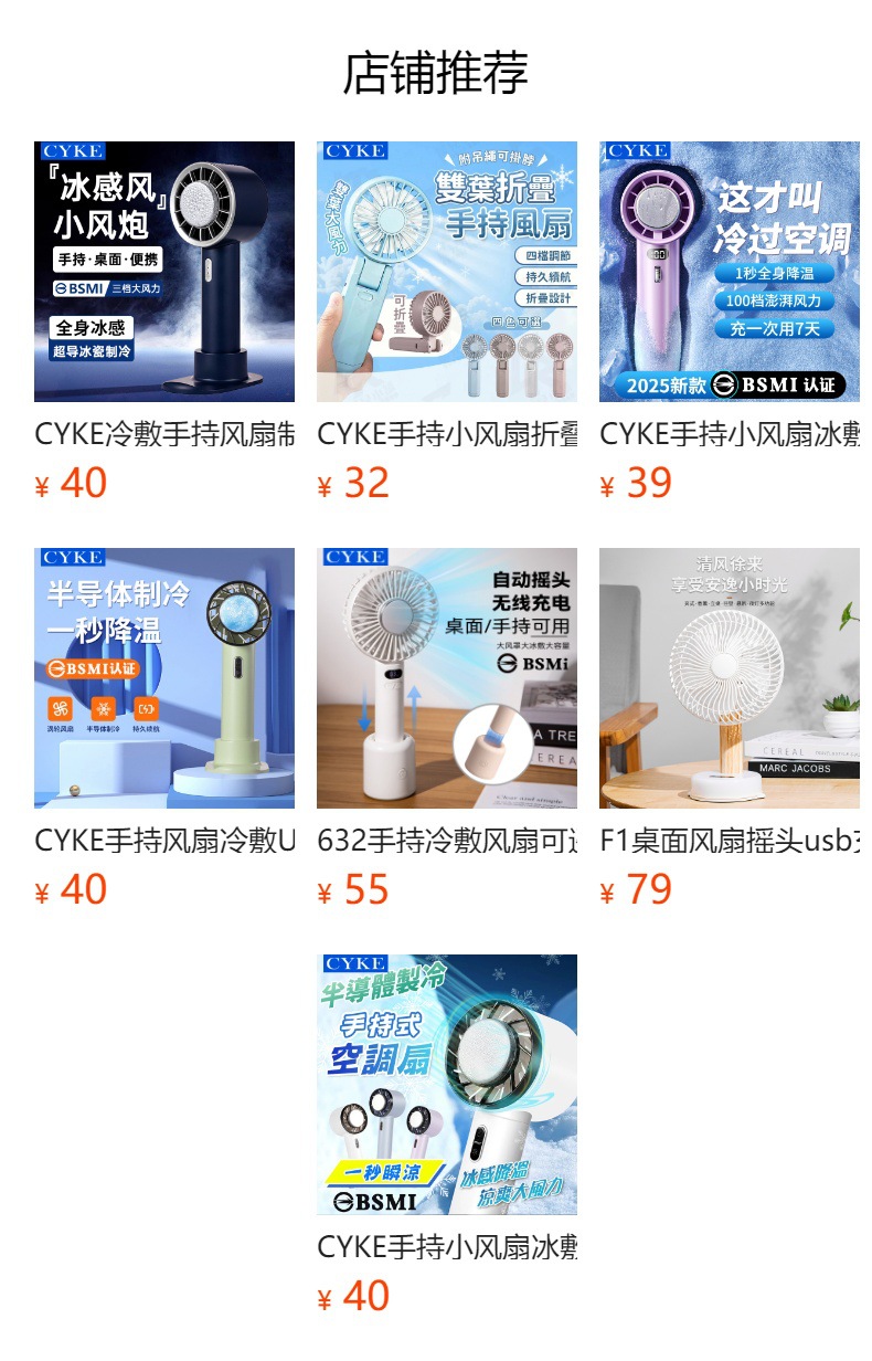 CYKE手持小风扇制冷冰敷高速暴力风扇迷你电风扇可折叠挂脖扇BSMI