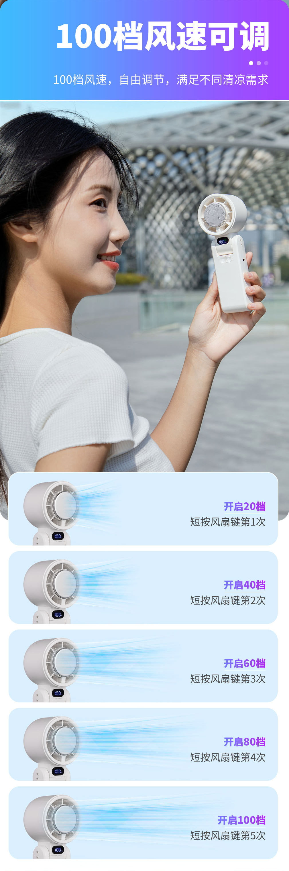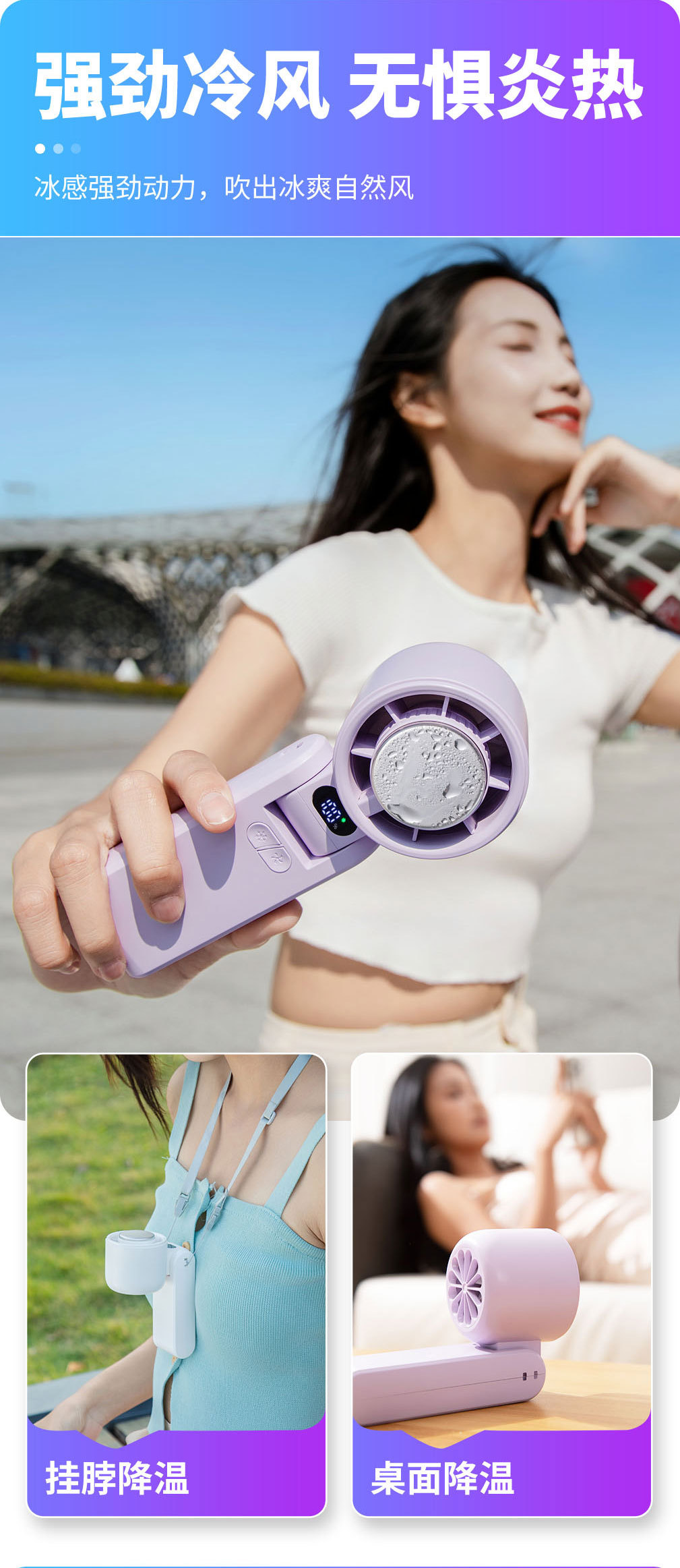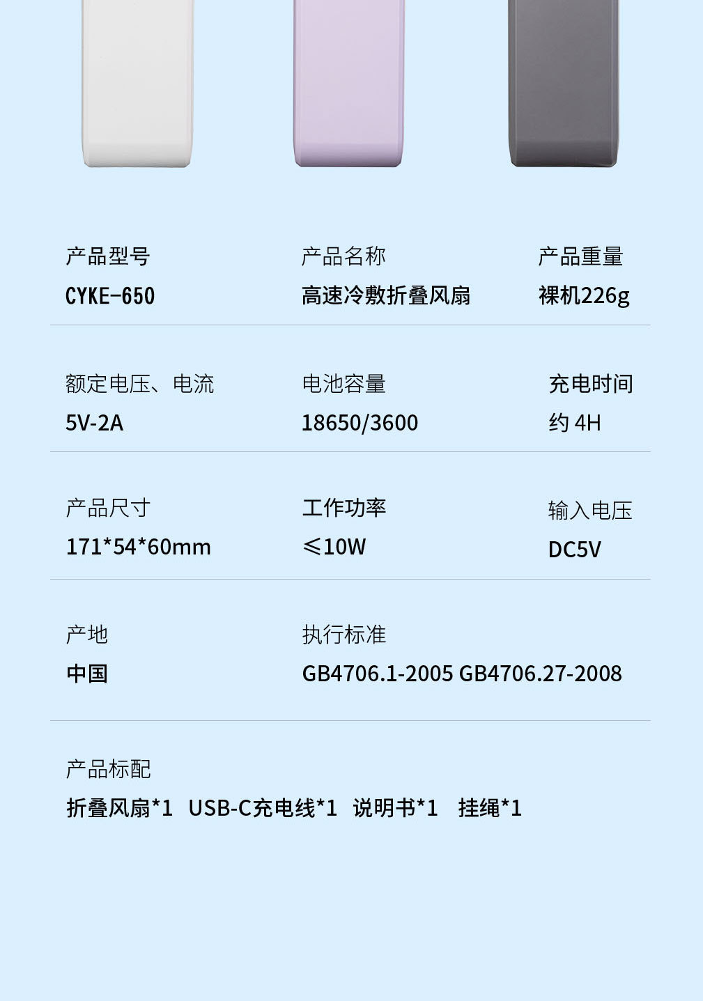 CYKE手持小风扇制冷冰敷高速暴力风扇迷你电风扇可折叠挂脖扇BSMI