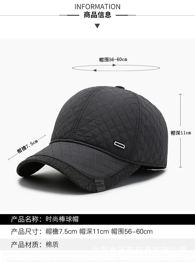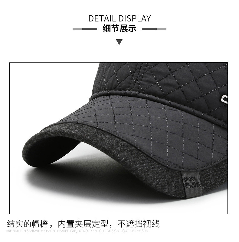 中老年冬季帽子男防风帽防寒棒球帽加绒加厚鸭舌帽护耳保暖棉帽