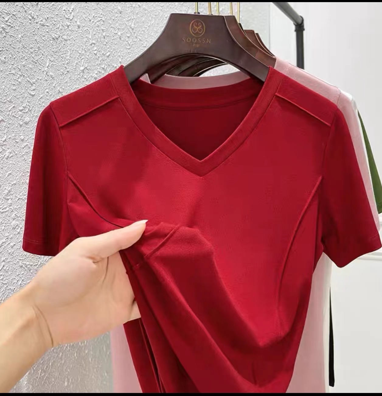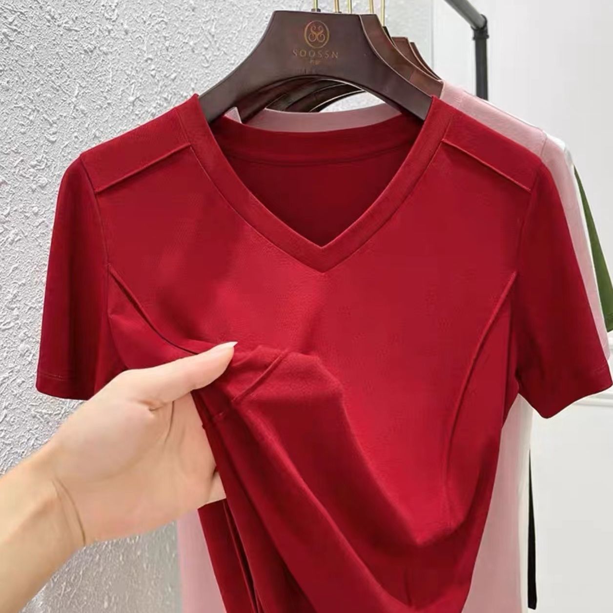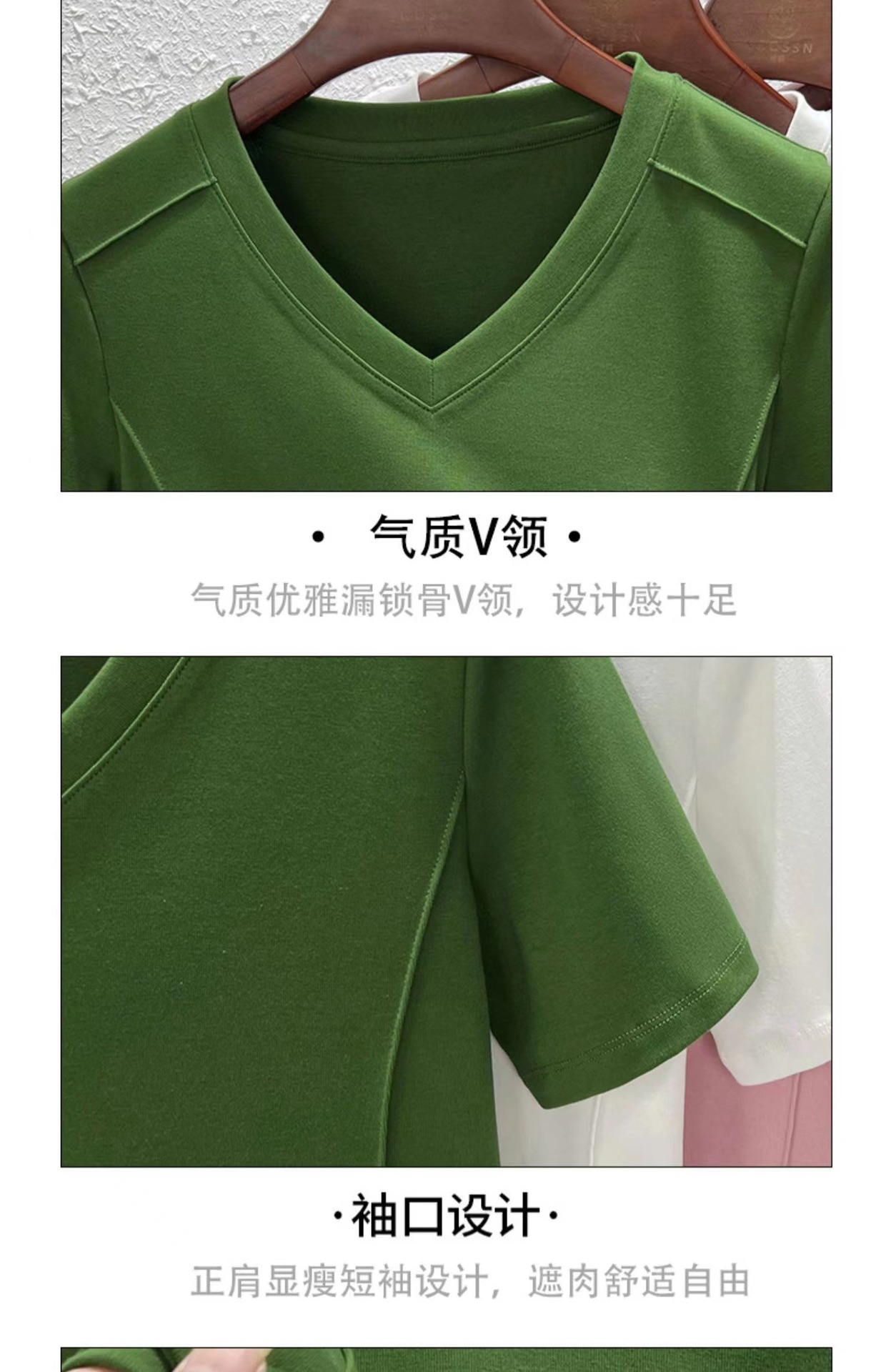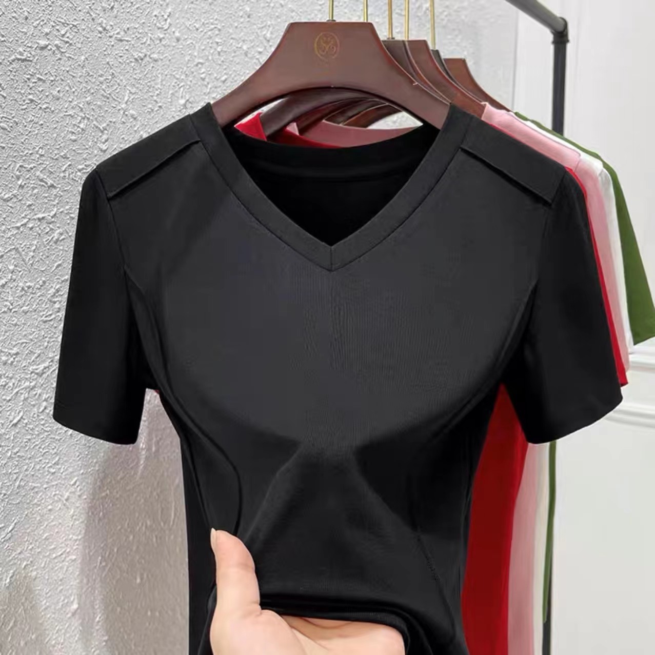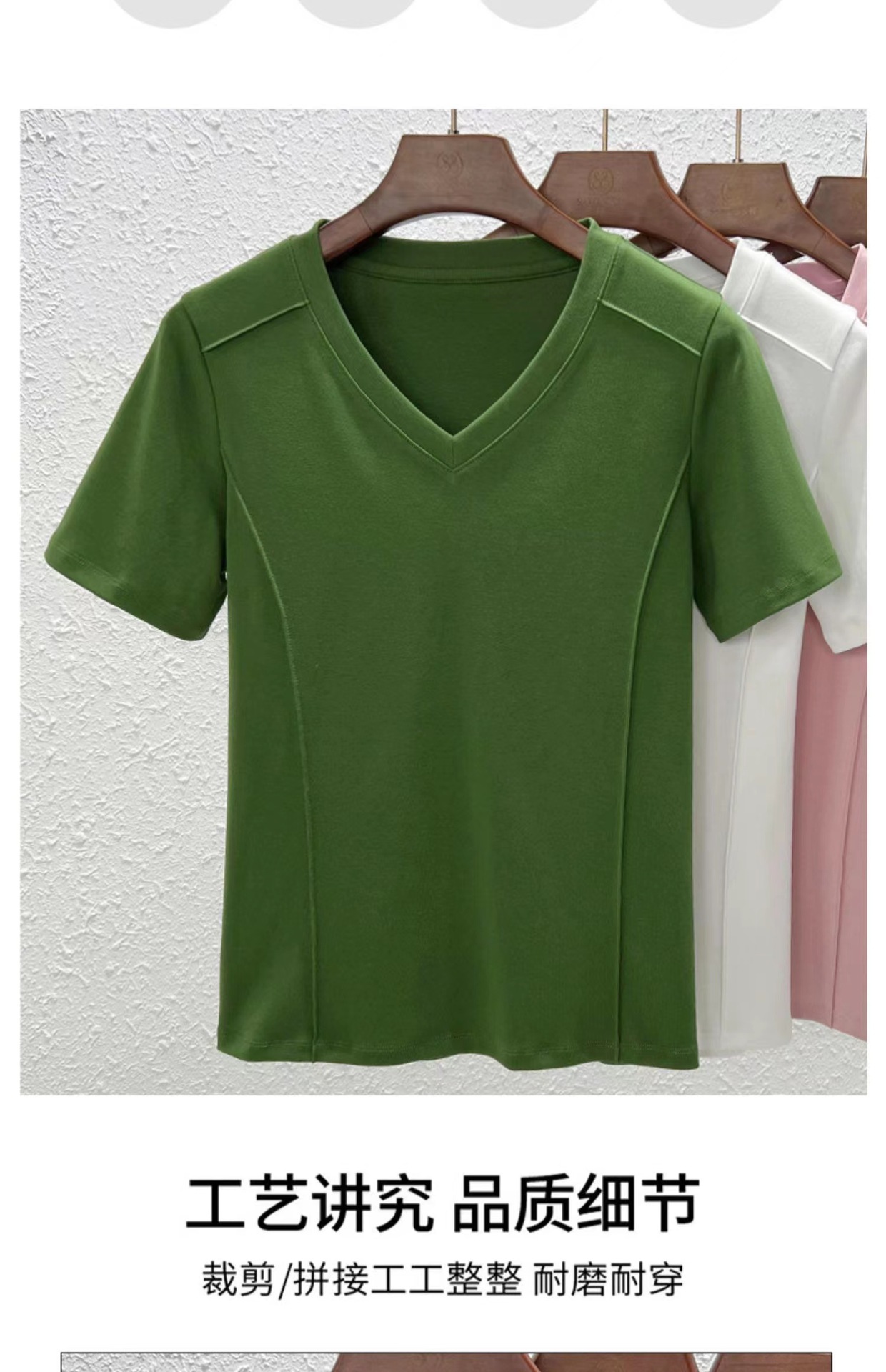 爆款纯色v领正肩鱼骨短袖夏季新款打底衫短袖t恤女