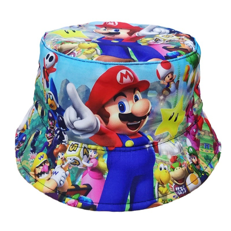 跨境索尼克儿童渔夫帽蜘蛛侠动漫卡通超级玛丽盆帽七龙珠遮阳帽子