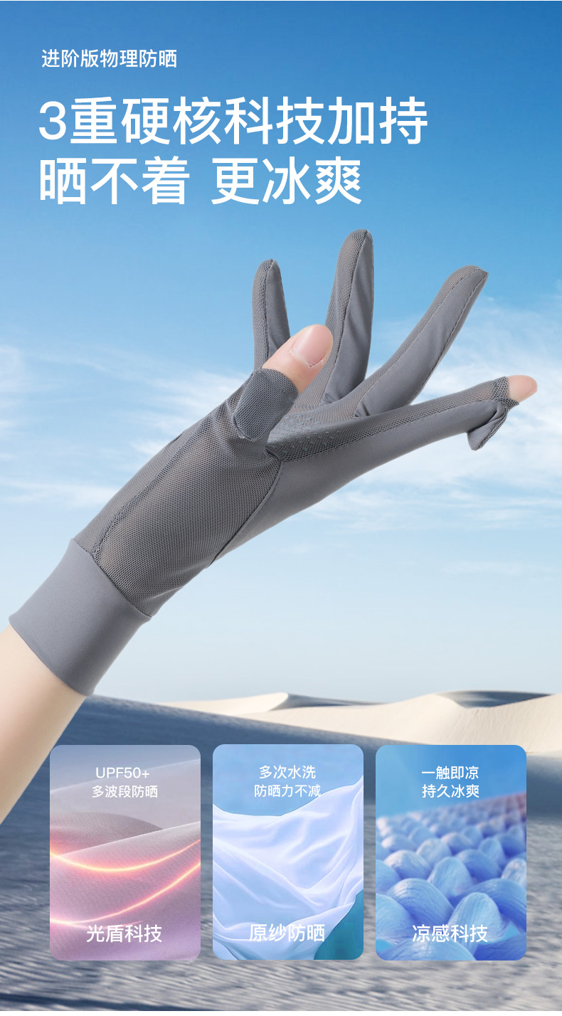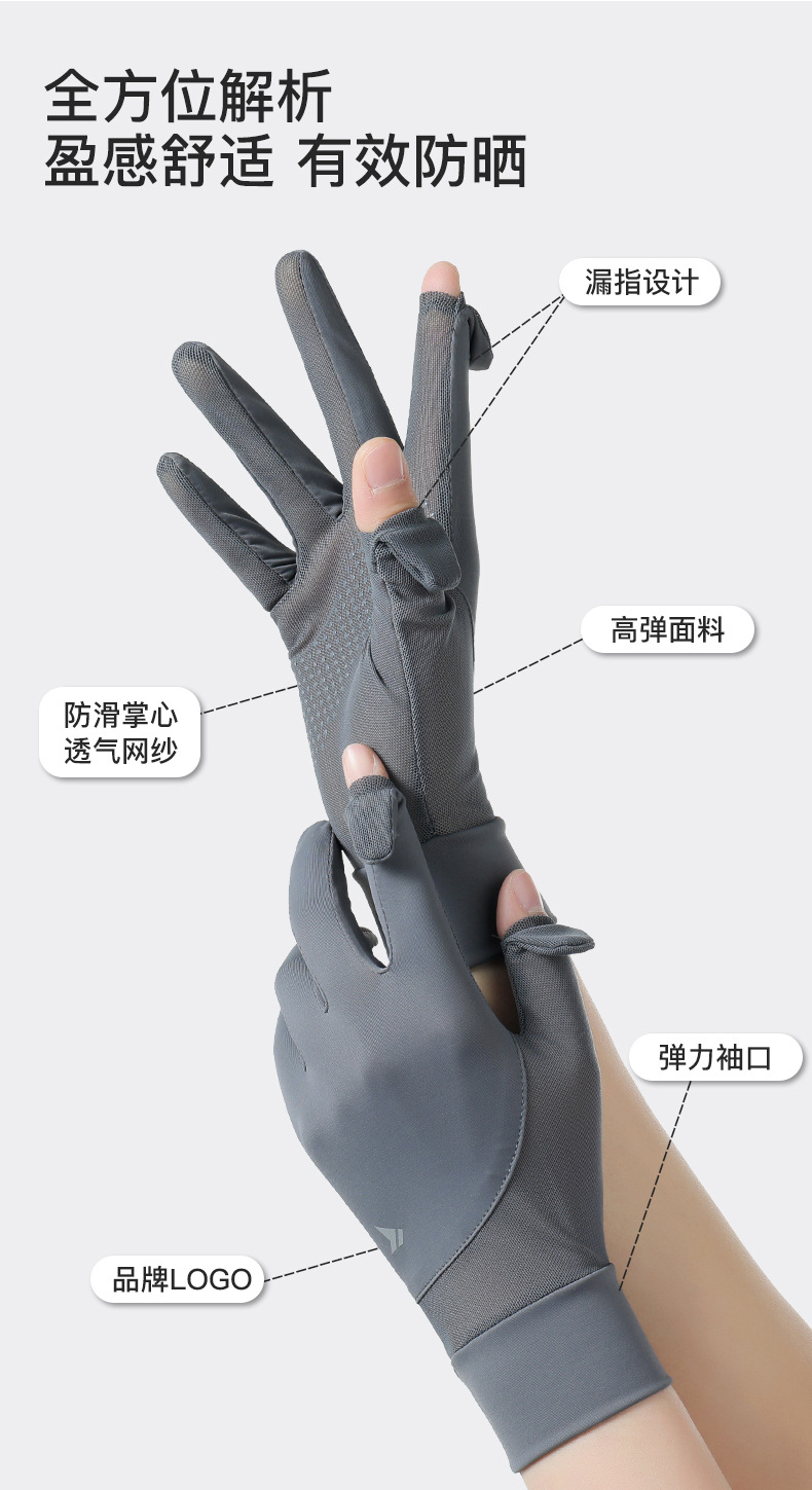 新款夏季手套女D336运动骑车原纱透气防滑防紫外线触屏薄防晒手套
