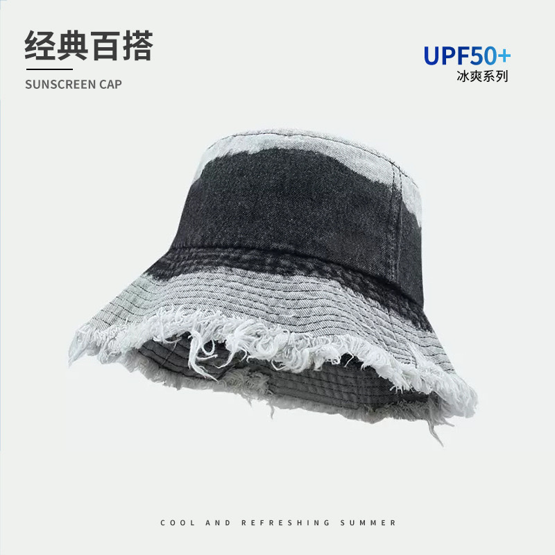 泫雅同款渔夫帽女春夏水洗大檐度假毛边牛仔防晒遮阳帽户外登山帽