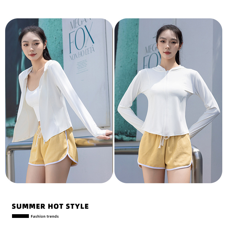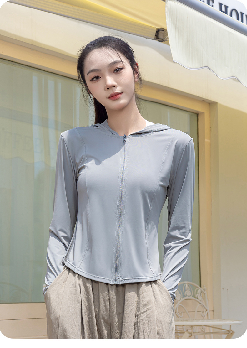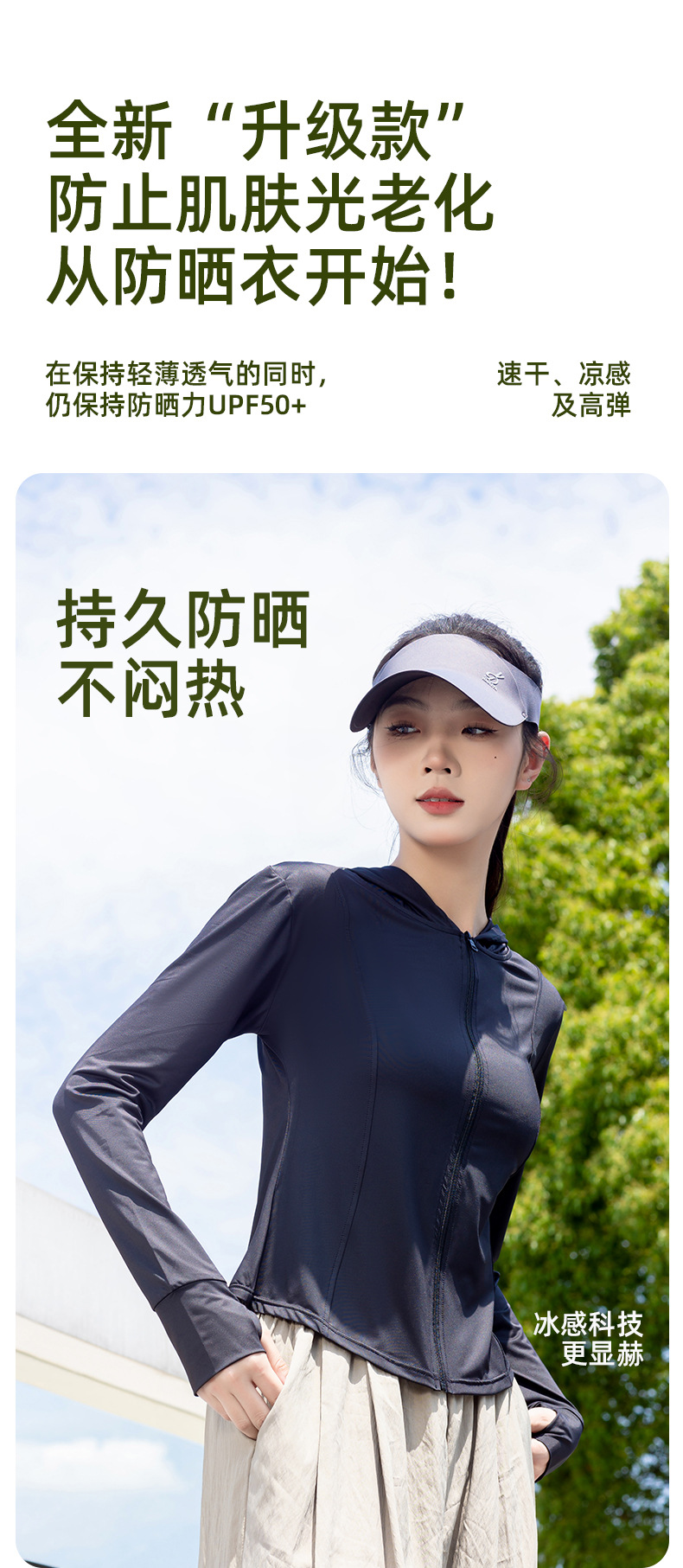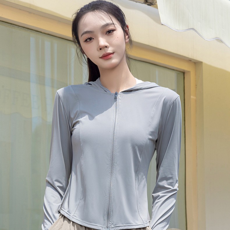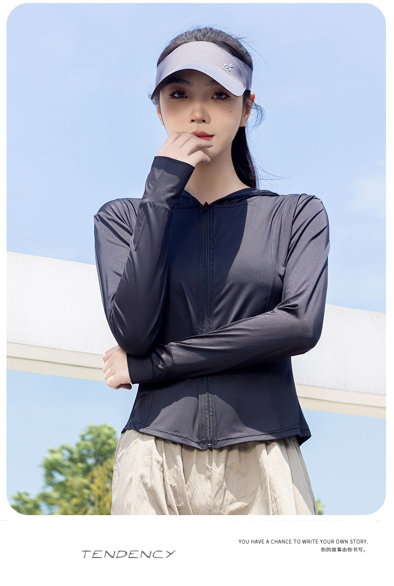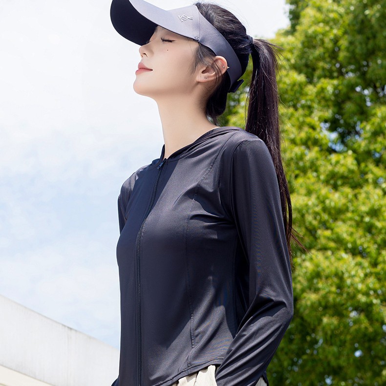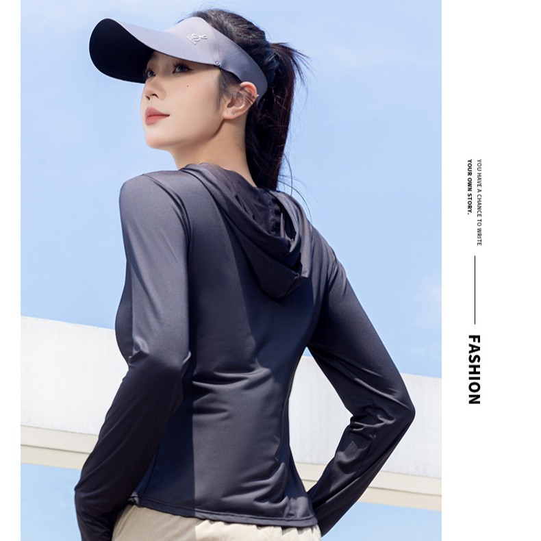 2025新款防晒衣女冰丝防紫外线户外透气运动修身瑜伽连帽防晒服