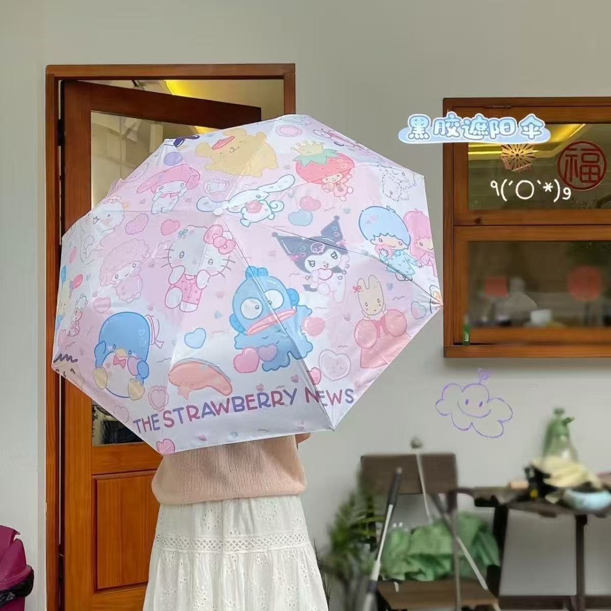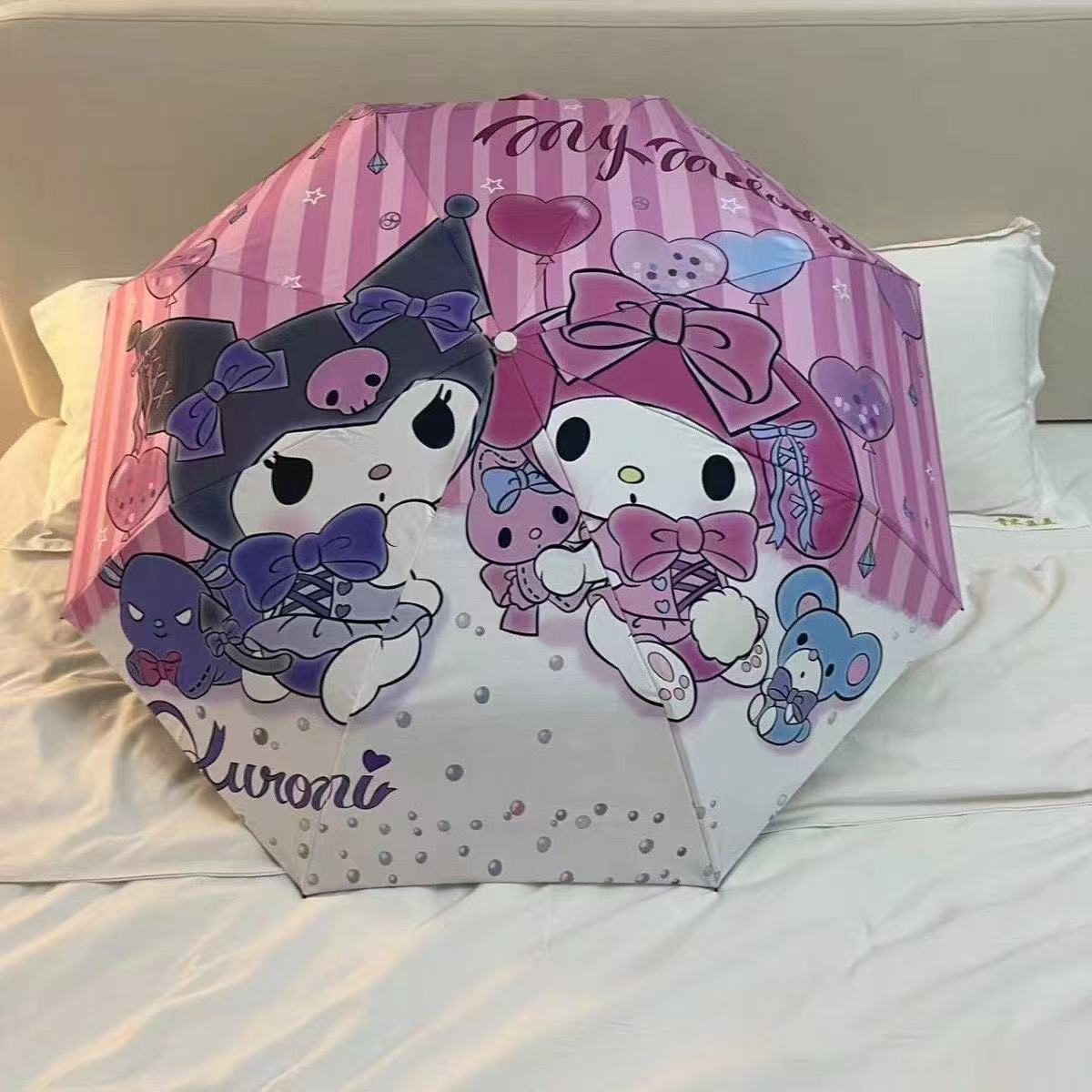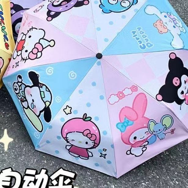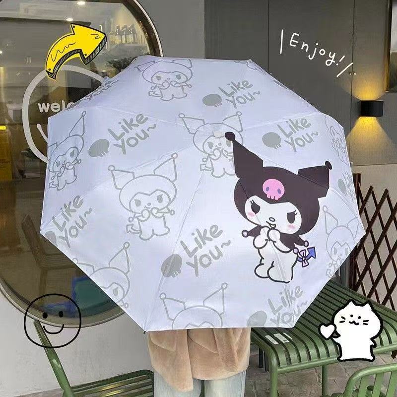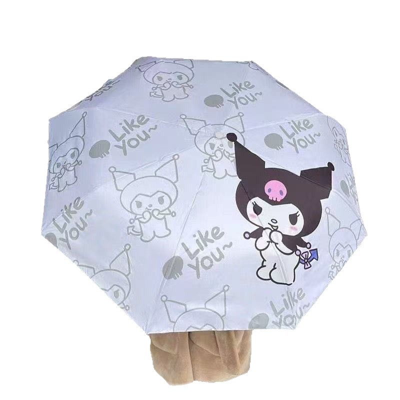 卡通二次元库洛米全自动黑胶太阳伞晴雨两用学生遮阳伞批发现货