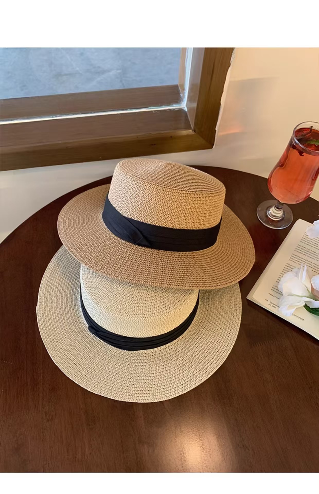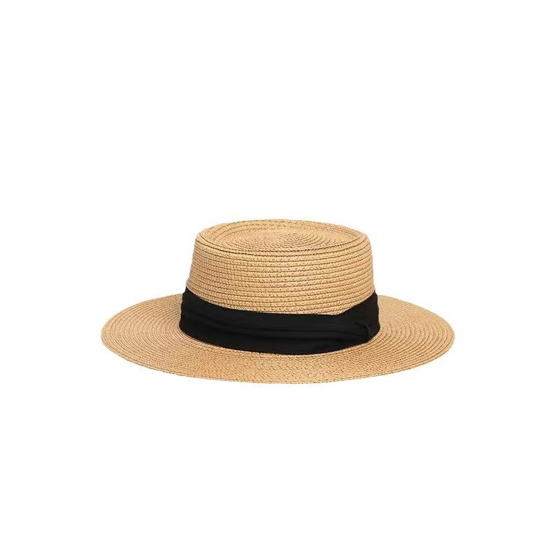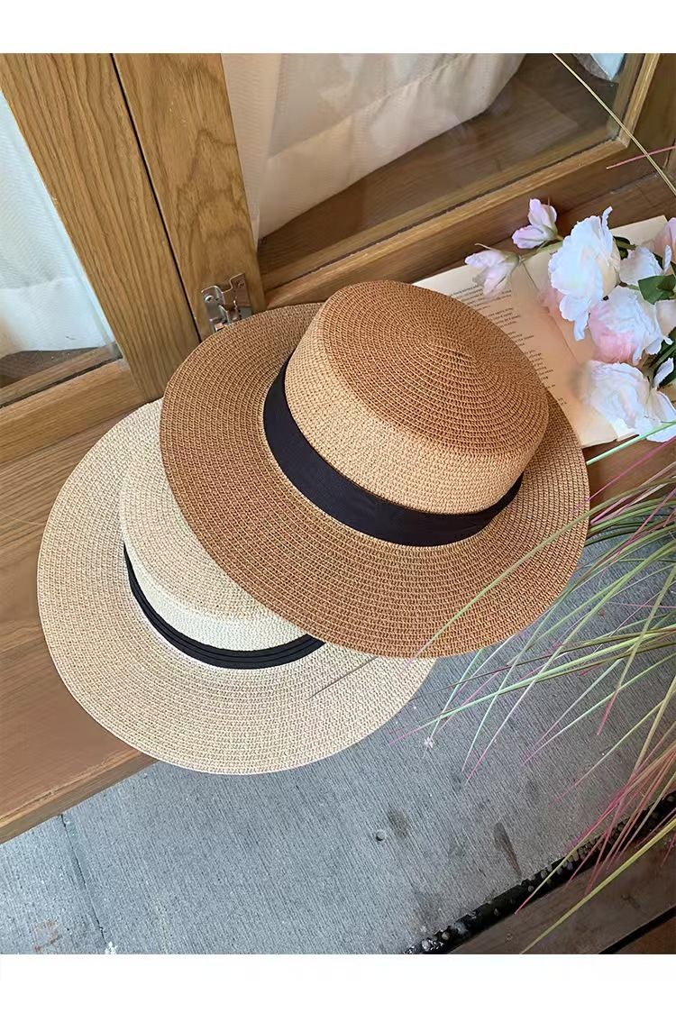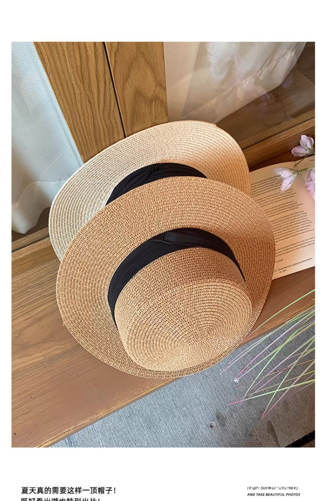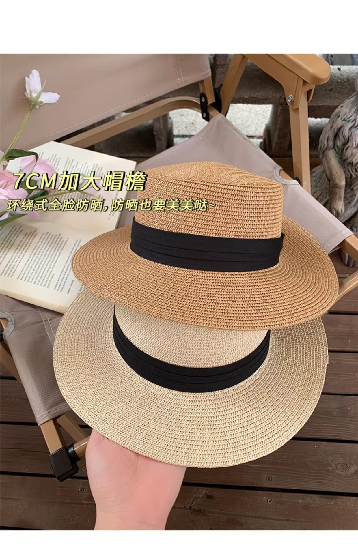 法式复古草编草帽女夏季2024新款户外大帽檐遮阳防晒平顶太阳帽