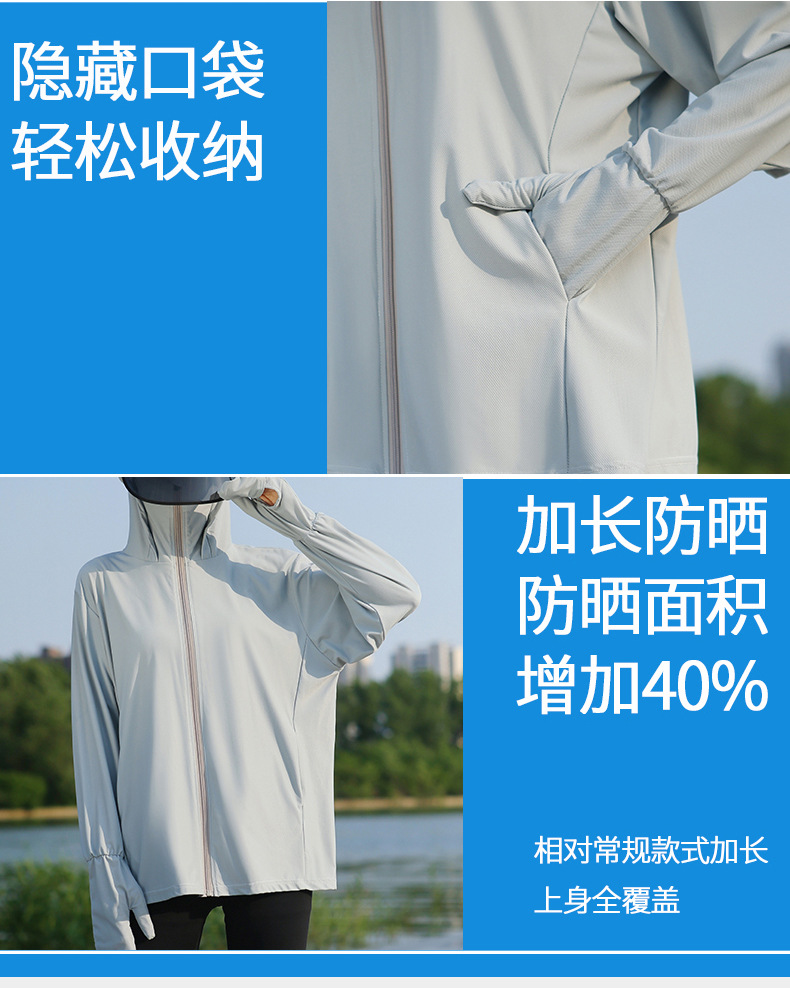 2023新款指尖防晒衣女春夏户外骑行旅游凉感轻薄透气中长款防晒服