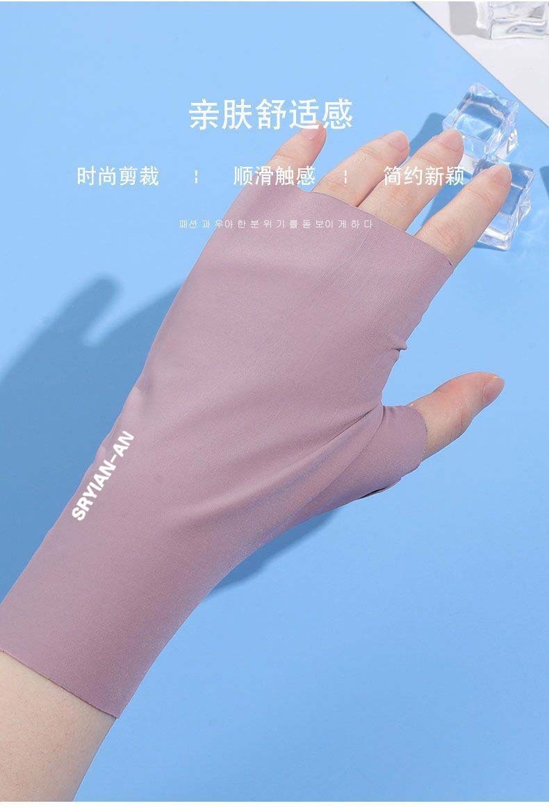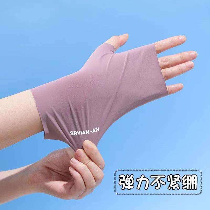 冰丝防晒半指手套女士夏季防紫外线美甲无指手套遮阳开车骑行手套