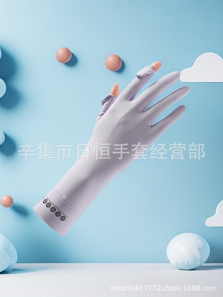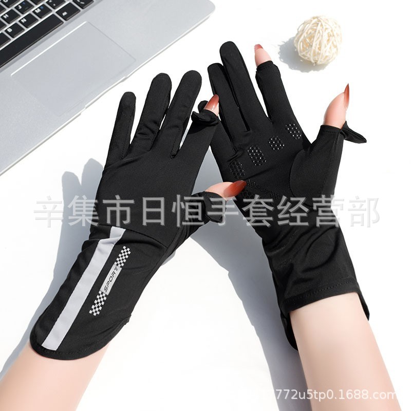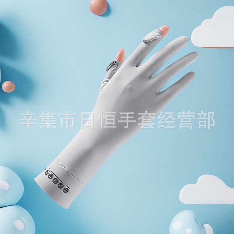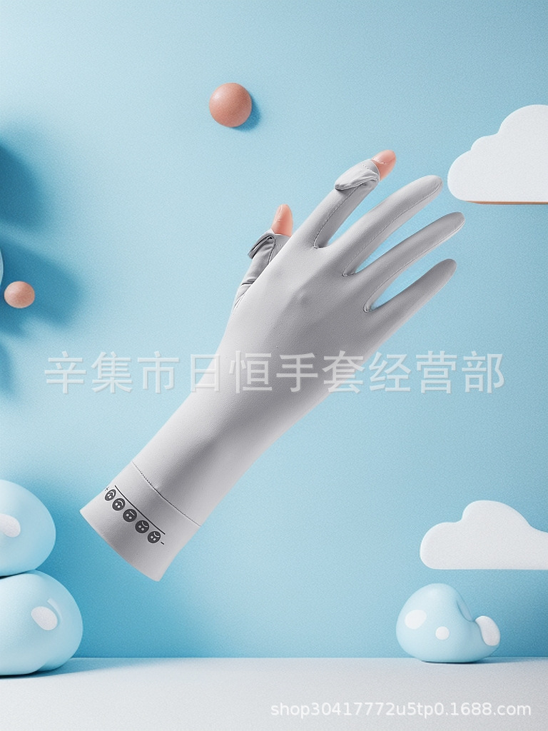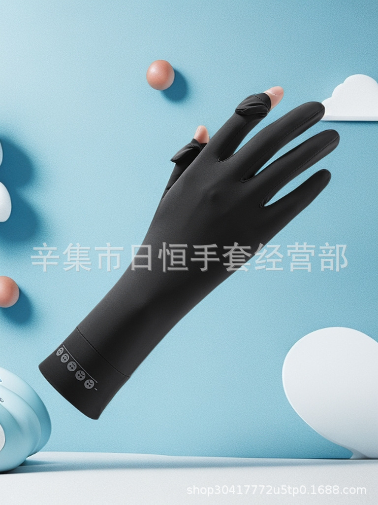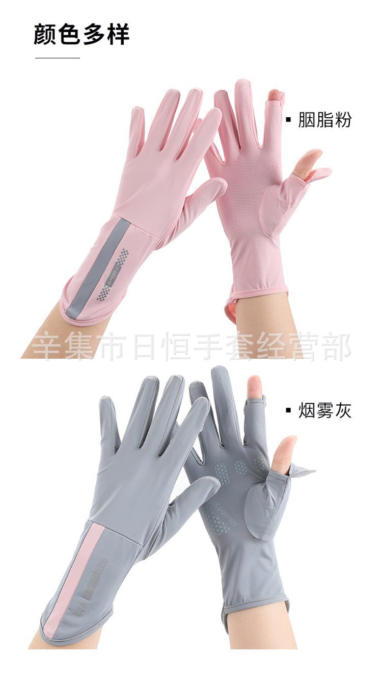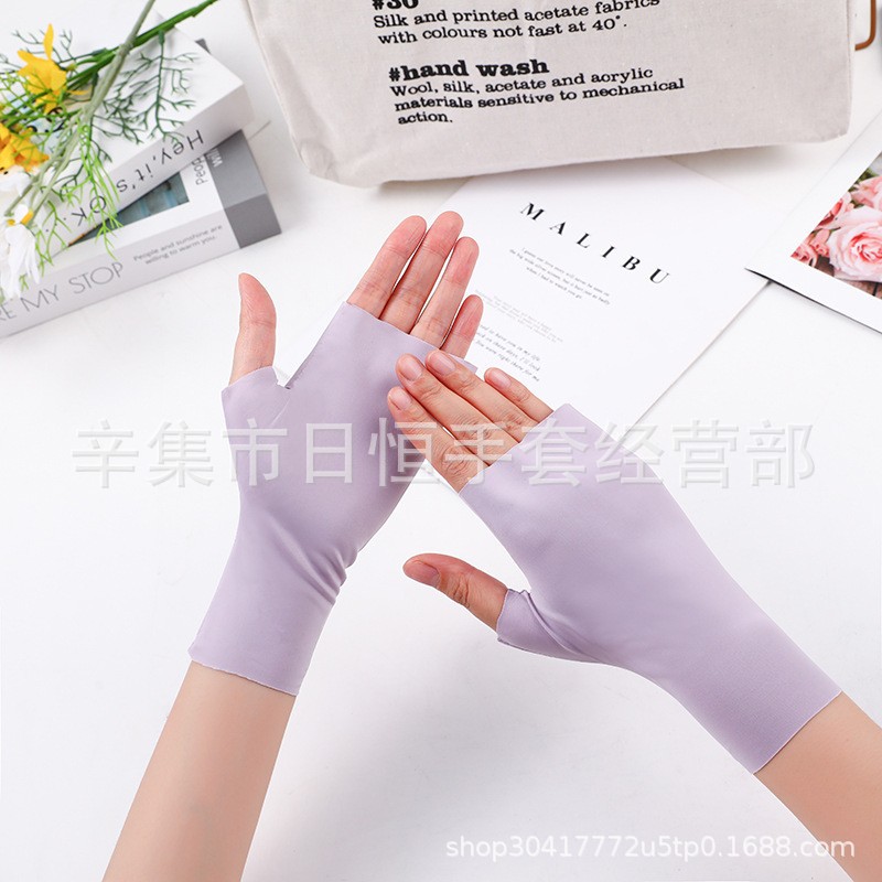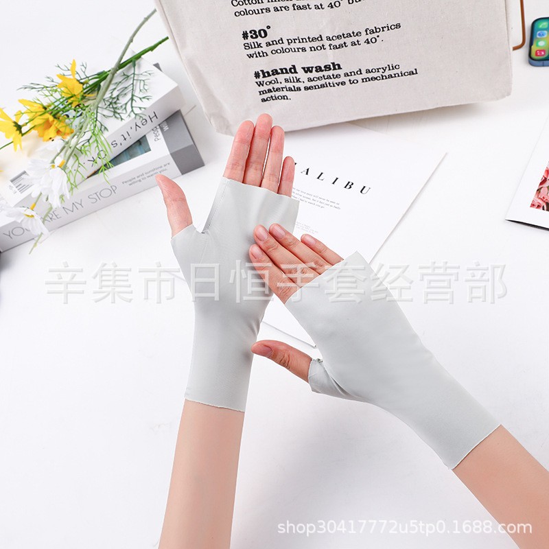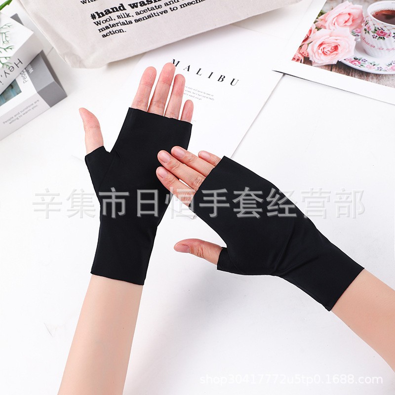 薄款防晒冰丝手套批发夏季防紫外线通勤手套女士冰丝防晒露指手套
