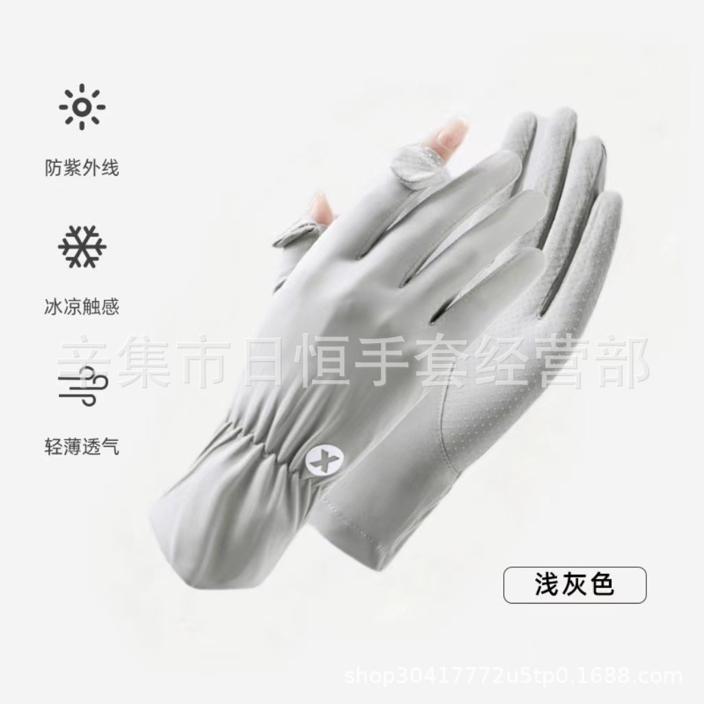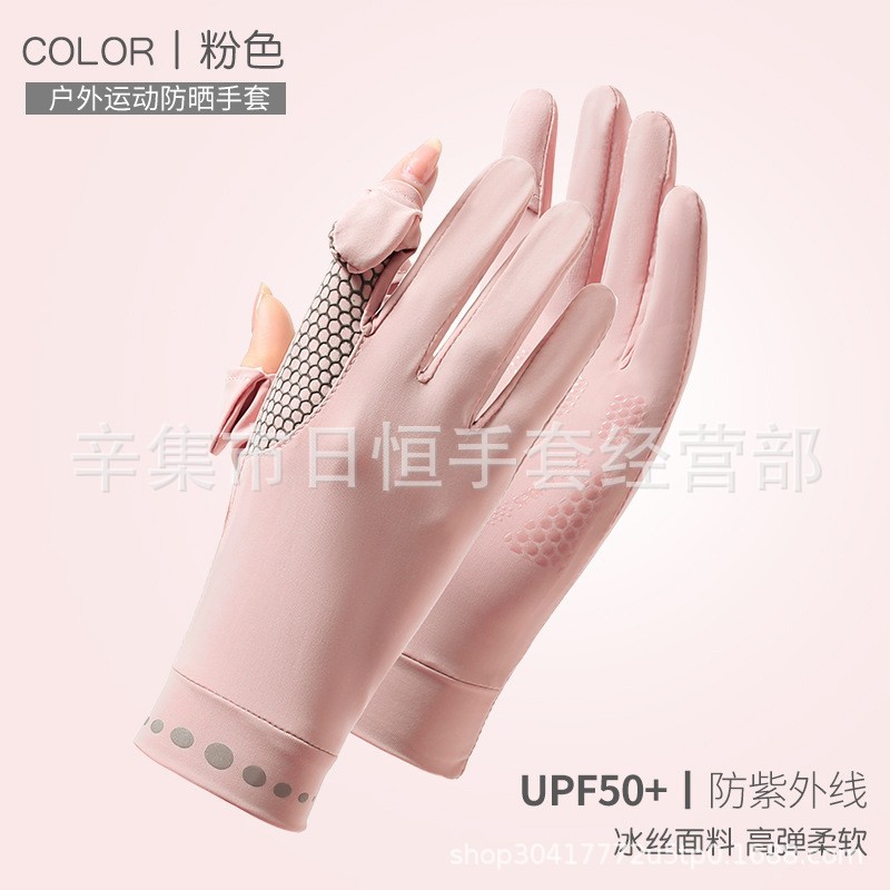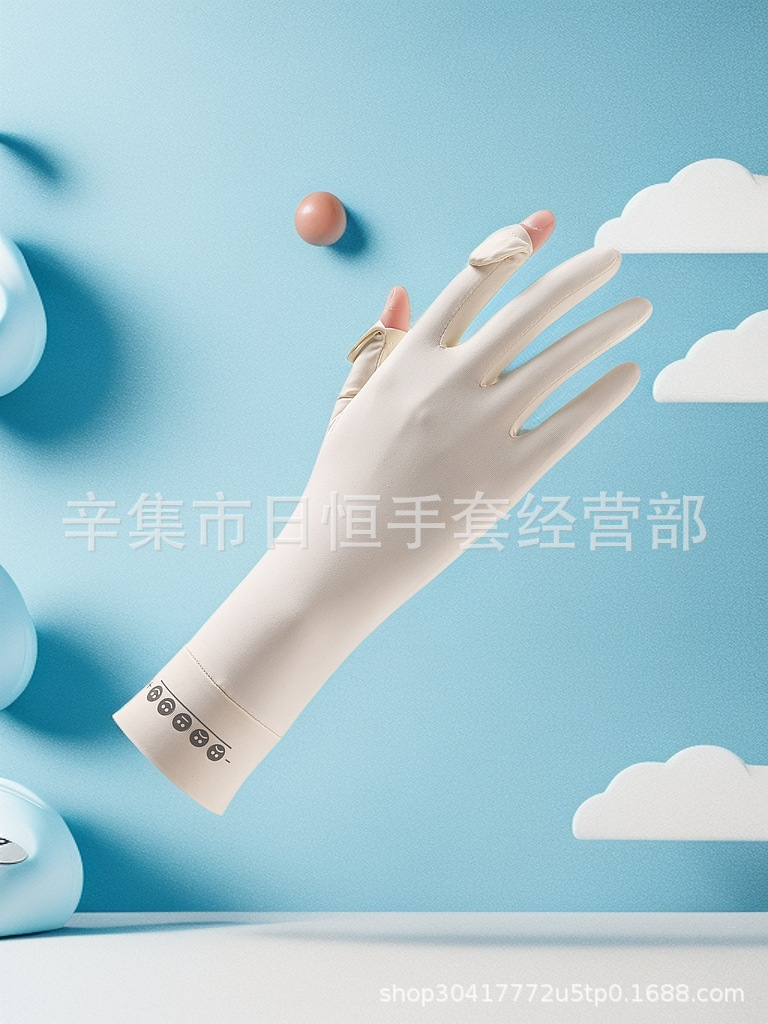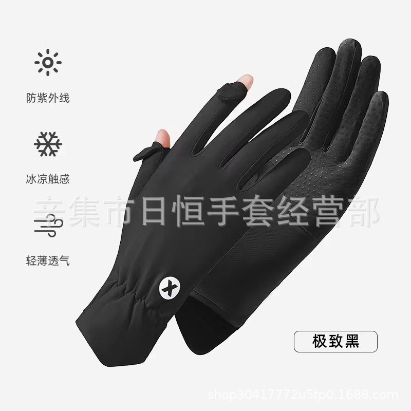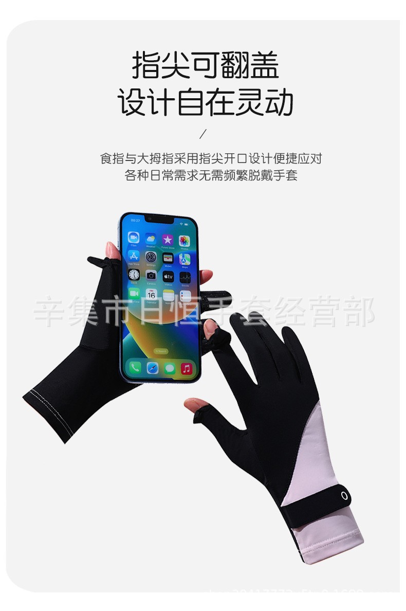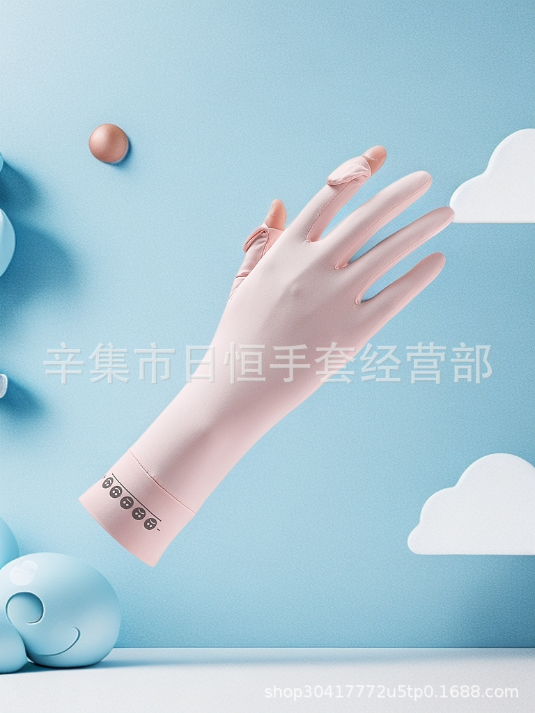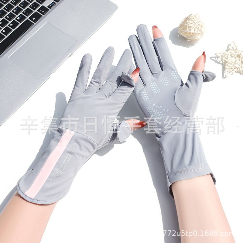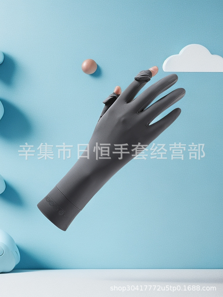 薄款防晒冰丝手套批发夏季防紫外线通勤手套女士冰丝防晒露指手套