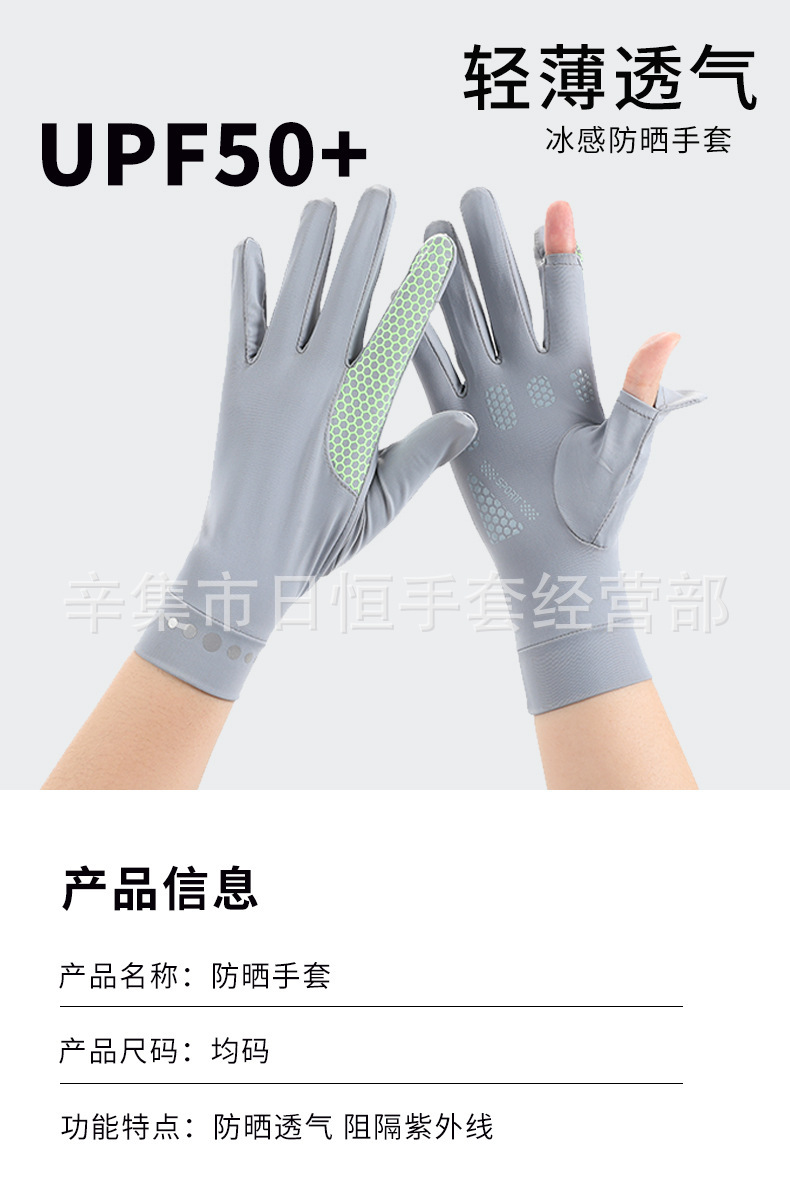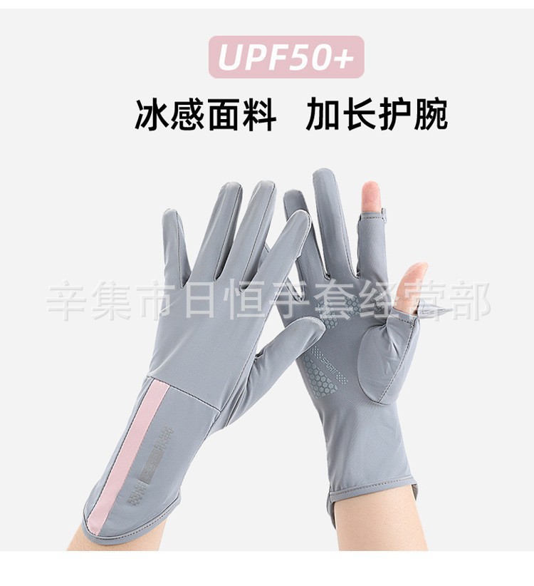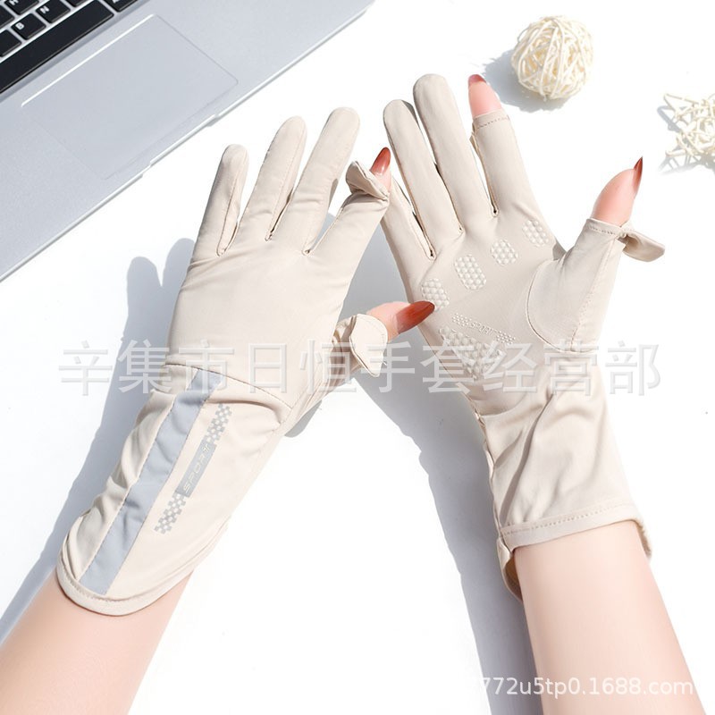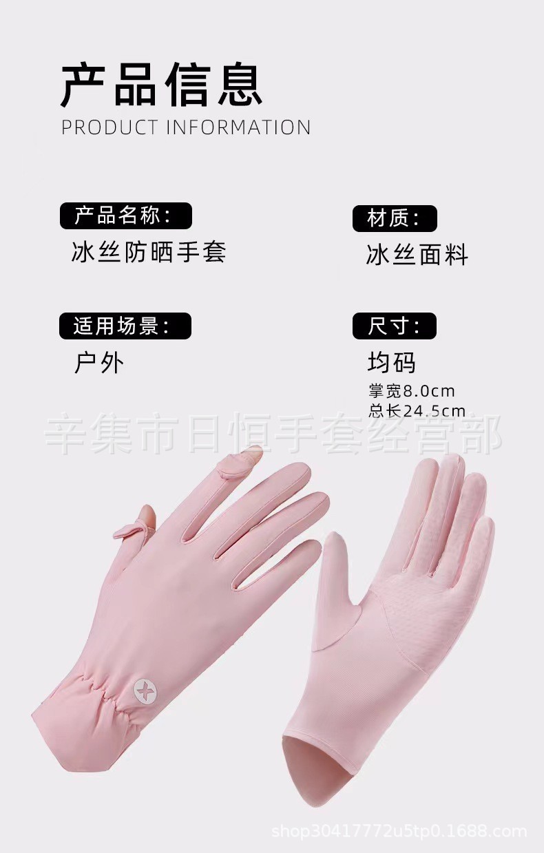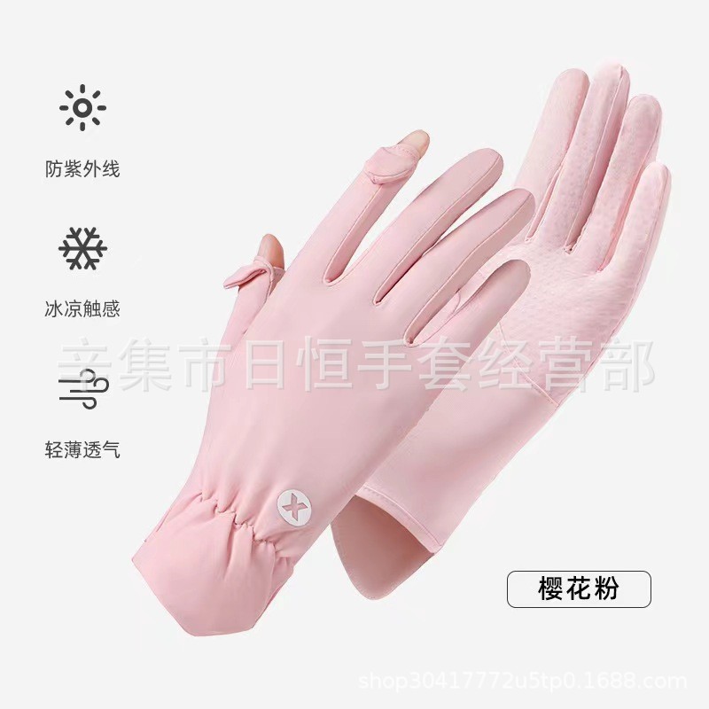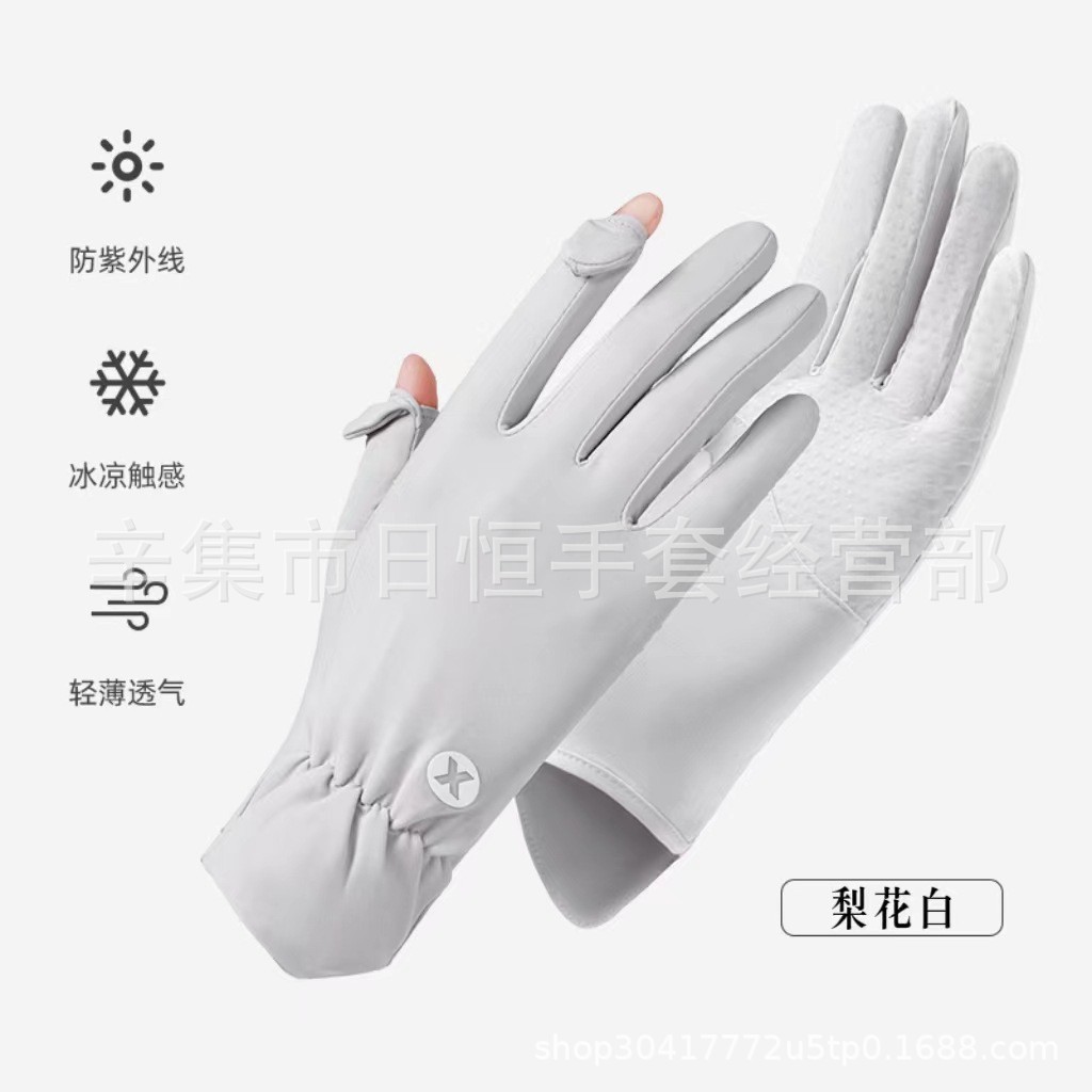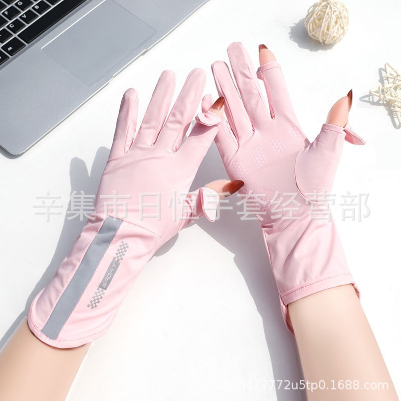 薄款防晒冰丝手套批发夏季防紫外线通勤手套女士冰丝防晒露指手套