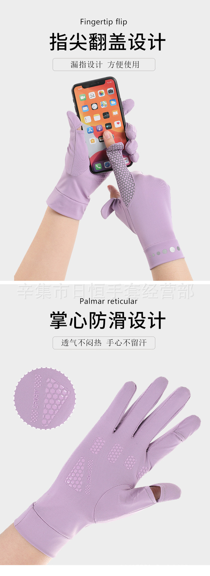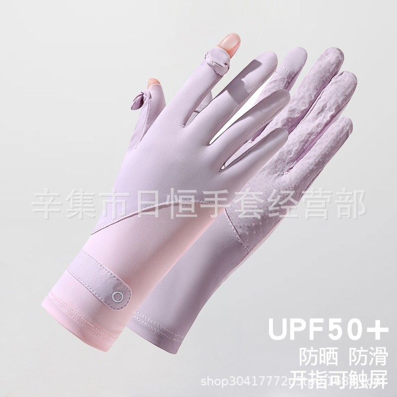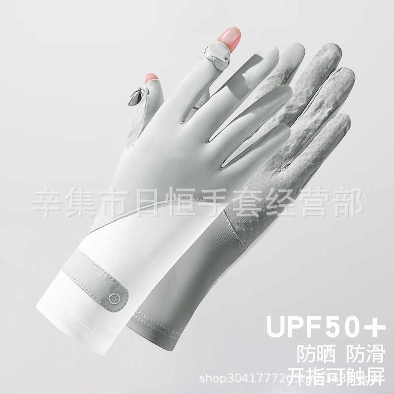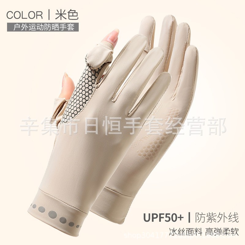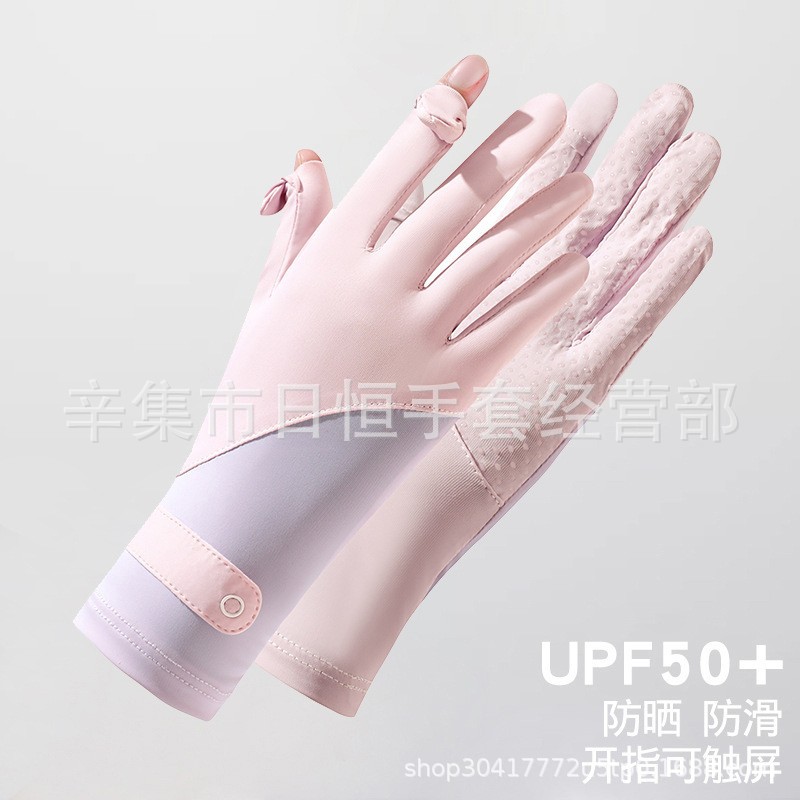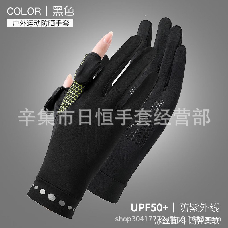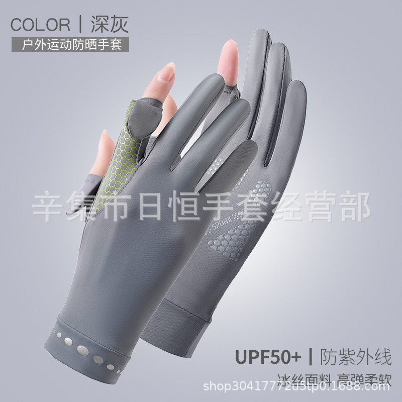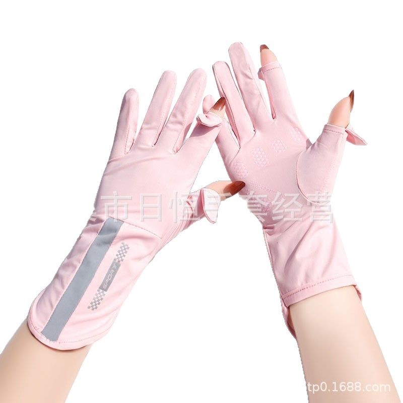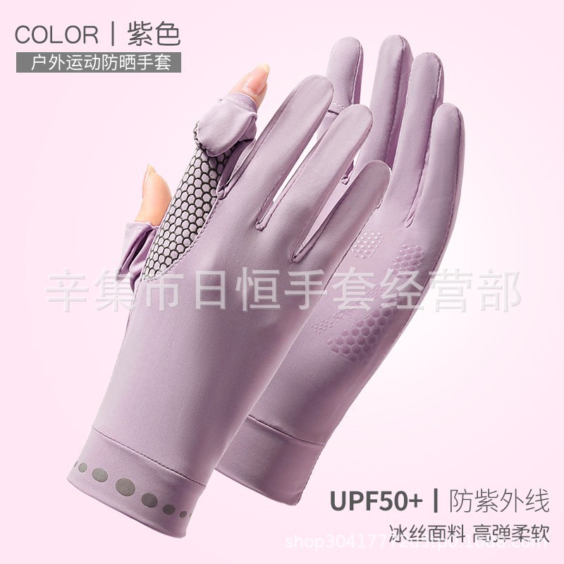 薄款防晒冰丝手套批发夏季防紫外线通勤手套女士冰丝防晒露指手套