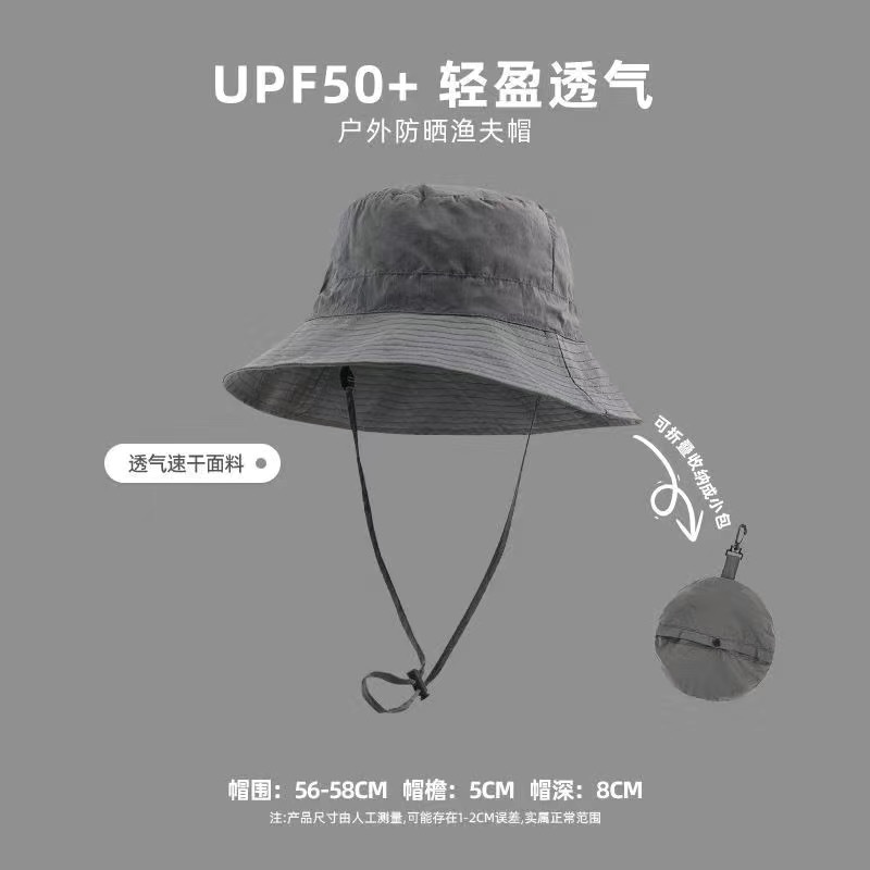渔夫帽速干防水折叠帽子女超轻薄遮阳帽男可折叠收纳一体太阳帽子