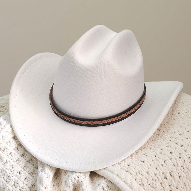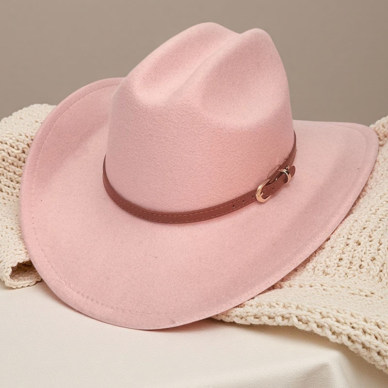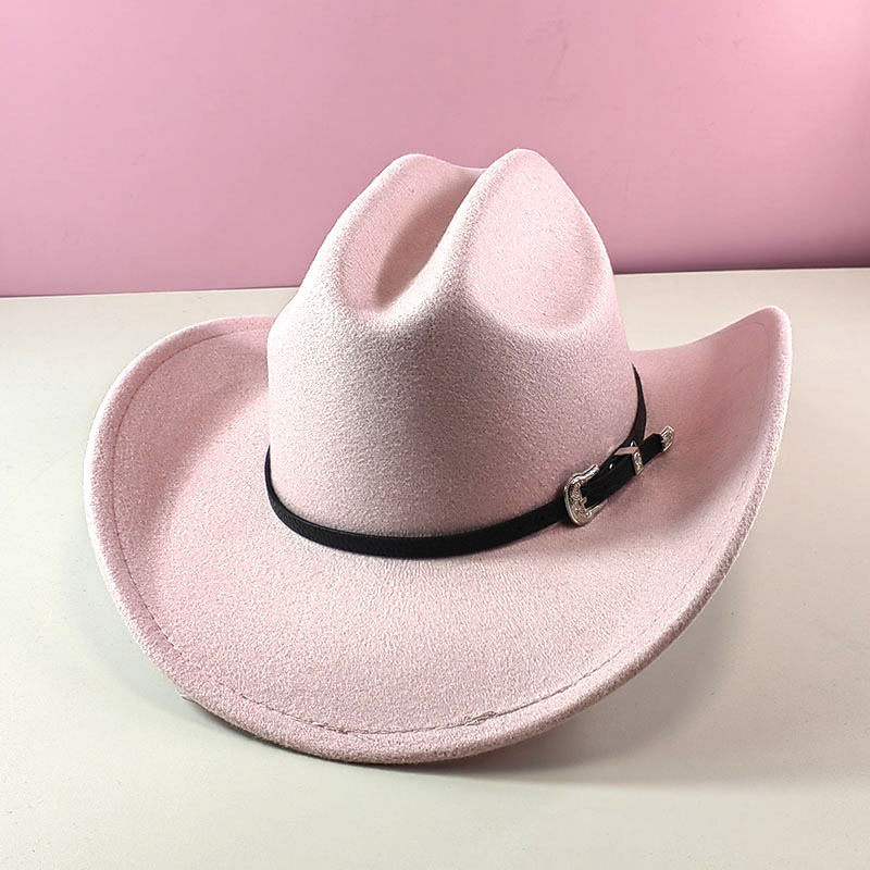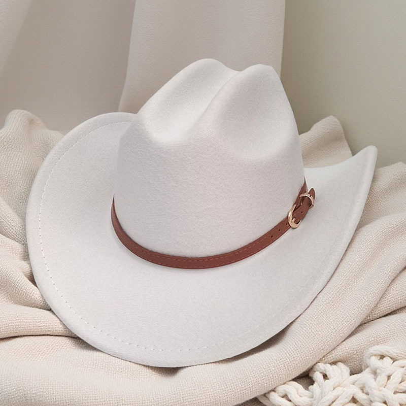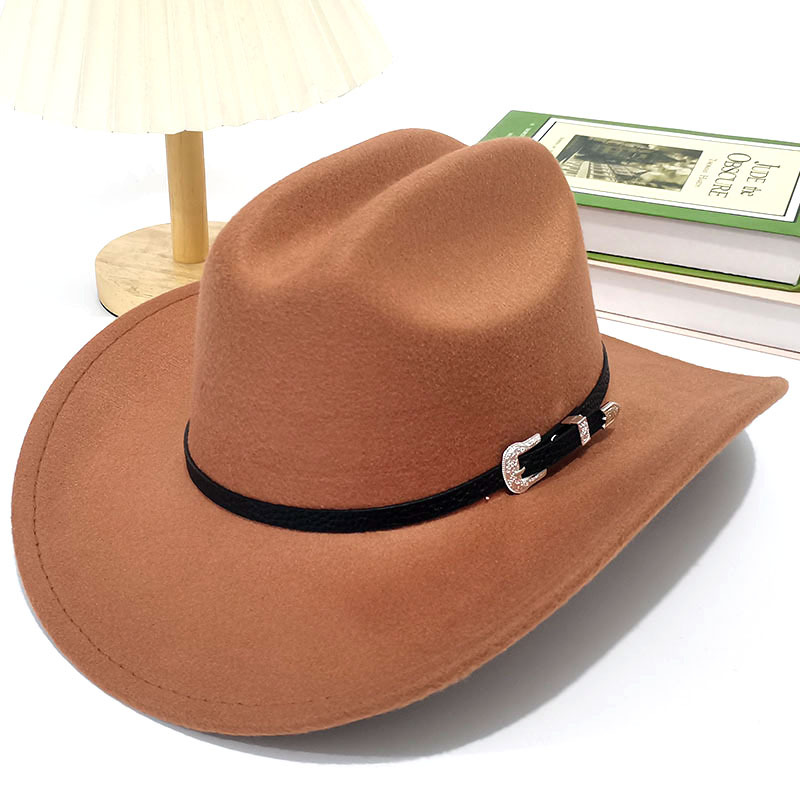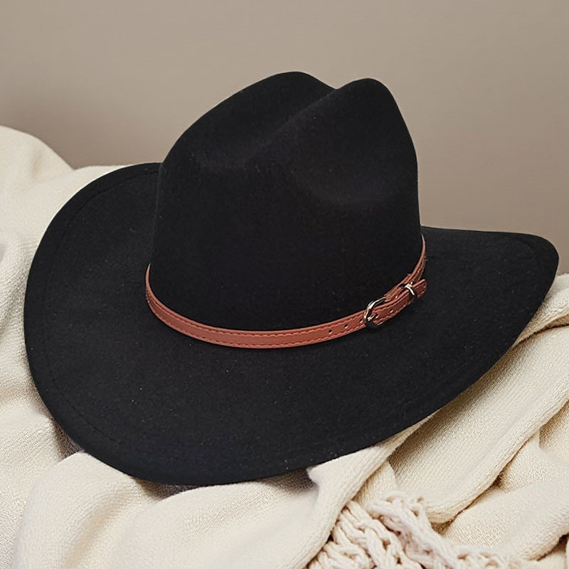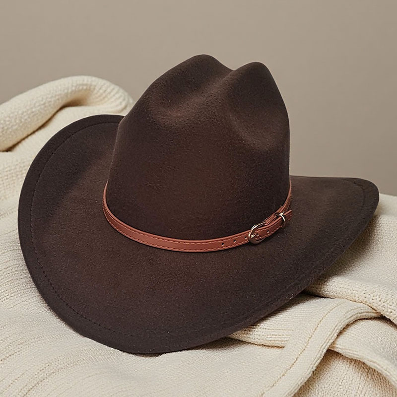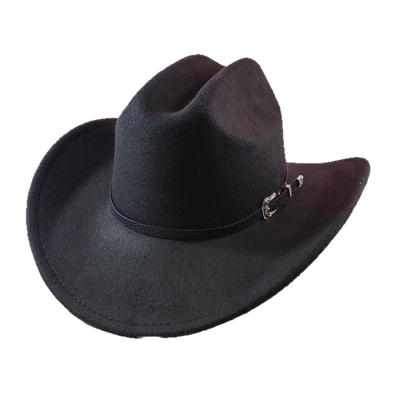 跨境亚马逊新款一字顶男女士大帽檐西部牛仔帽弯檐帽子荔枝纹皮带