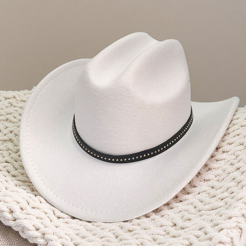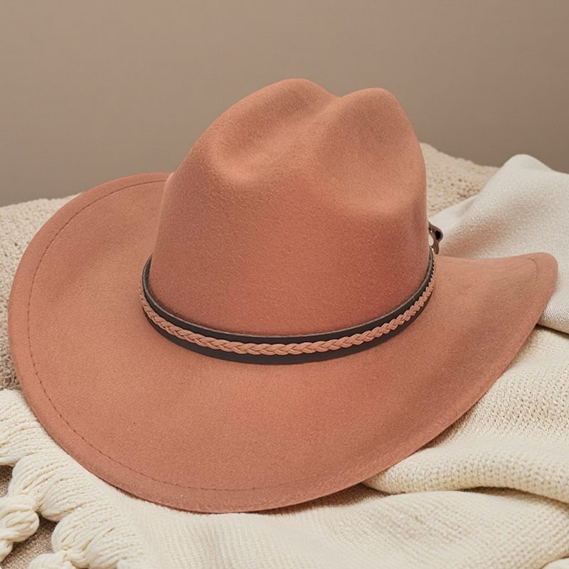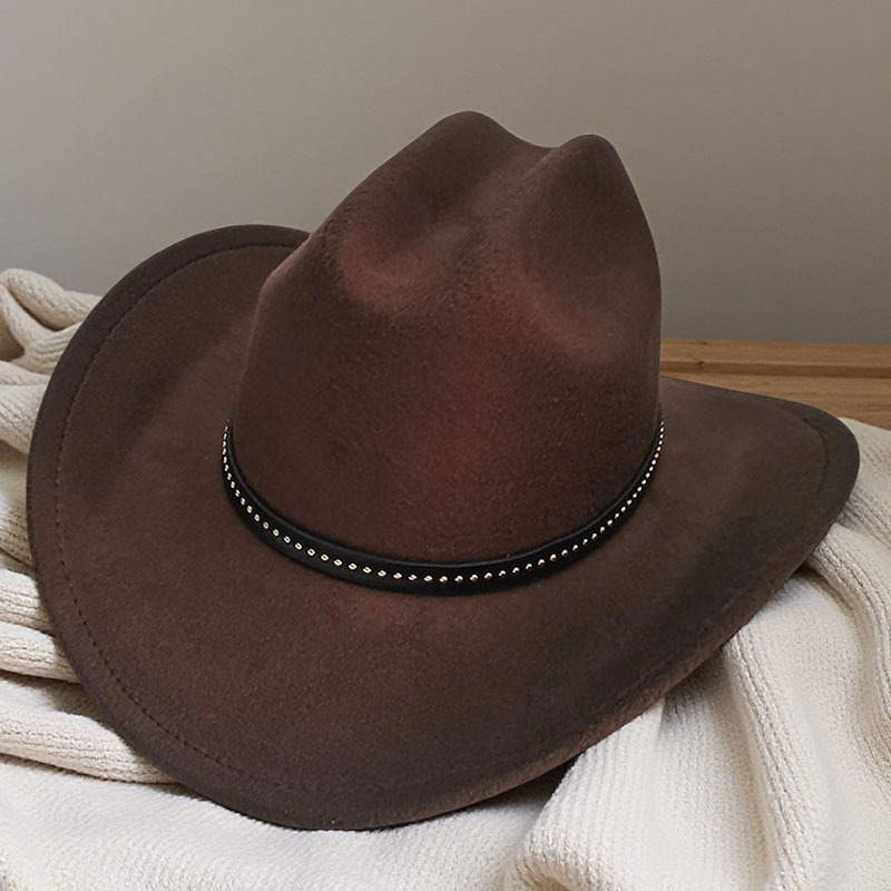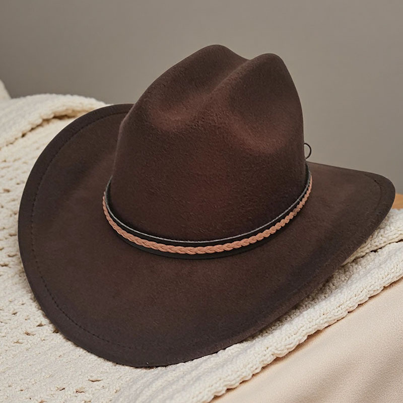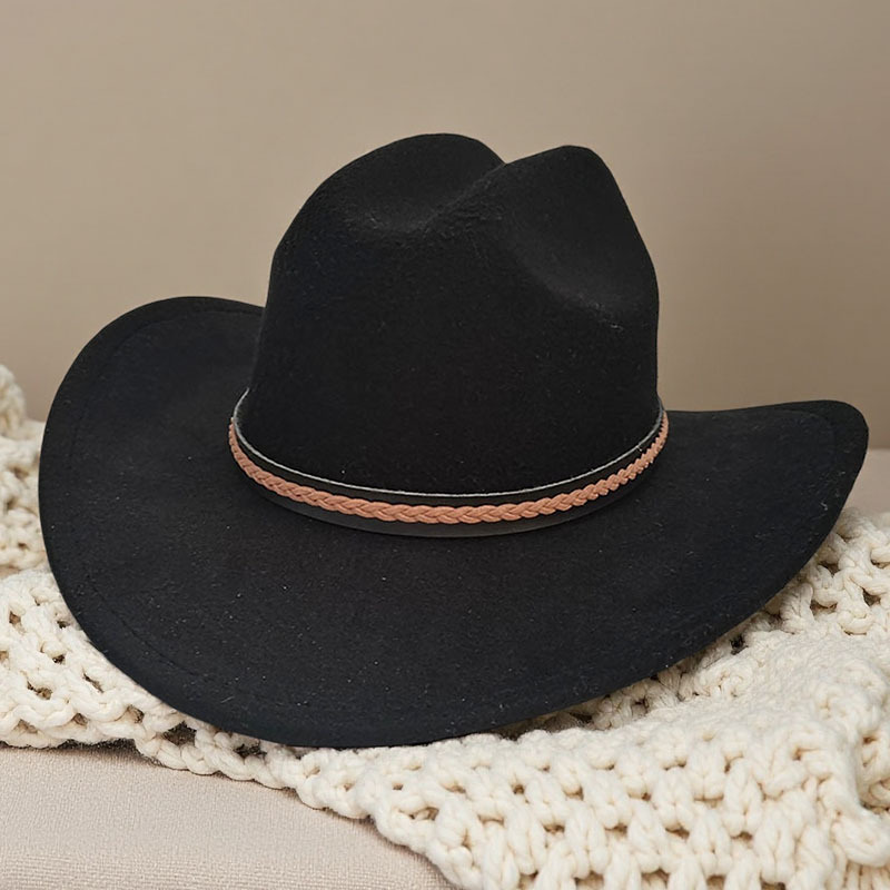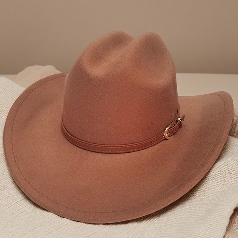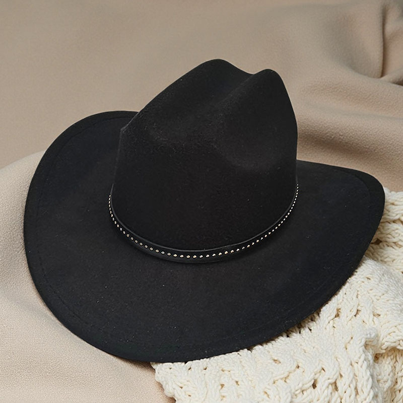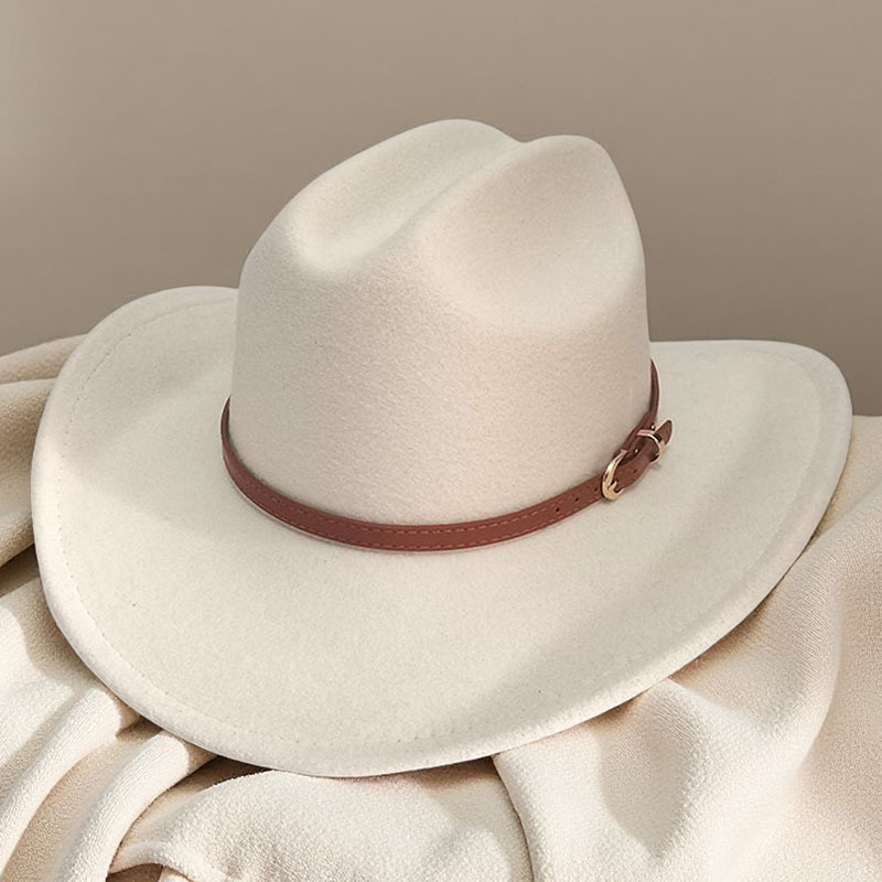 跨境亚马逊新款一字顶男女士大帽檐西部牛仔帽弯檐帽子荔枝纹皮带
